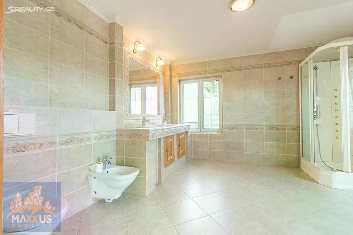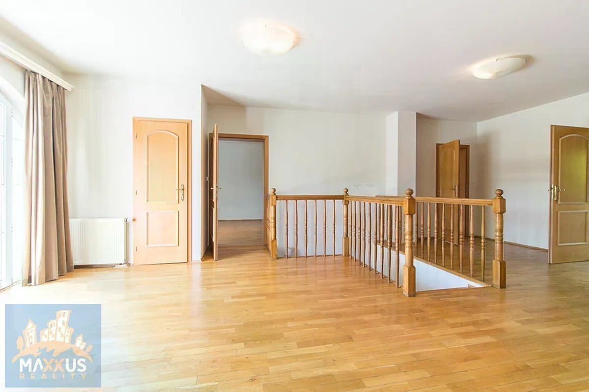 K dlouhodobému pronájmu nabízíme velice pěkný rodinný dům 7+kk s užitnou plochou 360 m2 se zahradou. Jedná se o samostatně stojící rodinný dům na pozemku o celkové ploše 860 m2, v žádané a klidné lokalitě Prahy 6 - Nebušice. Dům nabízí 2 nadzemní podlaží, jedno podzemní podlaží se zázemím a samostatně stojící garáž pro 2 automobily. V přízemí domu se nachází zádveří, vstupní hala, dále velmi prostorný a světlý obývací pokoj, volně navazující na jídelní část a plně vybavenou, moderní kuchyni. K dispozici je také pokoj/pracovna, samostatná toaleta, vstup do sklepa, šatna u zádveří s vestavěnou skříní, koupelna s rohovou vanou (jacuzzi). Ve 2. nadzemním podlaží se nachází hala, vstup na terasu 15 m2, dále 5 ložnic, dvě z nich mají k dispozici společnou koupelnu se sprchou a toaletou, jedna z ložnic má vstup na balkon. Další samostatná koupelna se sprchou a toaletou v patře. K dispozici také šatna, vybavena vestavěnými skříněmi po obou stranách. Sklep nabízí variabilní využití - pracovna, herna, tělocvična, dále zahrnuje technické zázemí - plynový kotel na vytápění domu, prádelna. V domě jsou na podlahách dřevěné podlahy, v kuchyni a koupelnách dlažba. Parkování v garáži (2 auta), další parkování na pozemku. Dům je zabezpečen alarmem s možností napojení na PCO. Velmi pěkné moderní, rodinné bydlení. V docházkové vzdálenosti se nachází občanská vybavenost, mezinárodní škola International School of Prague, základní škola, obchod, v těsné blízkosti parku Divoká Šárka. Platba nájemného kvartální, kauce ve výši tří nájmů. Dům je volný k nastěhování ihned, doporučujeme jeho prohlídku.