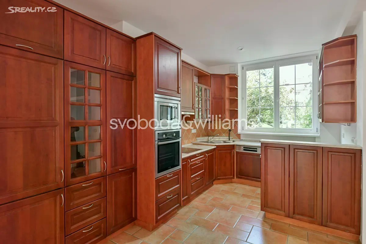 Zrekonstruovaná nezařízená řadová rodinná vila se zahradou, situovaná v prestižní rezidenční čtvrti Ořechovka s rychlým spojením do centra, na letiště a mezinárodních škol v Praze 6. Velmi žádaná klidná lokalita pár minut chůze od zastávky tramvají, pár minut jízdy od stanic metra Dejvická a Hradčanská. Vila nabízí 4 ložnice a 3 koupelny. V přízemí domu se nachází obývací pokoj s plně vybavenou kuchyní, koupelna se sprchovým koutem a toaletou, vstupní hala a zadní vstup do zahrady. V prvním a druhém patře jsou vždy dvě ložnice, koupelna s toaletou a šatna / úložná komora. Suterén domu tvoří společenská místnost s krbovými kamny, kterou je možno využít jako pátou ložnici, dále toaleta a skladový prostor. Výhledy do zeleně, parkety, vytápěná dlažba v přízemí, plynový kotel, pračka, sušička. Dům je nezařízený. K dispozici dvě parkovací stání na pozemku.