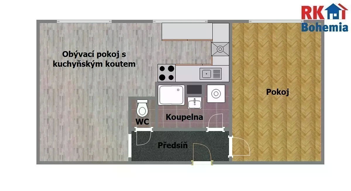 Nabízím Vám k pronájmu byt 2+kk v Českém Brodě, v ulici K Dolánkám. Byt je v dispozici 2+kk o celkové výměře 43 m2 + dva sklepy 8,6 m2. Byt se nachází v 1. nadzemním podlaží cihlového domu, který je umístěný v oplocené zahradě. Byt se skládá z obývacího pokoje s kuchyňským koutem (20,2 m2), předsíně (3,9 m2), pokoje (14,8 m2), koupelny (3,6 m2) a samostatného WC (1 m2). Byt prošel v nedávné době částečnou rekonstrukcí. Na podlahách je v obývacím pokoji a kuchyňském koutě položena laminátová podlaha, v pokoji jsou dřevěné parkety, v předsíni je koberec a v koupelně a na WC je dlažba. Topení zajišťuje plynové topidlo WAW v obývacím pokoji, elektrický přímotop v pokoji a koupelnový topný žebřík v koupelně. Voda je ohřívána elektrickým bojlerem. Součástí kuchyňské linky je kombinovaný sporák s digestoří, myčka a dřez. V koupelně se nachází sprchový kout, umyvadlo se skříňkou, WC, pračka a topný žebřík. Okna jsou plastová, dvojskla, opatřena žaluziemi. K bytu náleží 2 sklepy. Okolo domu je udržovaná oplocená zahrada, kterou může nájemník využívat (i zde parkovat 1 parkovací místo). Měsíční nájemné je 15.000,- Kč a měsíční poplatky činí 855,- Kč (při obsazenosti 2 osobami). Odběr elektrické energie a plynu bude převeden přímo na nájemníka (dohromady cca 4.000,- Kč měsíčně). Dopředu je majitelem vyžadována kauce ve výši 20.000,- Kč a provize RK je ve výši 15.000,- Kč+DPH. Byt je ihned volný k nastěhování. V Českém Brodě je veškerá občanská vybavenost: mateřské školky, základní školy, střední školy, ZUŠ, banky, pošta, obchody, zdravotnictví, restaurace, supermarkety, kulturní a sportovní vyžití a další služby. Je odtud výborné spojení do Prahy, vlakem (35 min. na Masarykovo nádraží) nebo autem (do 20 min. Černý Most). Pro získání bližších informací nebo sjednání prohlídky mě, prosím, kontaktujte, a to v pracovní dny mezi 9:00 a 18:00.
