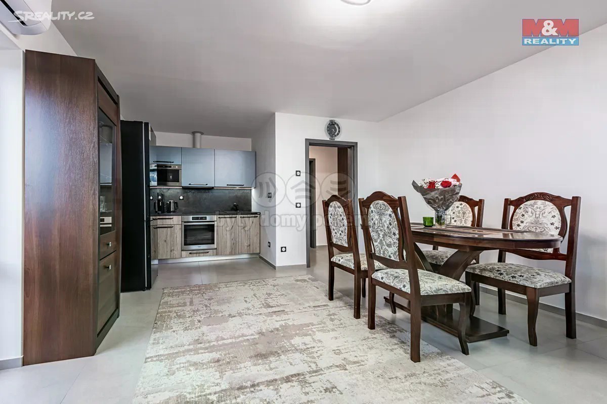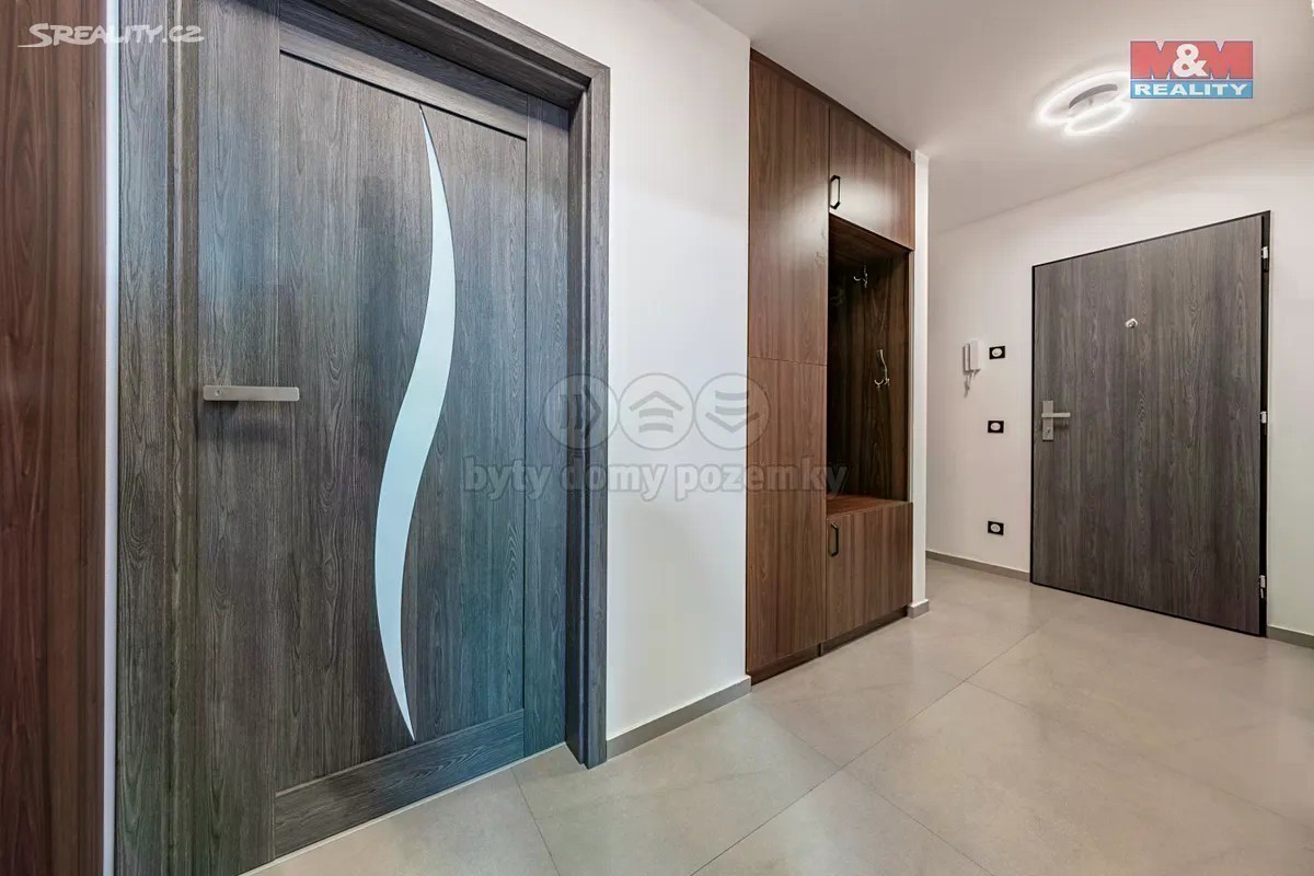 Pronájem nového bytu 2+kk v Kovanicích u Nymburka. Tento kompletně vybavený byt o ploše 58 m² plus balkon se nachází ve 3. patře zděného domu. Skládá se z prostorné předsíně, ložnice, koupelny a obývacího pokoje s kuchyňským koutem a vstupem na velký balkon. V celém bytě byl kladen důraz na dostatek úložného prostoru. Podkrovní patro bylo nově vybudováno a je kvalitně zatepleno, což zajišťuje nízké měsíční náklady. K dispozici zde je jak veškeré vybavení, tak vlastní elektrokotel s podlahovým topením či klimatizace. K bytu náleží parkovací stání na vlastním oploceném pozemku patřícímu k domu. Volné od 1.7.2025.