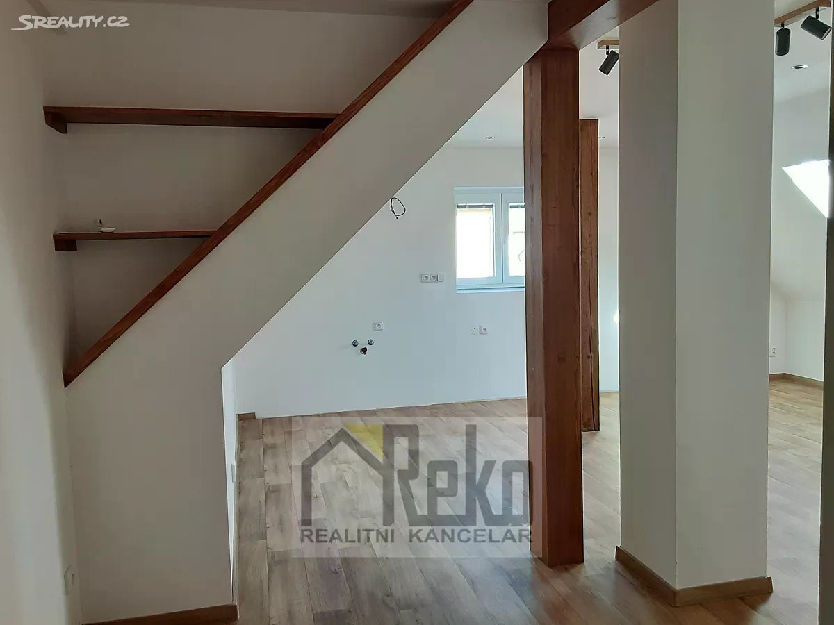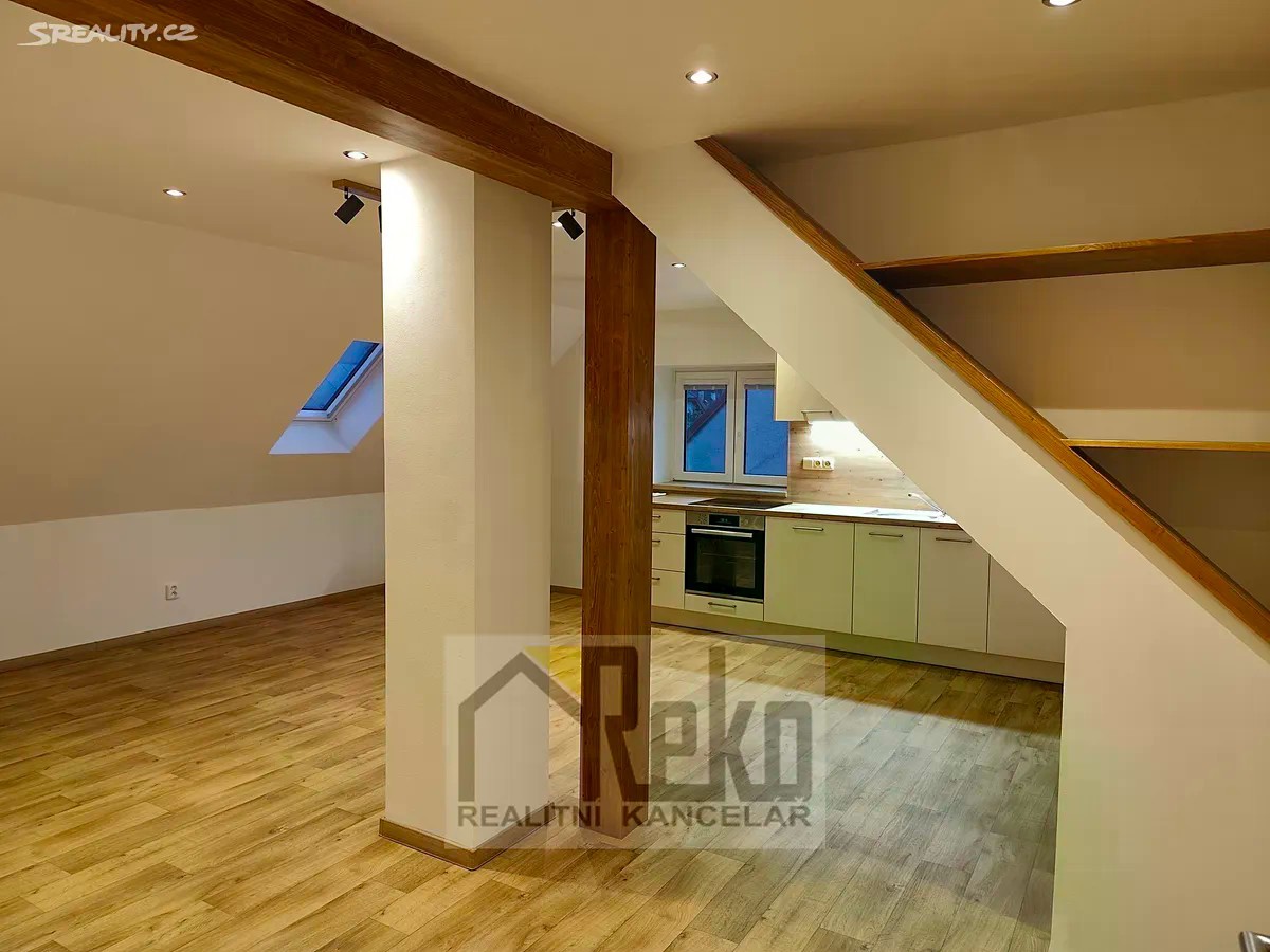 Nabízíme k pronájmu byt 2+kk v Berouně - Závodí. Jedná se o podkrovní byt s výměrou 58 m2 v nově rekonstruovaném domě s dvěma bytovými jednotkami. V bytě je kuchyňská linka s indukční varnou deskou, el. troubou a digestoří. Vytápění zajišťuje klimatizační jednotka. V koupelně se nachází sprchový kout, umyvadlo se skříňkou, otopný žebřík, přípojka na pračku a WC. Zde je podlahové vytápění. V celém bytě jsou v oknech žaluzie.