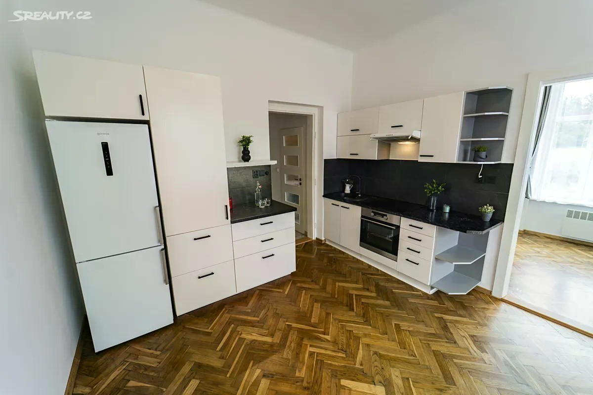 Podhradí, prodej bytu 2+kk po rekonstrukci 43 m2 Nabízíme ke koupi krásný byt o dispozici 2+kk a podlahové ploše 43 m, situovaný v prvním nadzemním podlaží původní prvorepublikové vily v malebné části Podhradí u Bakova nad Jizerou. Byt prošel v roce 2021 rozsáhlou rekonstrukcí byla kompletně obnovena elektroinstalace, rozvody vody i odpadů, zrenovovány původní dřevěné parkety, provedeny nové štuky a nainstalována moderní kuchyňská linka. Jednotka působí vzdušně, světle a je připravená k okamžitému nastěhování. K bytu náleží sklepní kóje vybavená regálem a dále je možnost k bytu využívat nejen část společné zahrady, ale i soukromou část pozemku s ohništěm a vyvýšeným záhonem. Parkování je možné na pozemku domu za bránou, která se ovládá jednoduše přes vytočení mobilního čísla na štěrkovém parkovišti zaparkují tři vozy, další místa jsou na trávě nebo pohodlně před domem podél silnice. Bytový dům původně prvorepubliková vila z roku cca 1925 má dvě nadzemní podlaží, podzemní podlaží a podkroví. Celkem se v něm nachází pět bytových jednotek a dvě nebytové jednotky v podkroví. Bytový dům má novou fasádu, avšak není zateplen. V podzemí jsou sklepní prostory, bývalá kotelna a technické zázemí. Podle oficiální povodňové mapy se dům nachází v záplavové zóně č. 4. Bytové jednotky jsou však ve vyvýšené poloze a přímé ohrožení jim nehrozí v celé historii objektu byla voda zaznamenána pouze ve sklepních prostorách. Z tohoto důvodu nelze sklepy pojistit proti povodni, samotné byty ale zůstávají mimo riziko. Měsíční náklady na bydlení jsou následující: zálohy na elektřinu cca 2.500 Kč, záloha na vodu 300 Kč, příspěvek do fondu oprav a správa domu (SVJ) 1.600 Kč. V domě není zaveden plyn, vytápění je řešeno elektrickými radiátory v každé místnosti, avšak doporučili bychom budoucím majitelům zvolit efektivnější druh vytápění. Nedávno byla nově přivedena optická internetová přípojka kabeláž do jednotlivých bytů si budoucí majitel může dovést dle potřeby. Dům spravuje společnost PRODOMIA. Úklid společných prostor si zajišťují obyvatelé dle rozpisu, stejně tak se podílejí na údržbě společné zahrady sekání trávy a drobné práce probíhají po dohodě. Podhradí je klidná a historicky cenná část obce Bakov nad Jizerou, obklopená přírodou a známá zejména romantickou zříceninou hradu Zvířetice. Samotný Bakov nad Jizerou, vzdálený jen pár minut chůze či jízdy, nabízí veškerou občanskou vybavenost obchody, školu, školku, zdravotní středisko, restaurace i sportovní zázemí. Výborná je i dopravní dostupnost autem jste v Mladé Boleslavi za 10 minut, dostupnost zajišťuje i vlak a autobus. Ideální volba pro ty, kdo hledají stylové bydlení v domě s atmosférou, obklopeném zelení a s pohodovým sousedstvím.