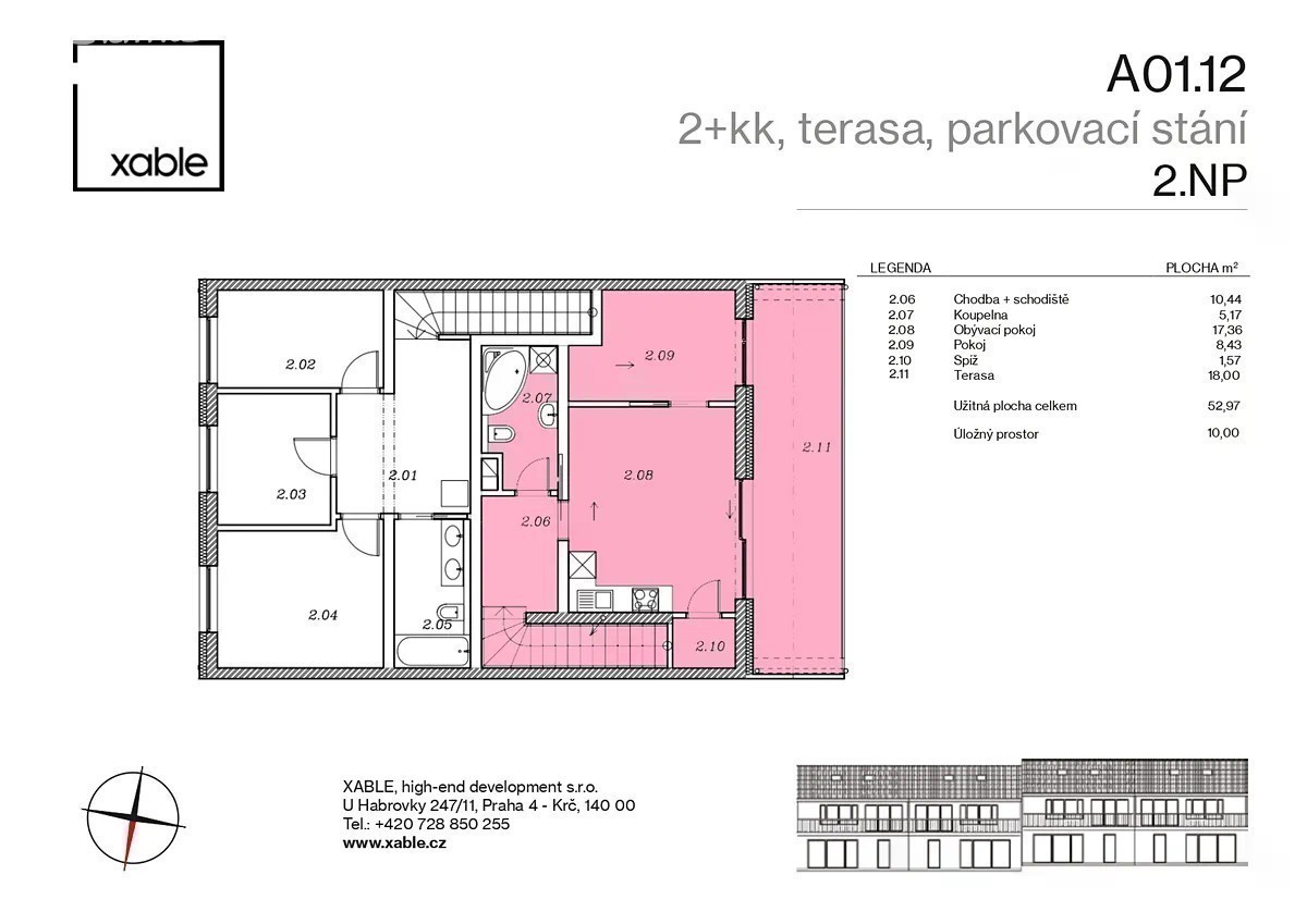 V rámci II. etapy výstavby projektu v ulici Nová v Kouřimi Vám nabízíme byt A01.12, 2+kk v 1. a 2.NP, s plochou bytu 52 m2 a terasou o výměře 18 m2. Všechny nabízené byty jsou cihlové, energetická třída B, velmi úsporné. Při výstavbě je kladen důraz na kvalitní provedení. Byty jsou v rozmezí 48 m2 až 98 m2. Ke každému bytu je v ceně parkovací stání na vlastním pozemku, zahrada nebo terasa. Každý byt má vlastní vodoměr a elektroměr. Standardy zahrnují plastová okna s trojskly, v obývacím pokoji je otevírání na posun, veškeré místnosti mají podlahové vytápění, některé vnitřní dveře jsou také na posun do pouzdra. Na konečné podobě bytů se můžete v průběhu výstavby sami podílet a byt tak bude dokončen Vám přímo na míru. Je možné k bytu přistavět zimní zahradu a z parkovacího stání postavit garáž. V Kouřimi je plnohodnotná občanská vybavenost - MŠ, ZŠ, ZUŠ, městský úřad, stavební úřad, praktičtí lékaři, gynekolog, veterinář. Je zde možnost nakoupit v různých obchodech na náměstí a v přilehlých ulicích. Ke sportování je možné využít jak rozmanitého terénu v okolí Kouřimi, tak je k dispozici sportovní hala, lehkoatletický stadion, fotbalové hřiště, tenisové kurty a 18ti jamkové golfové hřiště. Vše v docházkové vzdálenosti od bytu. Praha, Kolín, Český Brod, Čáslav, Kutná Hora, Sázava, Říčany jsou obslužné prostřednictvím PID. Vzdálenost do Prahy Černý most - 38 km. V rámci služeb nabízíme vyřízení hypotéky.