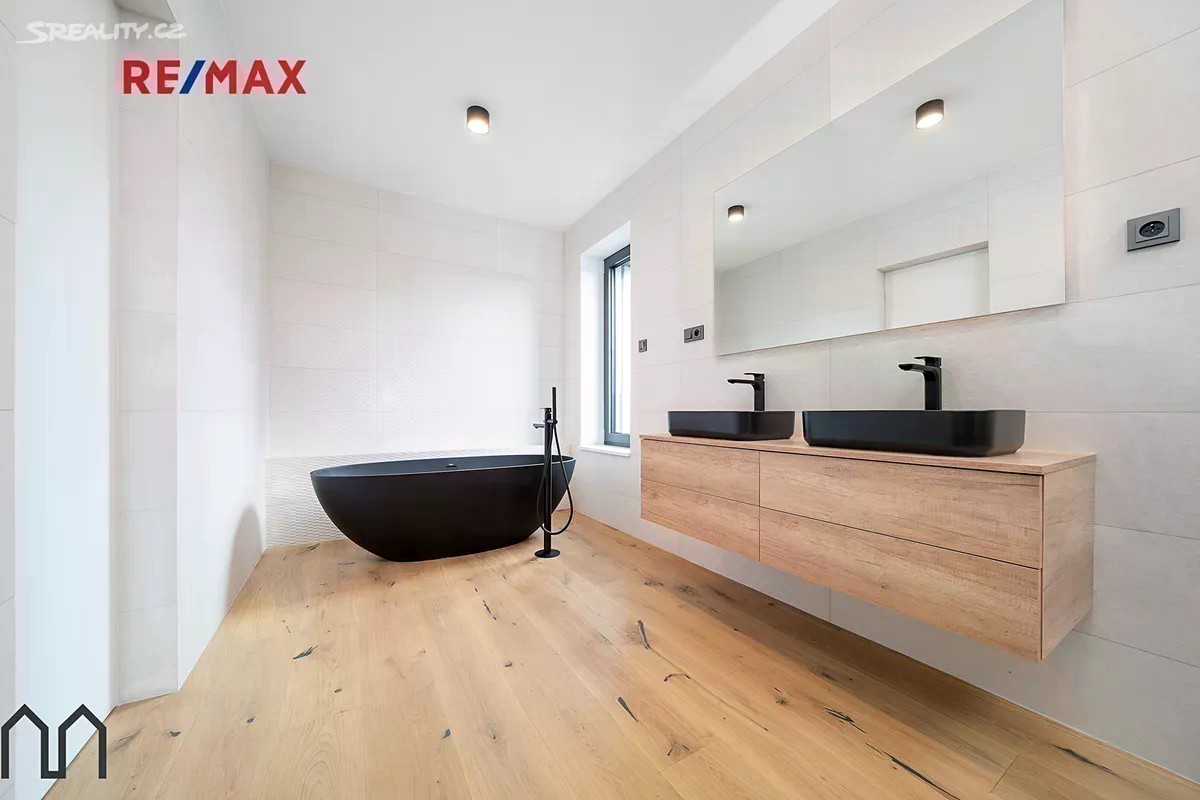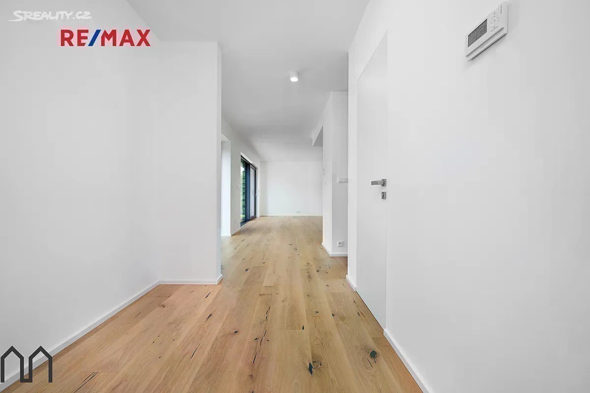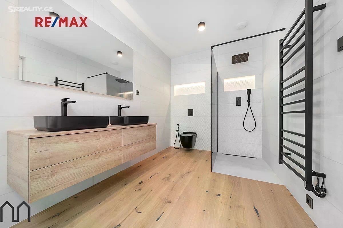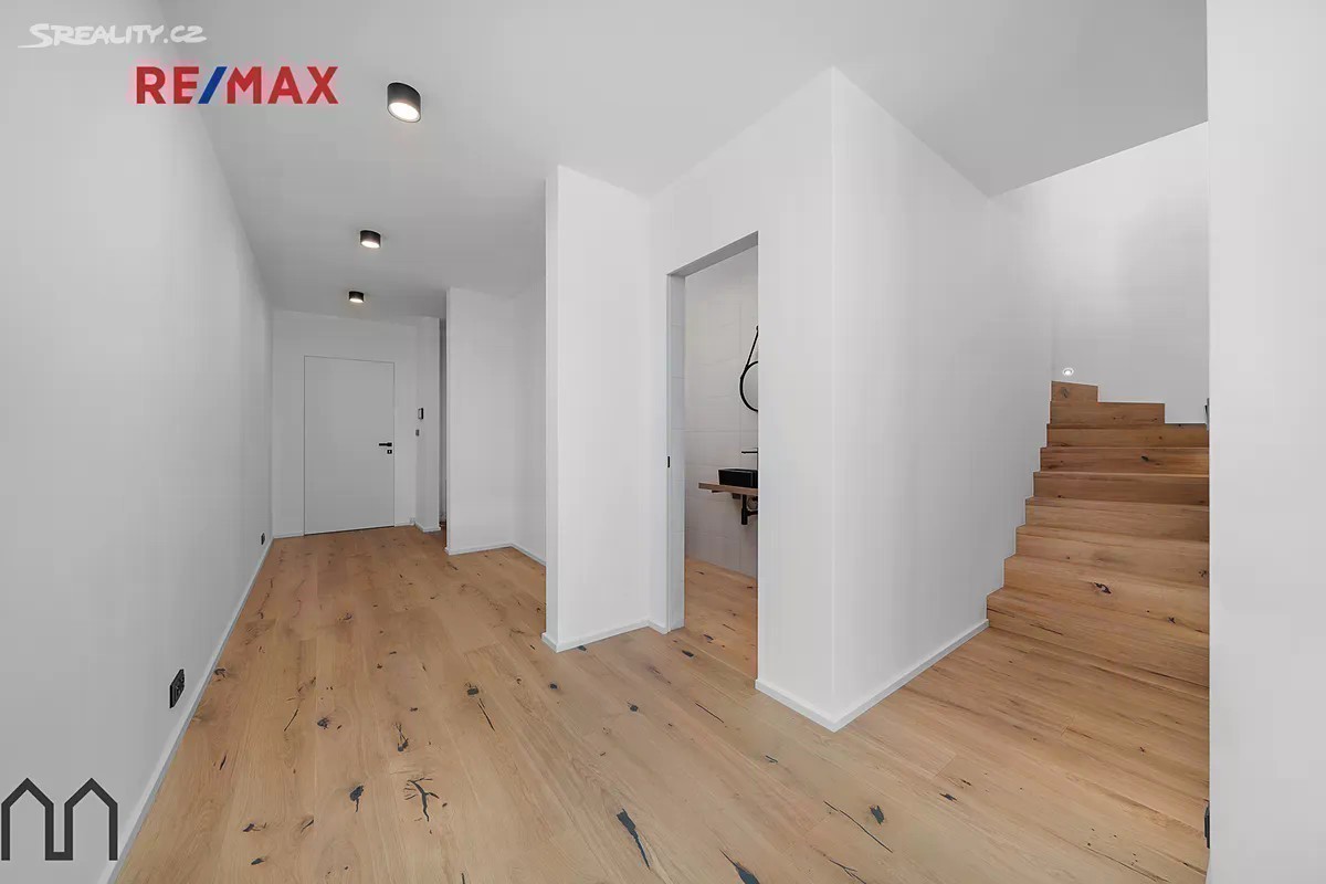 Představuji vám jedinečnou příležitost bydlet stylově a moderně. Tento prostorný, dvoupodlažní byt o dispozici 3+KK s celkovou podlahovou plochou 205 m² je součástí komorního projektu a nabízí vše, co si můžete přát pro komfortní rodinný život v blízkosti přírody. Nemovitost je čerstvě zkolaudována a připravena k okamžitému nastěhování. V bytě nikdo doposud nebydlel. Nechte se okouzlit vzdušným interiérem, prémiovými materiály a technologiemi, které vám zajistí nízké provozní náklady a maximální pohodlí po celý rok. To nejdůležitější v kostce: Dispozice: 3+KK Podlahová plocha bytu: 162 m² Soukromá zahrada s terasou: 315 m² Garáž: 34,2 m² Další parkování: Venkovní parkovací stání na pozemku Stav: Novostavba, zkolaudováno Energetická náročnost: Třída B - Velmi úsporná Projděte se bytem s námi Přízemí (1. NP): Srdce domova s přístupem do zahrady Dominantou spodního patra je velkorysý obývací prostor s kuchyňským koutem, který je díky velkoformátovým hliníkovým oknům nádherně prosvětlený. Z obývacího pokoje plynule přejdete na dřevěnou terasu a soukromou zahradu, která se v letních měsících stane vaším dalším pokojem. Součástí přízemí je také elegantní vstupní chodba, samostatná toaleta a praktická technická místnost. Patro (2. NP): Zóna klidu a odpočinku V horním patře naleznete dvě prostorné a neprůchozí ložnice, které poskytují absolutní klid. Každá ložnice má navíc svou vlastní luxusní koupelnu, což zaručuje komfort pro všechny členy rodiny. Koupelny jsou kapitolou samy pro sebe - těšit se můžete na italské designové obklady, prostorovou vanu z litého mramoru, bezrámové sprchové zástěny na míru, bidetové spršky a kvalitní sanitu i baterie prémiových značek. Nadstandardní vybavení a technologie pro vaše pohodlí: Tento byt byl postaven bez kompromisů s důrazem na kvalitu a dlouhodobou udržitelnost. Úsporný provoz: O vytápění a ohřev vody se stará tepelné čerpadlo v kombinaci s fotovoltaickými panely na střeše. Dokonalý komfort: Ve všech místnostech je podlahové vytápění a pro horké dny je připravena klimatizace. Soukromí a bezpečnost: Hliníková okna s izolačními trojskly jsou osazena venkovními předokenními žaluziemi na dálkové ovládání. Prémiové materiály: Třívrstvé dřevěné podlahy, bez falcové interiérové dveře se skrytými zárubněmi a kvalitní velkoformátová dlažba. Vše připraveno: Součástí prodeje je plně vybavená moderní kuchyňská linka se spotřebiči Siemens a Bosch. K bytu náleží prostorná garáž se sekčními vraty a další parkovací stání za vjezdovou bránou na dálkové ovládání. Tato nemovitost je ideální volbou pro náročné klienty, kteří hledají bydlení reprezentativní úrovně, nechtějí řešit rekonstrukci a chtějí si rovnou užívat všech výhod nového domova. Pro sjednání prohlídky nebo doplňující informace mě neváhejte kontaktovat. Rád vás bytem osobně provedu. Těším se na vás.