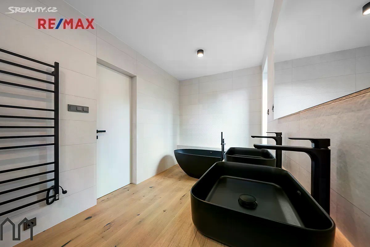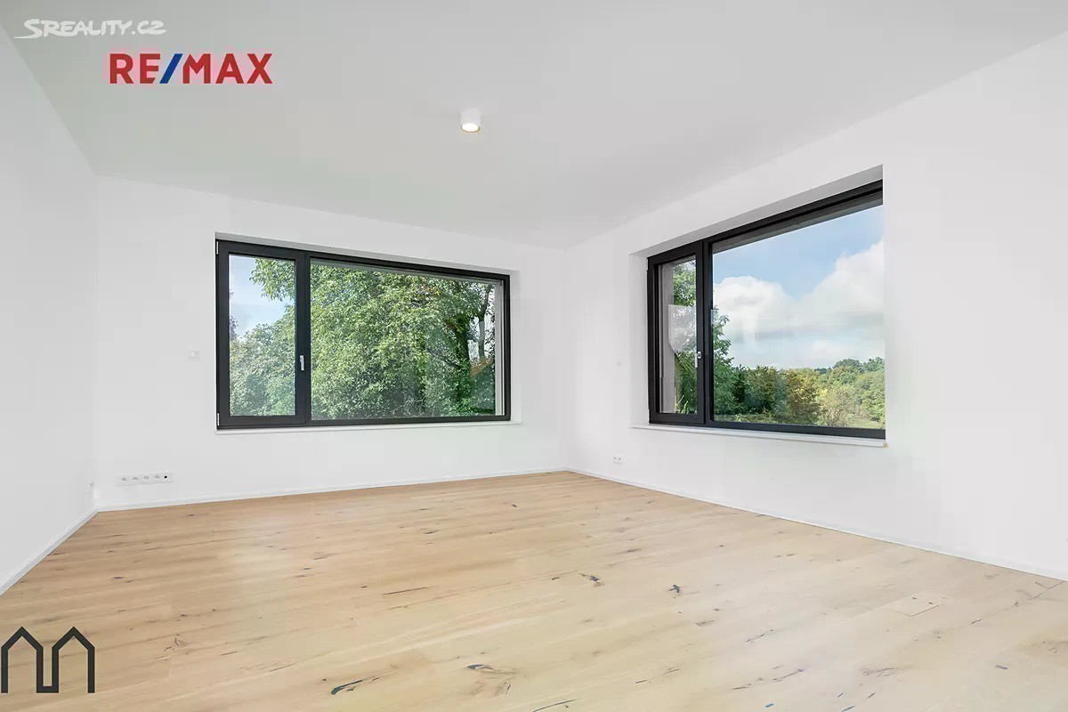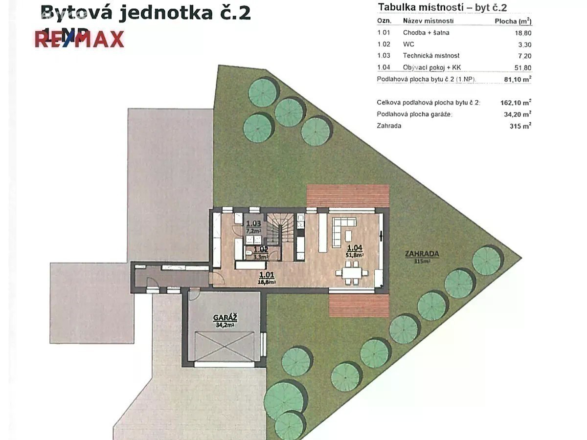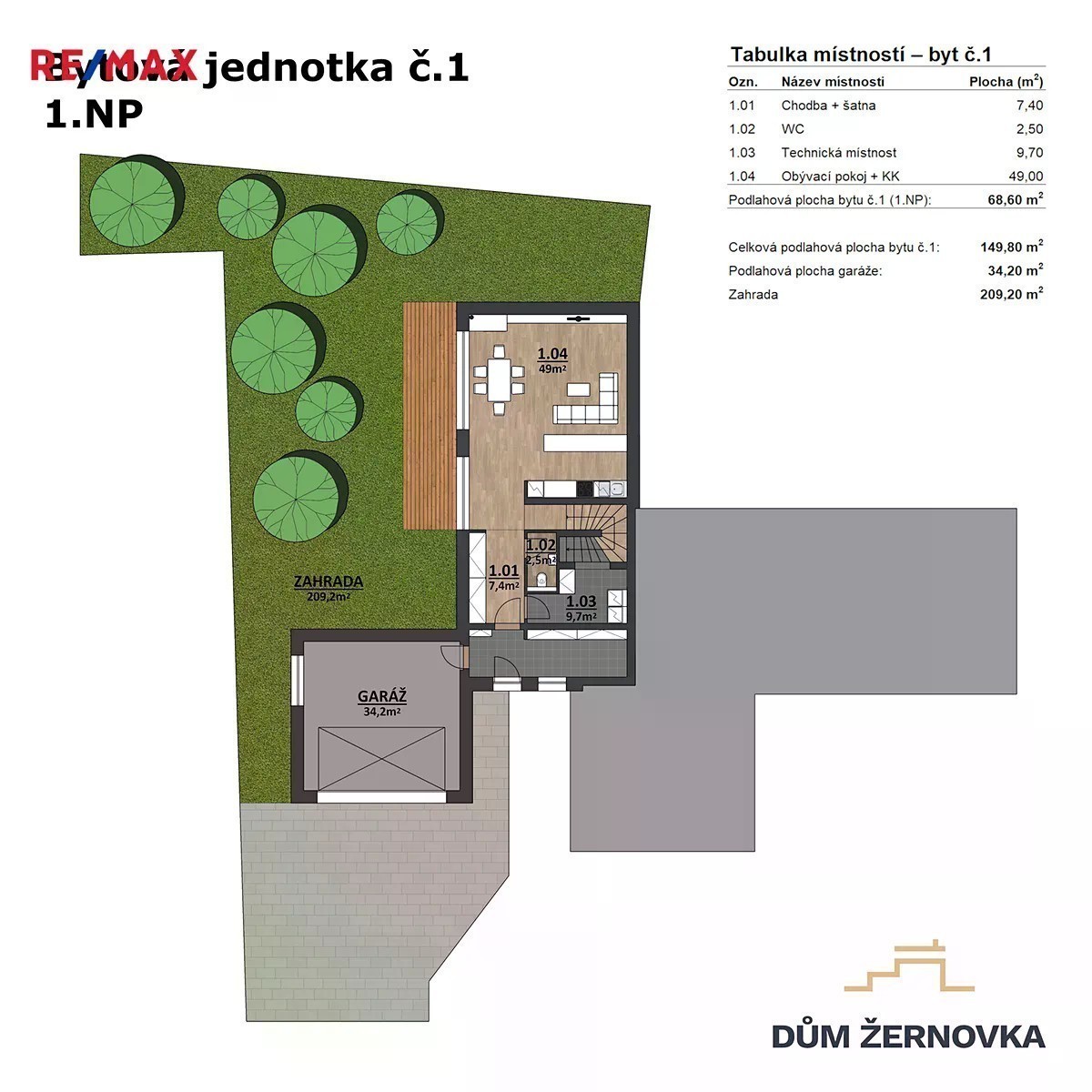 Představuji vám jedinečnou příležitost bydlet stylově a moderně. Tento prostorný, dvoupodlažní byt o dispozici 3+KK s celkovou podlahovou plochou 205 m² je součástí komorního projektu a nabízí vše, co si můžete přát pro komfortní rodinný život v blízkosti přírody. Nemovitost je čerstvě zkolaudována a připravena k okamžitému nastěhování. V bytě nikdo doposud nebydlel. Nechte se okouzlit vzdušným interiérem, prémiovými materiály a technologiemi, které vám zajistí nízké provozní náklady a maximální pohodlí po celý rok. To nejdůležitější v kostce: Dispozice: 3+KK Podlahová plocha bytu: 162 m² Soukromá zahrada s terasou: 315 m² Garáž: 34,2 m² Další parkování: Venkovní parkovací stání na pozemku Stav: Novostavba, zkolaudováno Energetická náročnost: Třída B - Velmi úsporná Projděte se bytem s námi Přízemí (1. NP): Srdce domova s přístupem do zahrady Dominantou spodního patra je velkorysý obývací prostor s kuchyňským koutem, který je díky velkoformátovým hliníkovým oknům nádherně prosvětlený. Z obývacího pokoje plynule přejdete na dřevěnou terasu a soukromou zahradu, která se v letních měsících stane vaším dalším pokojem. Součástí přízemí je také elegantní vstupní chodba, samostatná toaleta a praktická technická místnost. Patro (2. NP): Zóna klidu a odpočinku V horním patře naleznete dvě prostorné a neprůchozí ložnice, které poskytují absolutní klid. Každá ložnice má navíc svou vlastní luxusní koupelnu, což zaručuje komfort pro všechny členy rodiny. Koupelny jsou kapitolou samy pro sebe - těšit se můžete na italské designové obklady, prostorovou vanu z litého mramoru, bezrámové sprchové zástěny na míru, bidetové spršky a kvalitní sanitu i baterie prémiových značek. Nadstandardní vybavení a technologie pro vaše pohodlí: Tento byt byl postaven bez kompromisů s důrazem na kvalitu a dlouhodobou udržitelnost. Úsporný provoz: O vytápění a ohřev vody se stará tepelné čerpadlo v kombinaci s fotovoltaickými panely na střeše. Dokonalý komfort: Ve všech místnostech je podlahové vytápění a pro horké dny je připravena klimatizace. Soukromí a bezpečnost: Hliníková okna s izolačními trojskly jsou osazena venkovními předokenními žaluziemi na dálkové ovládání. Prémiové materiály: Třívrstvé dřevěné podlahy, bez falcové interiérové dveře se skrytými zárubněmi a kvalitní velkoformátová dlažba. Vše připraveno: Součástí prodeje je plně vybavená moderní kuchyňská linka se spotřebiči Siemens a Bosch. K bytu náleží prostorná garáž se sekčními vraty a další parkovací stání za vjezdovou bránou na dálkové ovládání. Tato nemovitost je ideální volbou pro náročné klienty, kteří hledají bydlení reprezentativní úrovně, nechtějí řešit rekonstrukci a chtějí si rovnou užívat všech výhod nového domova. Pro sjednání prohlídky nebo doplňující informace mě neváhejte kontaktovat. Rád vás bytem osobně provedu. Těším se na vás.