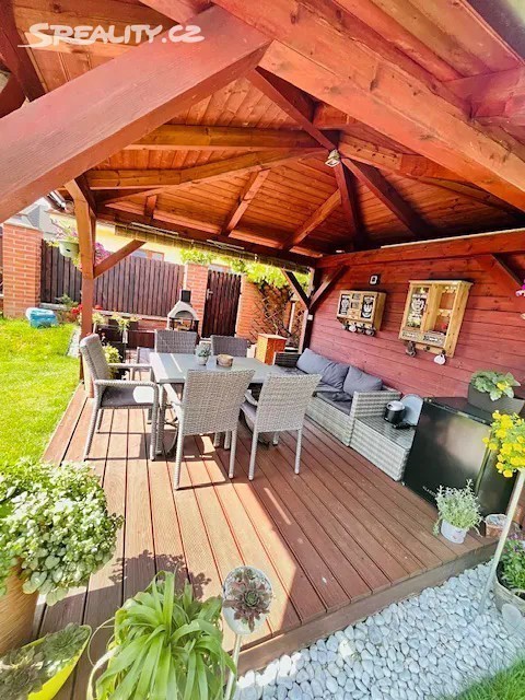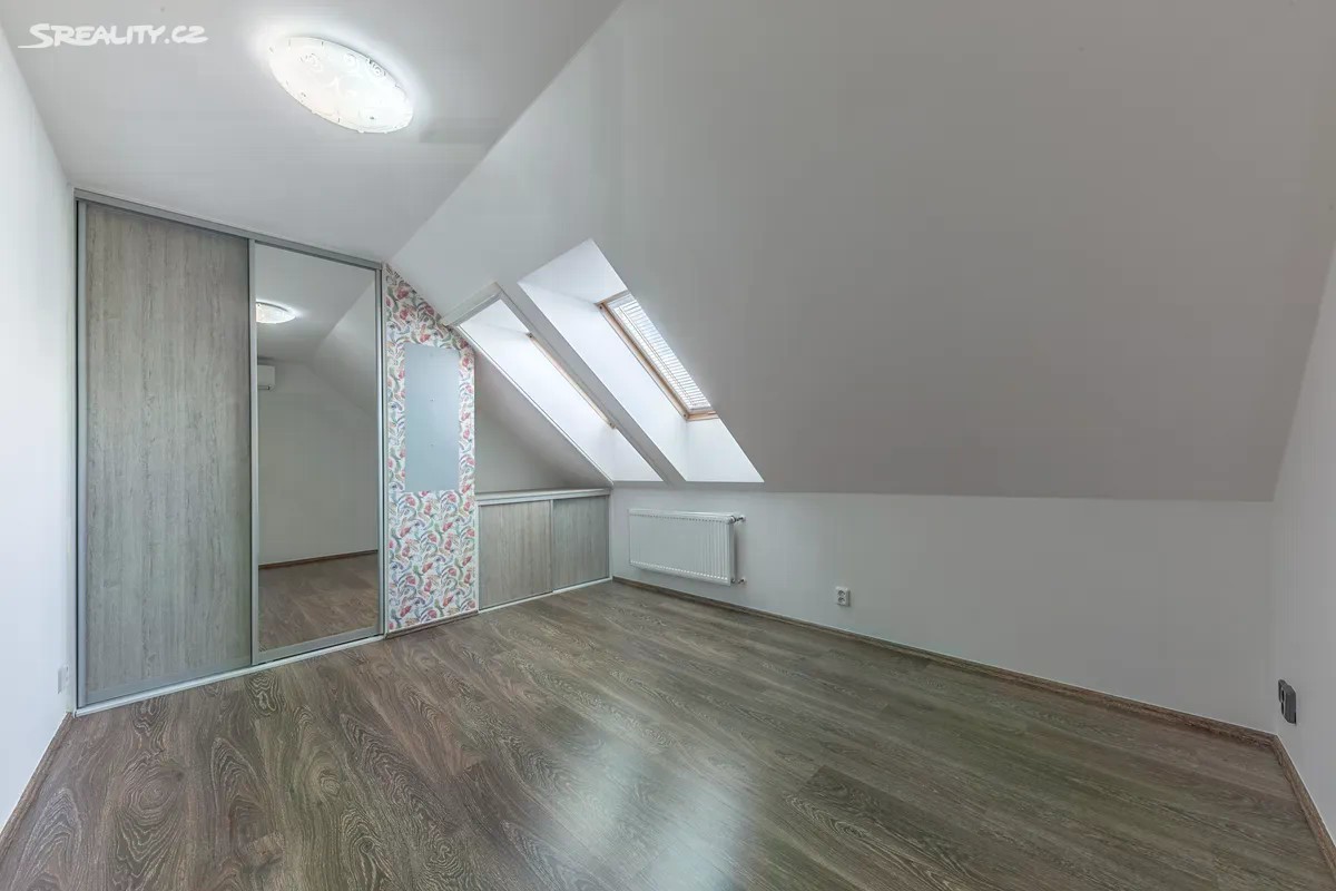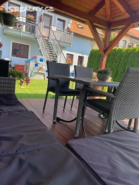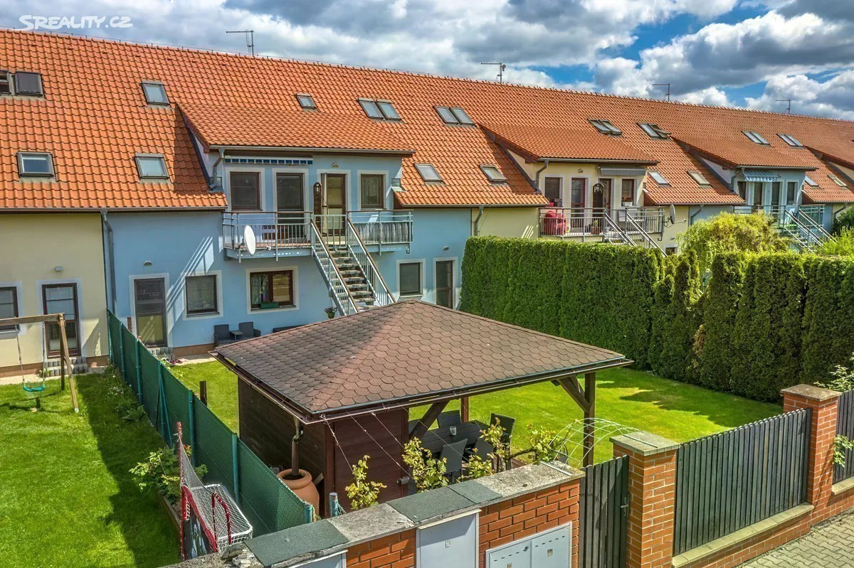 Zdiměřice, ulice Hrnčířská. V rodinném domě, kde je provedeno Prohlášení vlastníka, jsou celkem tři byty. Nabízíme k prodeji jeden z nich, o velikosti 4 + 1, kde Podlahová plocha činí 131,37 m2. K celému domu patří i společná zahrada o rozměru 203 m 2, kde se nachází vybavený altán s posezením Dům byl kolaudován v roce 2007. Celý byt je ve vynikajícím stavu a byl velmi pečlivě opečováván. Je mezonetový, umístěn do druhého a třetího nadzemního podlaží. Ve 2. podlaží je: zádveří, předsíň, samostatné WC, koupelna se sprchovým koutem, kuchyň a velký obývací pokoj. Ve 3. podlaží je: chodba, WC společně s koupelnou, tři velké pokoje (součástí jednoho pokoje je šatna) a komora. Do bytu se jde po schodech, které ústí na balkoně a odtud je vstup do bytu. Stejně je na druhé straně domu vyřešen vstup na zahradu. Zde je instalovaná markýza, která v případě potřeby příjemně stíní. Zahrada je přístupná také z ulice malou brankou. Kuchyně je vybavena vestavěnými spotřebiči a je zde i příprava na americkou lednici. Další nadstandardní vybavení a informace k bytu: klimatizace ovládaná dálkově přes aplikaci, venkovní stínění na střešních oknech, vnitřní žaluzie, sítě proti hmyzu, kondenzační kotel, v koupelně je prostor na pračku i sušičku, najdeme tu i vestavěné skříně a zavedený internet. Byt je velmi dobře umístěn, v docházkové vzdálenosti cca 1 km se nachází Průhonický park, malý kousek v Čestlicích Funpark Žirafa, největší dětský zábavní park v Česku, sportovní areál ve Zdiměřicích a Jesenici. Zdiměřice prakticky navazují na Jesenici, kde je veškeré občanské vybavení a služby. Energetická náročnost je uvedena "G", není vypracován energetický štítek.