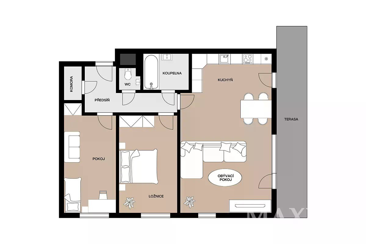 Nabízíme k prodeji moderní a velmi prostorný byt 3+kk o celkové ploše 80,6 m2, který se nachází ve 2. nadzemním podlaží bezbariérové novostavby v klidné a žádané lokalitě Jinočany, v těsné blízkosti Prahy. Dominantou bytu je prostorný balkon o výměře 13 m2 s příjemným výhledem do okolní zeleně, ideální k posezení nebo odpočinku. Dispozice bytu zahrnuje světlý obývací pokoj s plně vybaveným moderním kuchyňským koutem, 2 samostatné neprůchozí ložnice, koupelnu s vanou, oddělenou toaletu a praktickou komoru, která nabízí dostatek úložného prostoru. V celém bytě jsou položeny kvalitní vinylové podlahy. Byt je orientován na jih a západ, je tedy prosluněný během celého dne. Všechna okna jsou vybavena předokenními žaluziemi pro maximální komfort a soukromí. Třífázová elektroinstalace zajišťuje dostatečný výkon pro náročnější spotřebiče. Bytový dům je vybaven výtahem a bezbariérovým přístupem. Vysokorychlostní internet a kabelová televize jsou samozřejmostí. Velkou výhodou jsou nízké měsíční náklady na provoz, díky čemuž je byt vhodný i jako investice. Jinočany patří k vyhledávaným lokalitám díky své poloze a dostupnosti vlakem se dostanete na Smíchovské nádraží přibližně za 15 minut, autem jste během chvíle na Zličíně nebo letišti. V blízkosti je také napojení na Pražský okruh. Veškerá občanská vybavenost, včetně MHD, je v docházkové vzdálenosti. Tento byt je skvělou volbou pro ty, kdo hledají moderní, pohodlné a klidné bydlení s výbornou dostupností do centra hlavního města. PENB: B