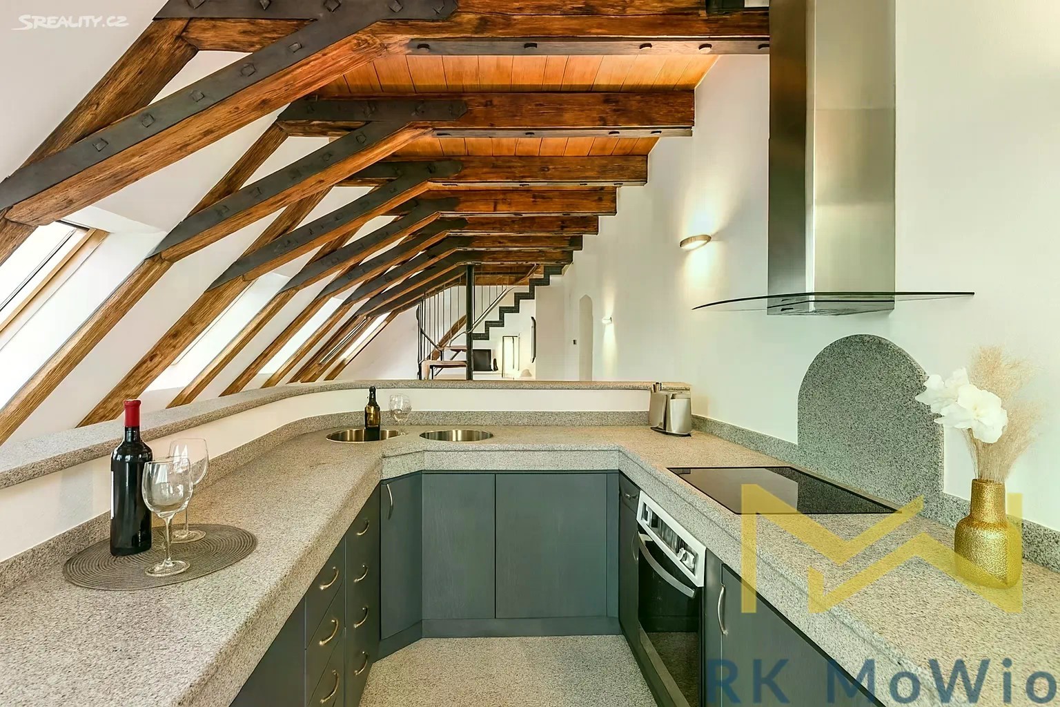 K pronájmu nabízíme zařízený, podkrovní, mezonetový byt č. V5-P, o dispozici 4+kk a podlahové ploše 221 m2, s unikátními dřevěnými trámy, situovaný ve 3. patře (4. nadzemní podlaží) zrekonstruované historické budovy bez výtahu v ulici Vlašská na Praze 1 - Malá Strana. Půdorys spodního patra bytové jednotky nabízí vstupní chodbu, vzdušný obývací pokoj s jídelní částí, kuchyňský kout, 2 ložnice, 1 koupelnu (s vanou, umyvadlem, bidetem a toaletou) a 2 komory. Z obývacího pokoje vede schodiště do horního patra a naleznete zde hlavní ložnici s privátní koupelnou (s vanou, umyvadlem, bidetem a toaletou). Vybavení bytu: kuchyňská linka včetně sklokeramické varné desky, digestoře, myčky, elektrické trouby; vestavěné skříně, přípojka pro pračku a sušičku, příprava pro vysokorychlostní internet, dřevěné podlahy a dlažba. Nemovitost se nachází v úchvatné historické lokalitě Malé Strany s veškerou občanskou vybaveností v blízké vzdálenosti - restaurace (St. Martin, Coda restaurant, Restaurant U Tří zlatých hvězd), kavárny (Café Clementina, Kafe a hrnky, Kaférna), supermarkety (Tesco) a lokální obchody, lékárny a poliklinika, pošta, úřady, bankomaty a další. Skvělá dopravní dostupnost: zastávka tramvaje - Malostranské náměstí, stanice metra A - Malostranská. K odpočinku v zeleni lze navštívit rozlehlé Petřínské sady či Kampu. Snadná dostupnost do obchodního centra Palladium či OC Nový Smíchov. Nájemné ve výši 75.000,- Kč/měsíc plus poplatky 5.400,- Kč/měsíc (domovní služby a služby za byt), převod elektřiny a plynu na nájemce. POŽADOVANÁ JISTOTA (KAUCE) ČINÍ 3 MĚSÍČNÍ NÁJMY. Minimální délka pronájmu je 1 rok, spolubydlení a ubytování formou Airbnb nelze realizovat. Třída energetické náročnosti budovy je dle vyhlášky 78/2013 Sb. klasifikována G.