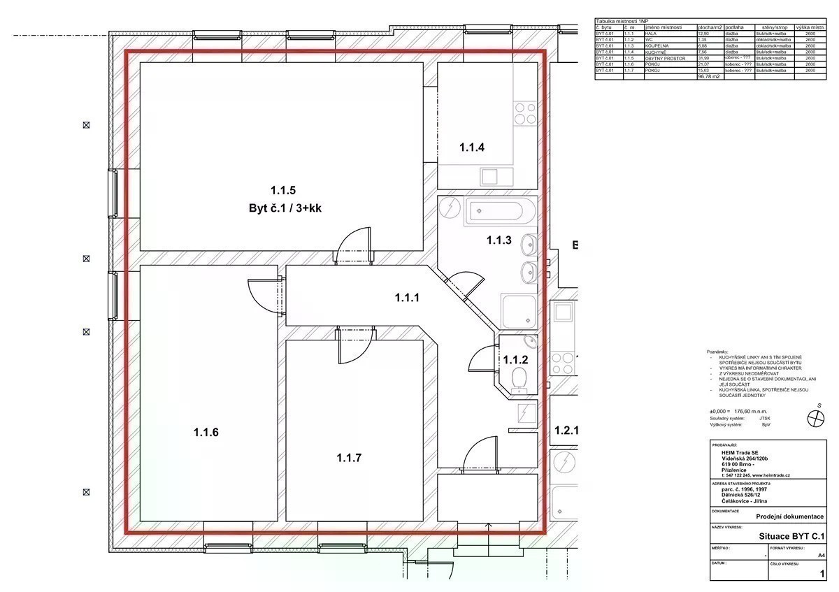 Nabízíme Vám velký světlý a slunný byt 3+kk 105,1 m2 ve zrekonstruované prvorepublikové vile v Čelákovicích. Byt se nachází v 1. nadzemním podlaží a je orientován na tři světové strany. Ze vstupní chodby se vstupuje do všech místností, tj. do světlého obývacího pokoje, který je důmyslně spojen s částečně oddělenou kuchyňskou částí, do dvou samostatných pokojů, prostorné koupelny s vanou, dvěma umyvadly a sprchových koutem a naposledy do samostatného WC s umyvadlem. Bytový dům Dělnická 12 je situován do klidné vilové čtvrti ve východní části Čelákovic v dochozí vzdálenosti 5 min od nádraží. Nabízí celkem 11 bytových jednotek umístěných ve třech nadzemních podlažích. Původně prvorepubliková vila byla citlivě rekonstruována tak, aby nabídla novým majitelům komfort moderního bydlení při zachování historických prvků původní vily. Ke každému z bytů lze koupit parkovací stání na vlastním pozemku. Čelákovice jsou atraktivní lokalita pro bydlení, podnikání i aktivní odpočinek, rozkládají se u Labe asi 27 km severovýchodním směrem od Prahy. Naleznete zde veškerou občanskou vybavenost. Nabízí nadstandardní volnočasové vyžití s řadou cyklostezek, dětských hřišť, má krásné historické centrum, ve kterém najdete spoustu možností kulturního a společenského vyžití. V červnu 2023 byla na Labi dokončena realizace přístaviště pro malá vodní plavidla. V případě zájmu nás neváhejte kontaktovat. Více informací najdete na webu projektu Bytový dům Dělnická 12. Prodej přímo od developera.