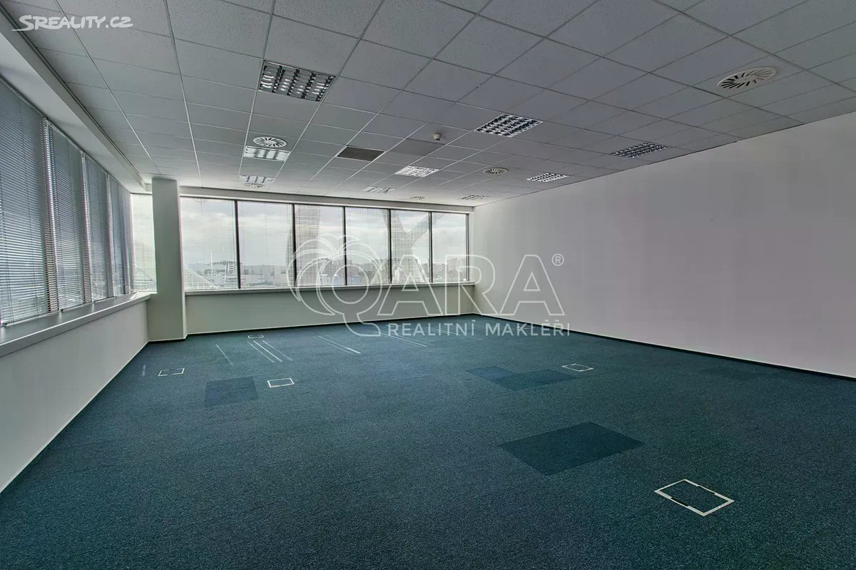 Bez provize nabízíme k pronájmu kancelář v reprezentativní výškové budově s 24hodinovou recepcí na pražském Chodově. Open space o ploše 72 m² je v 9. podlaží administrativní budovy s pěti výtahy a s úchvatnými výhledy na Prahu. V budově se nachází jídelna a v jejím těsném sousedství rovněž restaurace KFC. V lokalitě je vynikající dopravní dostupnost - je v sousedství dálnice D1 a disponuje vlastními podzemními garážemi (parkování není v ceně nájmu kanceláří, zdarma lze ale parkovat na venkovních prostranstvích okolo budovy, kde není modrá zóna). V sousedství objektu je ***Eurohotel, fitness, autoservis, STK Dekra, čerpací stanice s nabíjením pro elektromobily MOL a prodejna sportovních potřeb Decathlon. Asi 100 m od budovy budovy je též zastávka autobusu, který jede jen dvě minuty na metro Chodov s velkým OC Westfield (obchody, restaurace, kavárny a banky). V blízkosti jsou tam i školky, školy a velká poliklinika EUC. Kromě inzerovaného nájmu 10 euro za metr čtvereční měsíčně (v přepočtu 249 Kč bez DPH) se platí poplatek za služby 135 Kč/m² bez DPH, spotřebu elektrické energie a vody hradí nájemce zvlášť. Fakturovaná plocha je včetně podílu na společných prostorách objektu 88 m².
