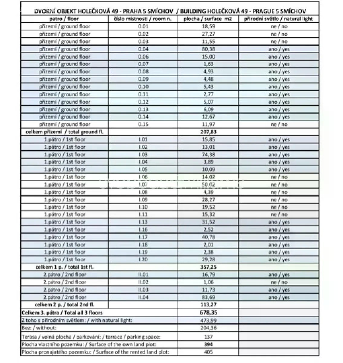 Atypický, původně industriální objekt s užitnou plochou téměř 700 m2, využívaný po dobu 20 let jako vyhlášená galerie, se nachází v širším centru metropole, v Praze 5 - Smíchově, jen pár minut chůze od nákupního centra Nový Smíchov. Prostor bude po úpravě vhodný například pro prestižní sídlo firmy, showroom nebo rezidenční bydlení. Klíčová investiční kritéria podlahová plocha budovy: 678 m2 venkovní prostory: 137 m2 možnost parkování 2-3 vozů potenciální možnost odkoupení zahrady (310 m2) přilehlé k nemovitosti výjimečné galerijní prostory bez památkové ochrany naprosto variabilní využití výborná lokalita prodej nemovitosti (asset deal) Popis nemovitosti dům z počátku 20. století poslední rekonstrukce v r. 2003 suterén: 207,83 m2 1. nadzemní podlaží: 357,25 m2 2. nadzemní podlaží: 113,27 m2 výška stropu 2,5 až 4 m prostory galerie, kanceláře, servisní a skladové prostory předmětem prodeje je budova ve vnitrobloku; vstup je přes bytový dům (zřízeno věcné břemeno chůze a jízdy) Lokalita místo výborně přístupné autem, MHD i pěšky v blízkosti zastávka MHD (tramvaj, autobus, v docházkové vzdálenosti i stanice metra) v dosahu smíchovské pěší zóny Anděl a zcela nové čtvrti Smíchov City v okolí se rozkládá několik parků: zahrada Kinských, park Sacré Coeur, Bertramka
