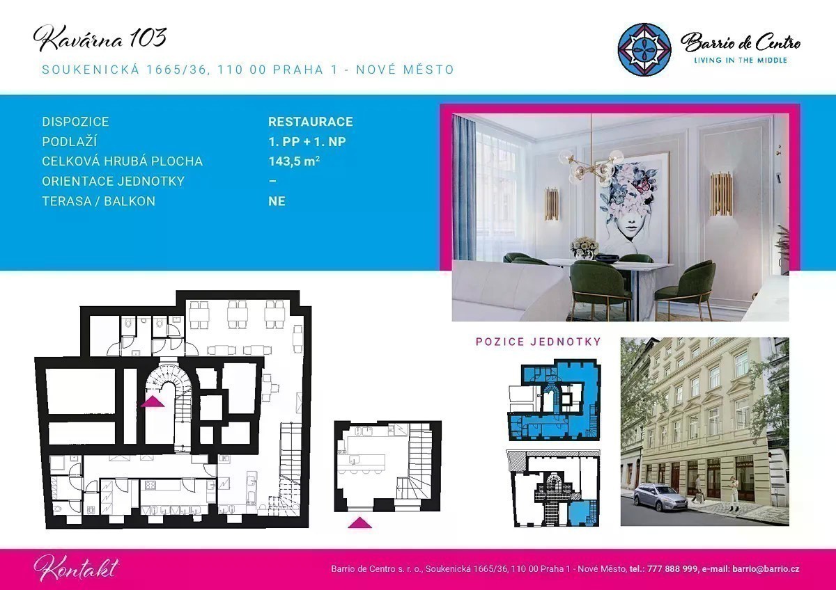 Nabízíme komerční prostory (restauraci) v nově zrekonstruovaném domě na prestižní adrese Soukenická 36. Tento dům kombinuje historické kouzlo s moderními prvky a vysokým standardem vybavení. • přímo od developera • prostor o velikosti 143,5 m² • restaurace se nachází v 1. PP a 1. NP • lze využít jako gastro, služby, salon, fitness, obchodní prostory • dům je po kompletní rekonstrukci (nová okna, střecha a rozvody) • možnost zakoupení s nájemníkem, aktuálně pronajímáno jako masážní salon Lokalita: Tato lokalita nabízí bohaté kulturní a společenské vyžití. V blízkosti najdete nespočet restaurací, kaváren, obchodů a kulturních památek. Soukenická ulice je klidná a poskytuje příjemné bydlení v centru města, přičemž je zde zároveň dostatek zeleně v okolních parcích, jako například nedaleký Park Lannova. Dopravní dostupnost: Dopravní dostupnost je vynikající. V docházkové vzdálenosti se nachází stanice metra Náměstí Republiky (trasa B), která zajišťuje rychlé a pohodlné spojení s celým městem. V blízkosti jsou také tramvajové zastávky, odkud je možné se snadno dopravit do dalších částí Prahy. Autobusové spojení je rovněž velmi dobré. Tento byt je ideální pro ty, kteří hledají moderní a komfortní bydlení v nově zrekonstruovaném domě s vysokým standardem vybavení a výbornou dopravní dostupností. Pro větší pohodlí a lepší představu o bytě nabízíme videoprohlídky. Pro více informací a sjednání osobní prohlídky nás neváhejte kontaktovat.