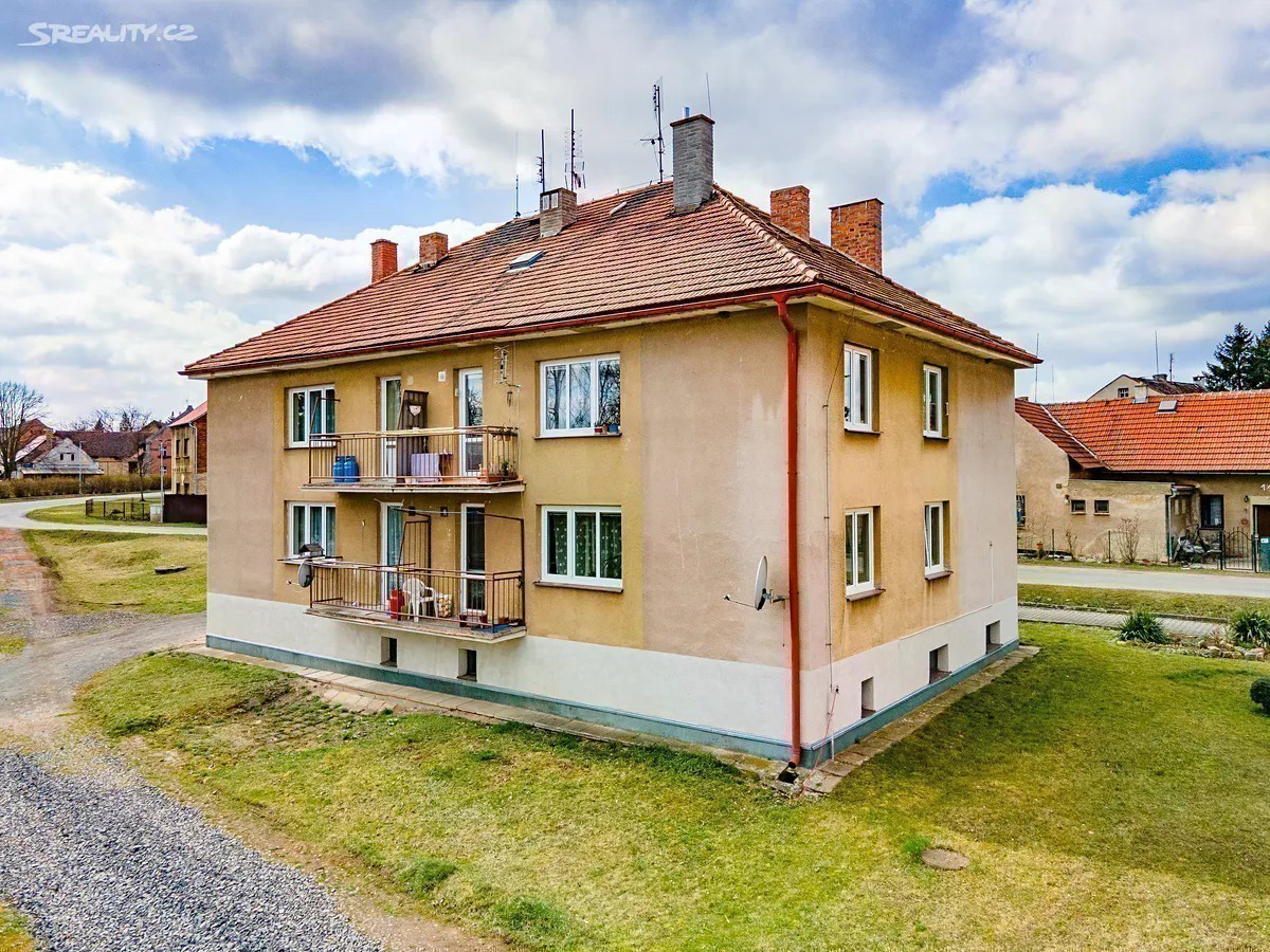 Nabízíme k prodeji bytovou jednotku v osobním vlastnictví s dispozicí 4+1 nacházející se v druhém nadzemním podlaží zděného bytového domu v Milostíně. Bytová jednotka má obytnou výměru 71 m2. Dispozice: prostorný obývací pokoj propojený s kuchyní a výstupem na balkon (2,4 m2), dětský pokojík (pracovna), pokoj pro hosty a ložnice, centrální chodba, WC samostatné a koupelna s vanou. Vytápění bytu - vlastní elektrokotel umístěný v prostoru sklepa (10,5 m2) pod bytem. Ohřev teplé vody zajišťuje elektrický bojler. K bytu dále náleží druhý sklep o výměře 6 m2, komora na patře bytu, společná lodžie na patře (3 m2) a dvě garáže (23 m2 + 23 m2). Byt má plovoucí podlahy, plastová okna, nové rozvody vody a odpadu v plastu, elektřina v mědi. Byt je určen k malé revitalizaci dle vlastních představ. Součástí prodeje jsou podíly na pozemcích okolo domu o celkové výměře 3.177 m2, které je možno využívat. Bytový dům je po částečné revitalizaci ( komíny, klempířské práce, vchodové dveře a okna plastová, atd.). V BD jsou 4 bytové jednotky. V blízkosti bytu se nachází obchod s potravinami COOP, Obecní úřad, Pošta. Do obce jezdí autobus a vlak. Nájezd na dálnici D6 směr Praha a Karlovy Vary s nájezdem 4 km. Dojezd na metro Praha 45 minut. Další informace vám poskytne makléř. Možno financovat hypotečním úvěrem - zajistí naši finanční poradci.