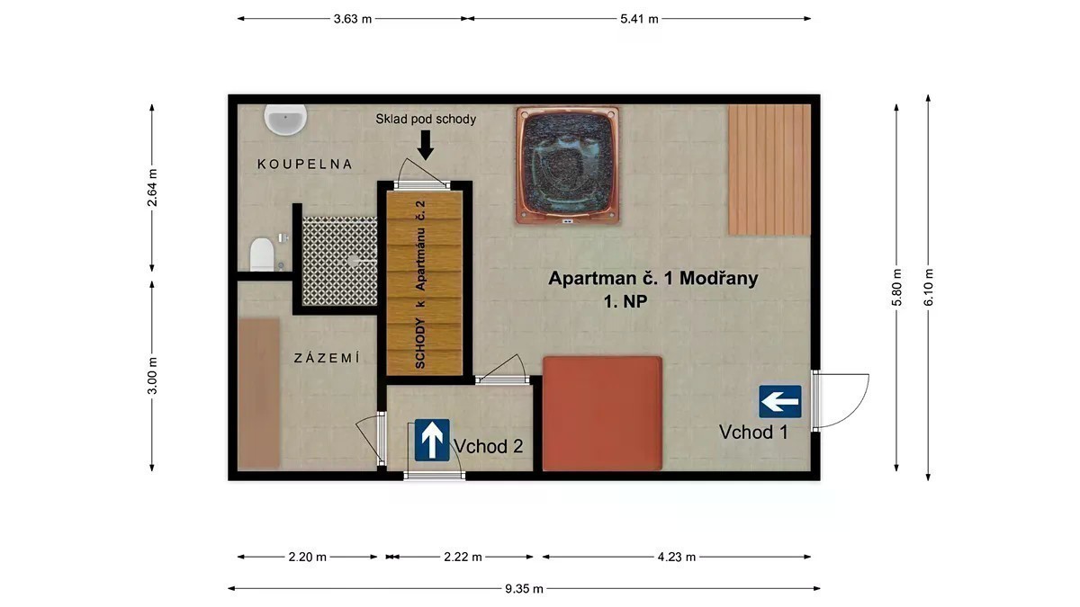 Prodej mezonetového prostoru o užitné ploše 100 m2, v Praze 4, Modřanech. Prostor se nachází v 1. a ve 2. podlaží bytového domu dokončeného v roce 2001. V domě se nachází několik stejných mezonetových jednotek, ale tato je poslední, která má způsob využití jako jiný nebytový prostor, zbylé mezonety mají změněný způsob využití na byt. Mezonet je doposud zařízený jako privátní wellness. V přízemí se nachází jeden apartmán a ve 2. podlaží je druhý. Mezonet lze využívat v celku nebo zvlášť vstoupit do spodní části a zvlášť do horního prostoru samostatnými vchody. Prodej mezonetu je možný včetně kompletního vybavení nebo dle dohody. Kupující se tak může rozhodnout o budoucím využití mezonetu dle vlastního uvážení. V případě zájmu kontaktujte makléře.