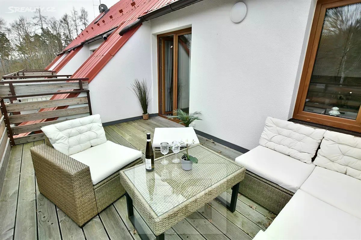 Pokud hledáte nemovitost, kterou můžete buď sami využívat nebo inkasovat příjem z pronájmu, máme pro Vás zajímavou nabídku - apartmán v komorním projektu „Apartmány Hrdlička“ na Slapech, u obce Čím, jež byl dokončen v roce 2021. Apartmány se nacházejí v klidné části u lesa, v blízkosti malebné pláže či přístaviště a jen 4,5 km od oblíbeného Golfparku Slapy. Z nedaleké autobusové zastávky dojedete na metro B Smíchovské nádraží v Praze. Během 15 min se dostanete do obce Davle nabízející další služby a za 30 min jste autem na hranici Prahy. Tato konkrétní jednotka 2+kk je již kompletně vybavená, má celkovou plochu 18,79m2 se spacím patrem o ploše 21,14m2, s terasou o celkové ploše 14,8m2 nabízející krásný výhled na okolí. K dispozici je též komora/šatna o ploše 11,57m2, jež se nachází hned naproti vstupním dveří na chodbě. K jednotce přísluší parkovací stání před domem. Součástí objektu je společná nadstandardní sauna s relaxační zónou, prádelna, kolárna či venkovní posezení. Projekt Apartmány Hrdlička představuje zajímavou investiční příležitost s výnosem až 4% (z čistého nájmu bez poplatků; bez započítaného zhodnocení nemovitosti). Jednotky se mohou velmi dobře pronajímat (krátkodobě x dlouhodobě), vy se o nic nestaráte, veškerý servis zajistí naše společnost - volejte kdykoliv. Nechcete ztrácet čas? V případě zájmu Vám rád pošlu odkaz na virtuální prohlídku, abyste měli úplnou představu o nabízené nemovitosti (360° prohlídka s možností orientace ve videu dle vašich představ).