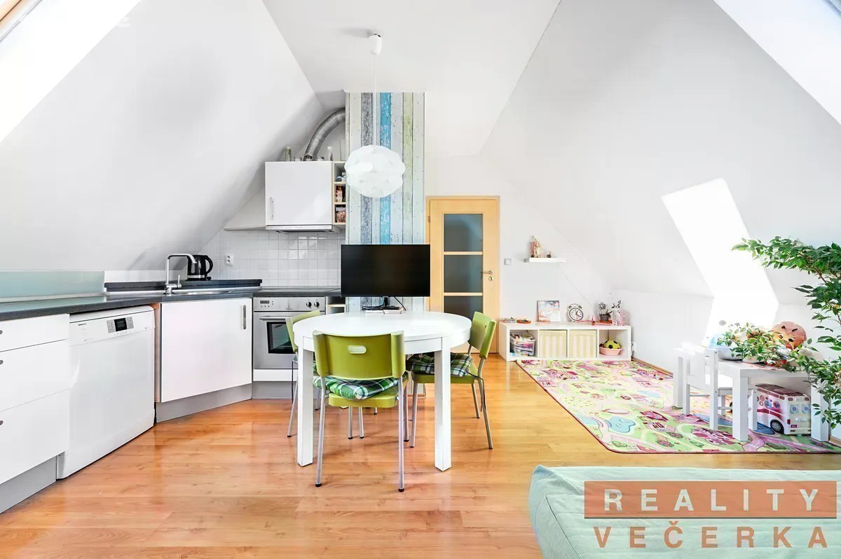 Nabízíme k prodeji byt v osobním vlastnictví o velikosti 2+KK, o ploše 46 m2 a komoru o ploše 4 m2, v ulici K Šátalce, Jesenice u Prahy. Ulice k Šátalce je součástí uskupení ulic, kde jsou rodinné bytové domy, které jsou postaveny ve stejném slohu. Tvoří příjemné, uzavřené, malebné prostředí k bydlení, bez další rušivé výstavby. Dům byl postaven v roce 2005. Má 3 nadzemní podlaží, (tj. 2 patra), prodávaný byt je podkrovní a je ve 3. nadzemním podlaží. Na první pohled je patrné, že o dům je dobře pečováno. Jde o cihlovou stavbu, je zateplený, fasáda je omyvatelná, Střešní krytina je pálená taška. Byty prostupuje stoupačka, ve které je umístěn přívod teplé a studené vody a kanalizační potrubí, vše je v plastovém potrubí. Vytápění bytu spolu s dalšími byty je vytápěno dvěma kotly na plyn. Celkově jde o 11 vytápěných bytů. Samotné teplo do bytu je dodáváno teplovodními radiátory. Dispozice prodávaného bytu C1-21): - předsíň - 5,2m2 (na půdorysu 21.01) - pokoj 1 - 16,2 m2 (na půdorysu 21.02) - pokoj 2 - 13,7 m2 (na půdorysu 21.03) - kuchyňský kout - 3,5 m2 (na půdorysu 21.04) - koupelna s WC - 5,4 m2 (na půdorysu) - komora - 4 m2 (na patře vedle bytu) Plocha bytu je 46 m2 K bytu náleží zahrada o ploše cca 350 m2, je využívaná k relaxaci, posezení na terase, grilování atd. K bytu náleží komora, která je na patře vedle bytu. Na podlahách je v obytných místnostech plovoucí podlaha v dalších dlažba. Byt je nabízený s veškerým vybavením, kterým je: kuchyňská linka, myčka, pračka, lednice, sporák s varnou deskou, digestoř atd., k bytu je přiveden optický kabel. Měsíční náklady na byt jsou ve výši 4500,- Kč. Z toho fond oprav je 1125,- Kč. V nákladech jsou zálohy na vytápění, na ohřev vody, vodné a stočné s tím, že je k bytové jednotce jedenkrát ročně prováděno vyúčtování skutečné spotřeby. V nákladech a zálohách není spotřeba elektrické energie v bytě. Energetická náročnost budovy je vedena pod písmenem C - úsporná. Jesenice je město, které se nachází v okrese Praha-západ, je vzdálené asi 16 km od centra Prahy. Nájezd na Pražský okruh je vzdálený necelé 2 km. Je zde mateřská školka, základní škola, městský úřad, pošta, několik prodejen potravin a ostatního zboží, lékařské ordinace, zubní středisko a lékárna. Dále je ve městě provozováno několik restaurací. Městská autobusová doprava zajišťuje spojení s okolními obcemi a s Prahou. Jesenicko tvoří malebná, klidná krajina se zelenými údolími, skalními útvary, mokřady a zatopenými lomy. V případě zájmu Vám rádi zprostředkujeme hypotéku s ručením prodávanou nemovitostí. Další informace získáte od makléře. Dohodněte si prohlídku.