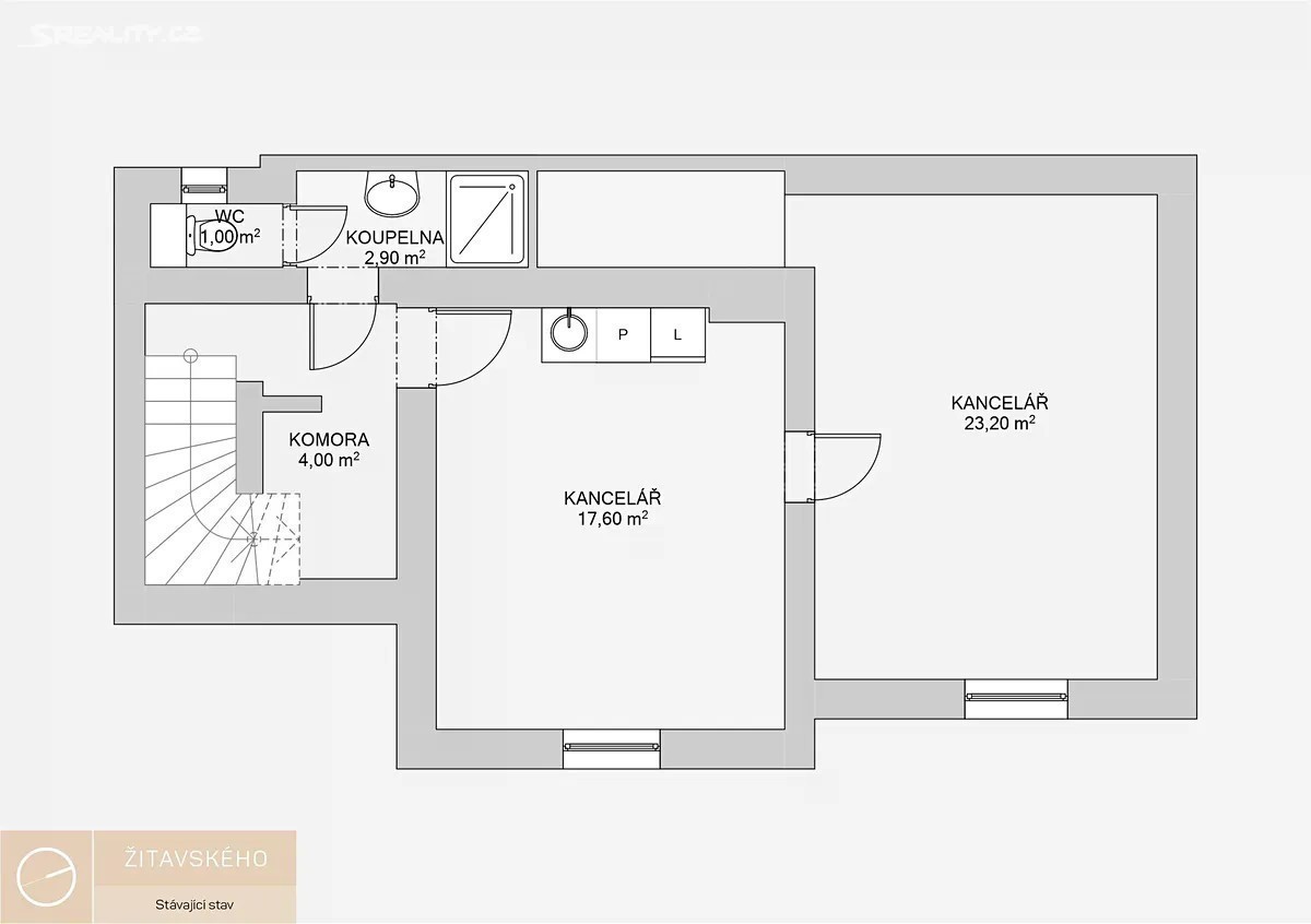 Nabízíme nebytový prostor v suterénu cihlové budovy v klidné lokalitě v ulici Žitavského, Praha - Zbraslav. Prostor o velikosti 48 m² se nachází je v současné době využíván jako kancelář. Disponuje dvěma místnostmi, kdy v jedné je umístěna kuchyně, dále předsíní a koupelnou se sprchou a toaletou. Podlaha je tvořena dlažbou, vytápění je elektrické lokální. Vzhledem k dispozici lze užívat i k ubytování jako 2+KK. Součástí je podíl na pozemku s výhradním užíváním dvou parkovacích míst.
