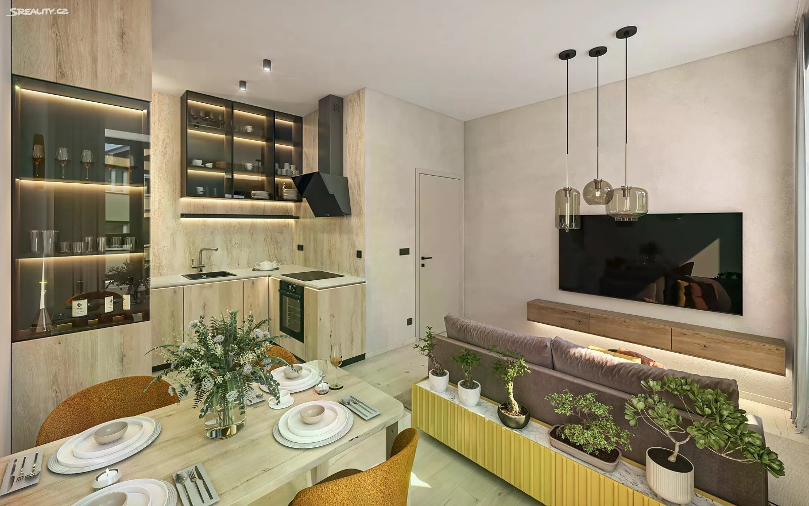 Dovolujeme si Vám nabídnout světlý moderní byt o dispozici 2+kk v developerském projektu Palác Tyršova v samotném srdci města Benešov. Jednotka se nachází v nejvyšším 5. NP budovy, orientovaná na východ do ul. Husova. Byt je světlý, vzdušný, celková podlahová plocha je 59,8m². Jedná se o kompletně nový byt, nové rozvody vody, kanalizace, vzduchotechniky, topení a elektřiny, je osazen zařizovacími předměty vyššího standardu (velkoformátová keramická dlažba a obklady, závěsné WC GEBERIT, design. umyvadlo Villeroy Boch a sprchový kout HUPPE v koupelně, dřevěné podlahy s dekorem přírodního dubu v obytných místnostech a velkorysá moderní okna s izolačními trojskly s decentním kováním. Příprava na kuchyň již zajištěna. Byt je právně vymezen prohlášením vlastníka budovy v katastru nemovitostí, lze rovnou uzavřít smlouvu budoucí kupní a např. čerpat i hypoteční úvěr, s kterým vám rádi pomůžeme. K bytu má budoucí majitel výlučné užívací právo na balkón o velikosti cca 6m2, který je orientován do klidného vnitrobloku na západ. Dále má budoucí vlastník bytu přiřazenou sklepní kóji (3,7m2) v 1.PP domu za sníženou cenu. PENB pro SP (2023) bylo v kategorii D. Dle harmonogramu míří projekt k dokončení na konec roku 2025 s následnou kolaudací 1/2026 a předáním bytů novým majitelům. Ozvěte se na uvedených kontaktech, podívejte se na web projektu Palác Tyršova a domluvte si s námi schůzku.