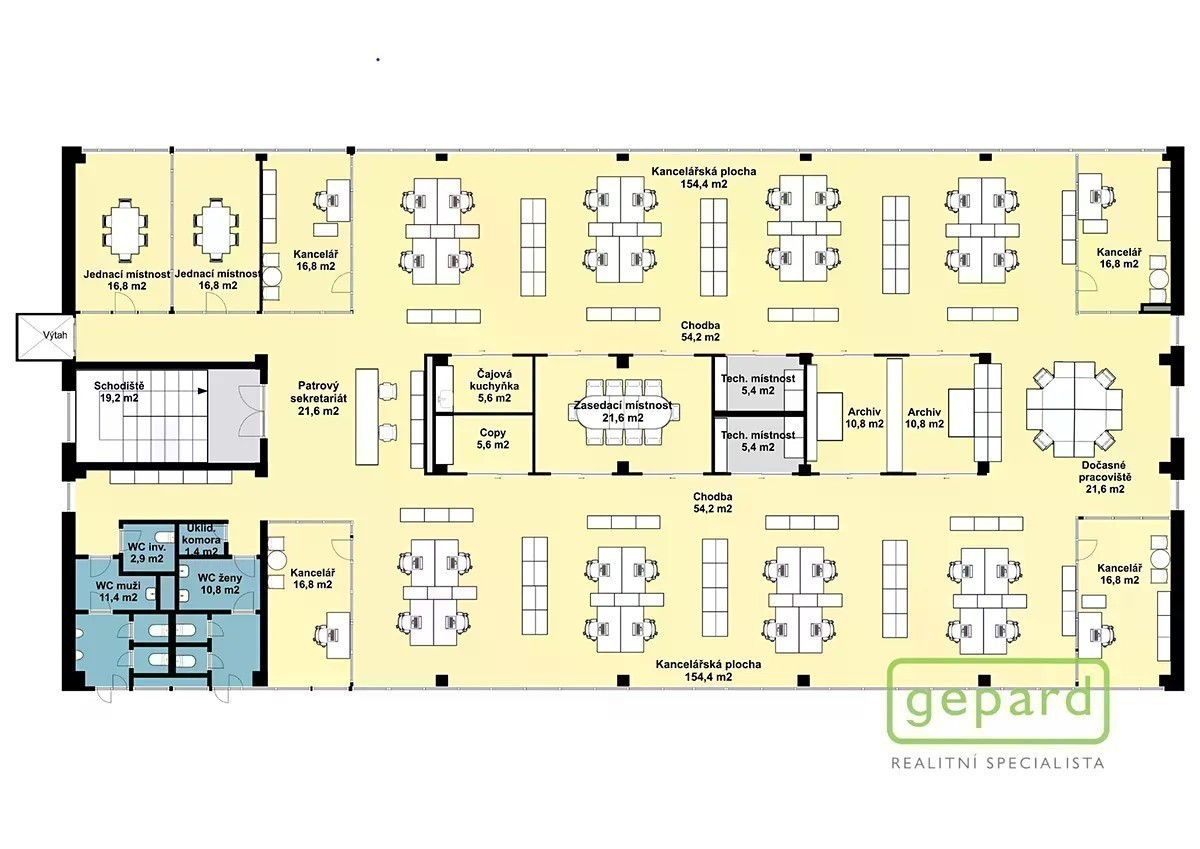Společnost Gepard Reality Vám nabízí k dlouhodobému pronájmu kancelářský prostor nacházející se v komplexu ENERGIE v klidné lokalitě u Plzeňské ulice v městské části Praha 5 - Motol. Nabízený prostor o rozloze 653 m2 zaujímá 2. nadzemní podlaží jedné z hlavních budov komplexu. Dispozice kanceláří je uvedena v přiloženém půdorysu. Jsou zde uzavřené kanceláře, jednací místnosti i otevřený prostor, vybavení je znázorněno na fotografiích. Součástí nabídky je 5 parkovacích míst v areálu, další místa lze domluvit za příplatek. Recepce je v provozu 24 hodin. V komplexu je možné využít konferenční sál (kapacita až 150 míst) a služby restaurace (kapacita až 114 míst) a také služby hotelu. Odhad provozních nákladů: 12.000,- Kč vytápění, 1.000,- Kč spotřeba vody na každých 10 osob, vlastní spotřeba elektřiny. Vratná kauce je stanovena ve výši dvou měsíčních nájmů. Nájemce nehradí provizi. Lokalita poskytuje velmi dobré dopravní spojení. Zastávky MHD jsou vzdálené 8 minut pěšky od komplexu. Autobus na metro linky A Nemocnice Motol jede 2 minuty. Dálnice D5 a rychlostní silnice R6 jsou dostupné do 10 minut. Dojezd na letiště je 15 minut. V sousedství komplexu ENERGIE se nachází Zámek Motol, koupaliště Motol a Přírodní park Košíře - Motol. V případě zájmu je možné pronajmout pouze část prostoru: 213m2, 132m2 nebo 98m2 a společné zázemí. Majitel si vyhrazuje právo vybrat nájemce na základě jím zvolených kritérií. Pro více informací či domluvení termínu prohlídky mne, prosím, kontaktujte.