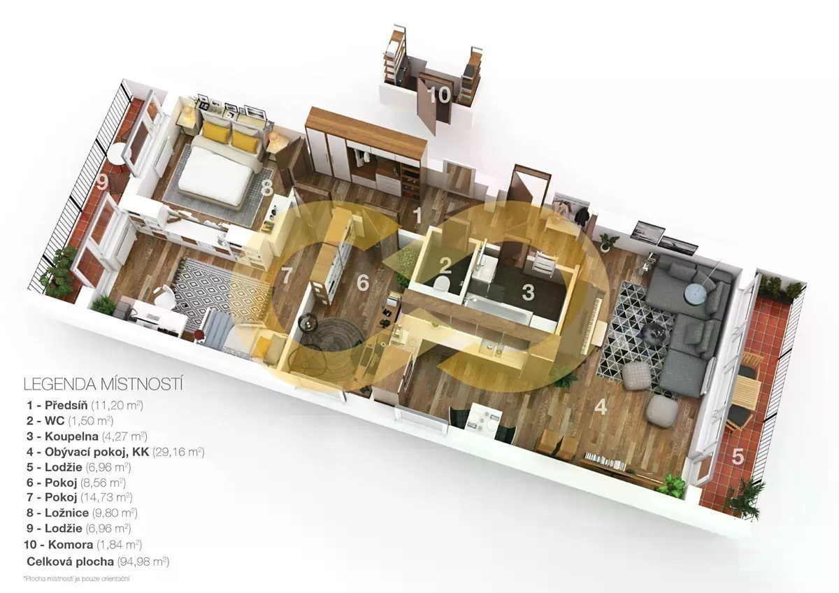 Káva s ranním sluncem na východní lodžii, večer sklenka a chill na té západní. K tomu tři ložnice a obývák plný světla. Hledáte moderní bydlení v jednom z nejlepších měst pro život? Přijďte se podívat na tenhle byt do Brandýsa nad Labem. Byt má dispozici 4+kk a celkovou výměru 94 m². Je tu velký obývací pokoj s kuchyní, tři pokoje, koupelna, oddělené WC a na chodbě komora. A to nejlepší? Dvě velké zasklené lodžie. Obývací pokoj díky velkým oknům přes celou stěnu doslova přetéká světlem. Projdete z něj na první ze dvou zasklených lodžií, která vám rozšíří obytný prostor o parádní relax koutek. Kuchyně s moderní linkou je prakticky schovaná za rohem, takže při večerním posezení v obýváku vás nebude rušit výhled na špinavé nádobí. V bytě jsou celkem tři pokoje - ať už máte velkou rodinu nebo pracujete z domu, tady budete mít dost místa na relax i práci. Největší z pokojů má navíc vstup na vlastní lodžii, ze které bude parádní zašívárna. Koupelna má vanu a toaleta je samostatná. Celý byt propojuje velká chodba a na patře je komora, kam uložíte všechno, co nechcete mít stále na očích. Byt se nachází v nejvyšším patře udržovaného panelového domu, takže vám nad hlavou nebude nikdo dupat. Žádné tahání nákupů po schodech vás ale nečeká - dům má nový výtah. Technické parametry: Byt prošel před 5 lety nákladnou kompletní rekonstrukcí - jsou tu nové rozvody, sádrokartonové podhledy a omítky, zděné jádro, nové plovoucí podlahy, zárubně a okna. Vytápění je centrální a přípojka na plyn před bytem. Byt je v osobním vlastnictví. Prodávající si vyhrazuje právo vybrat kupujícího na základě jím zvolených kritérií.