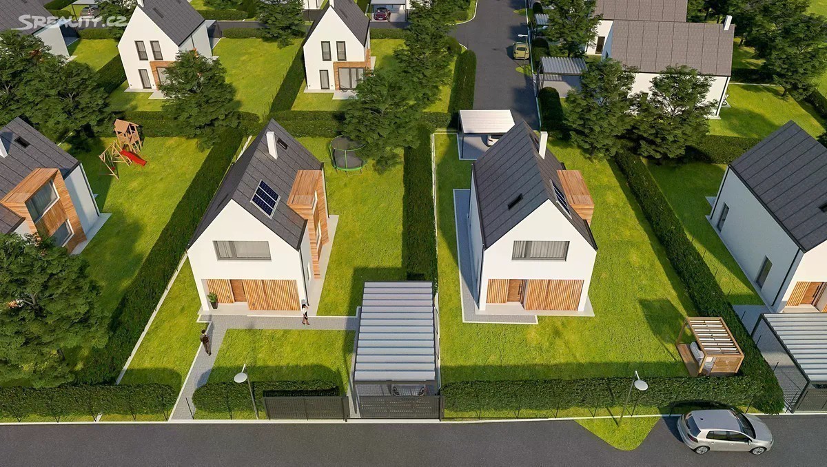 DŮM 5+1 Prodej rodinného domu na pozemku o ploše 615m2 v lukrativní lokalitě Praha 10 - Nedvězí u Říčan, zavedena PID doprava. Energeticky úsporný dům (PENB „B“) je vybaven tepelným čerpadlem s podlahovým vytápěním, rekuperací vzduchu, solárními panely a přípravou na krb. Dům je o velikosti 5+1 s přístřeškem pro parkování 2 aut. Lokalita přímo sousedí s přírodní rezervací Rokytka s řadou turistických a cyklistických tras. Nabízíme Vám tak možnost moderního, úsporného a útulného bydlení v prostředí těsně spjatém s přírodou. Cesta do centra Prahy Vám autem nezabere více jak 20 minut. Za 8 minut jste na dálnici D1. Pražská městská hromadná doprava je rovněž zavedena 50m od domu. Na metro Háje jezdí autobus (konkrétně linka č. 227). Veškeré služby, supermarkety, školy, školky, poštu i restaurace naleznete v sousedících Říčanech. 2. ETAPA zahrnuje prodej domů C1-C3 a A1. Pro více informací nás neváhejte kontaktovat. Možno řešit hypotékou, úvěrem, nebo v hotovosti. Přímý prodej developera.