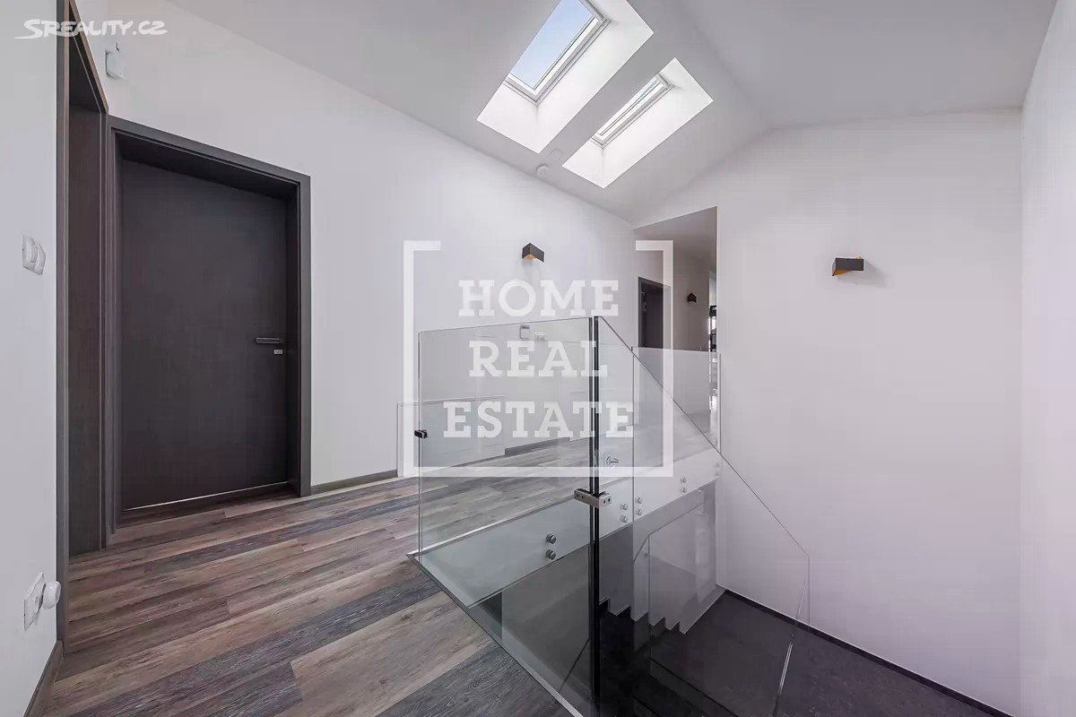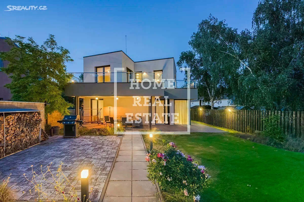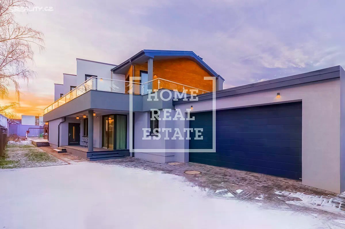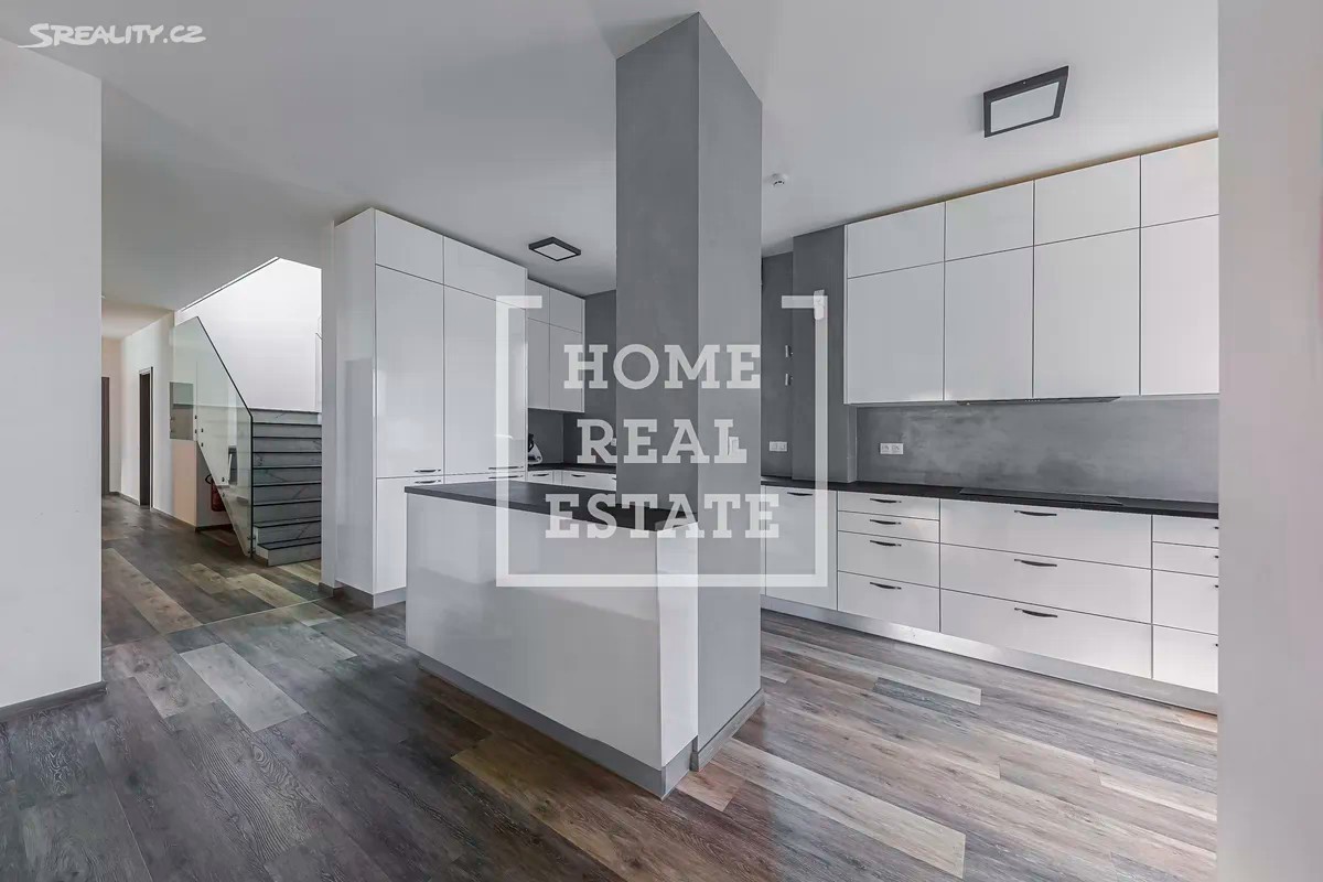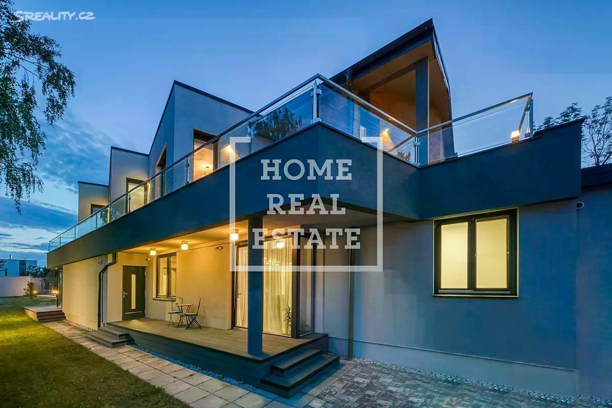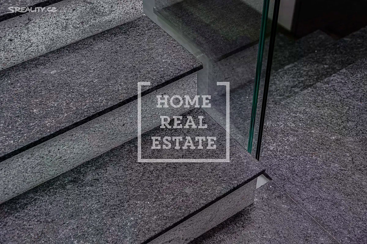 Společnost Home Real Estate exkluzivně nabízí k prodeji samostatný rodinný dům o dispozici 9+kk s užitnou plochou 347 m2, který se nachází na pozemku o rozloze 1068 m2. Tento luxusní dům kombinuje moderní design, prvotřídní technologie a klidné prostředí, přičemž byl navržen s důrazem na komfort a harmonii dle principů feng shui. Dům je rozdělen na dvě podlaží s promyšleným uspořádáním, které poskytuje maximální komfort a funkčnost. Prostorný obývací pokoj s plynovým krbem renomované holandské značky KAL-FIRE je zónově oddělen od jídelny a designové kuchyně, která je vybavena nejmodernějšími spotřebiči a disponuje samostatnou suchou spižírnou. Toto řešení přináší vyšší komfort a klid, zejména pro větší rodiny. Z obývací části je přímý vstup na zastřešenou terasu, která je orientována do klidného vnitrobloku a nabízí ideální místo pro relaxaci. Hlavní ložnice disponuje vlastní šatnou a koupelnou, zatímco další tři velkorysé ložnice mají dostatek přirozeného světla, vlastní šatny, koupelny v nadstandardním provedení a terasy. Součástí domu je také pracovna s výhledem do zahrady, úklidová místnost, technická místnost a prostorná garáž pro dva vozy. Dominantním prvkem interiéru je elegantní schodiště s proskleným zábradlím, které umocňuje pocit vzdušnosti a moderního designu. Pozemek nabízí naprosté soukromí a široké možnosti relaxace. Upravená zahrada s automatickým zavlažovacím systémem poskytuje klidné zázemí pro odpočinek, zatímco zastřešená terasa je vybavena zónou pro grilování a praktickým skladovacím prostorem pro zahradní nábytek. Součástí pozemku je také dětské hřiště, které zajišťuje bezpečné hraní pro děti. Pro milovníky wellness je připravena samostatná moderní sauna se sprchou a relaxační klimatizovanou místností, která umožňuje regeneraci a odpočinek přímo v pohodlí domova. Dům je vybaven podlahovým vytápěním a klimatizací Toshiba. Dřevěná okna VEKRA s izolačním trojsklem, hliníkové bezpečnostní rolety s elektrickým pohonem na všech oknech, centrální systém ovládání domu a bezpečnostní systém s kamerovým dohledem přispívají k bezpečnosti i efektivnímu hospodaření s energií. Interiér je vybaven prémiovými materiály, včetně vinylových podlah s dodatečnou kročejovou izolací z korku, keramických obkladů Villeroy & Boch, sanity Grohe, Laufen Pro a Huppe a vnitřních designových bezfalcových dveří VEKRA se zvýšeným akustickým tlumením. O efektivní vytápění se stará plynový kondenzační kotel Vaillant, který se vyznačuje úsporným provozem. Garáž je vybavena tepelně izolovanými vraty Hörmann, která zajistí bezpečné a komfortní parkování. Dům byl zkolaudován v prosinci 2020 a je postaven z kvalitního obvodového zdiva Porotherm (36,5 cm) s mezipokojovými příčkami 14 cm AKU, což zajišťuje výborné akustické vlastnosti a tepelnou izolaci. Energetickou úspornost domu výrazně zlepšuje zateplovací systém ISOVER Twinner. Veškeré terasy a balkony jsou vyrobeny z bezúdržbového dřevoplastového prkna.