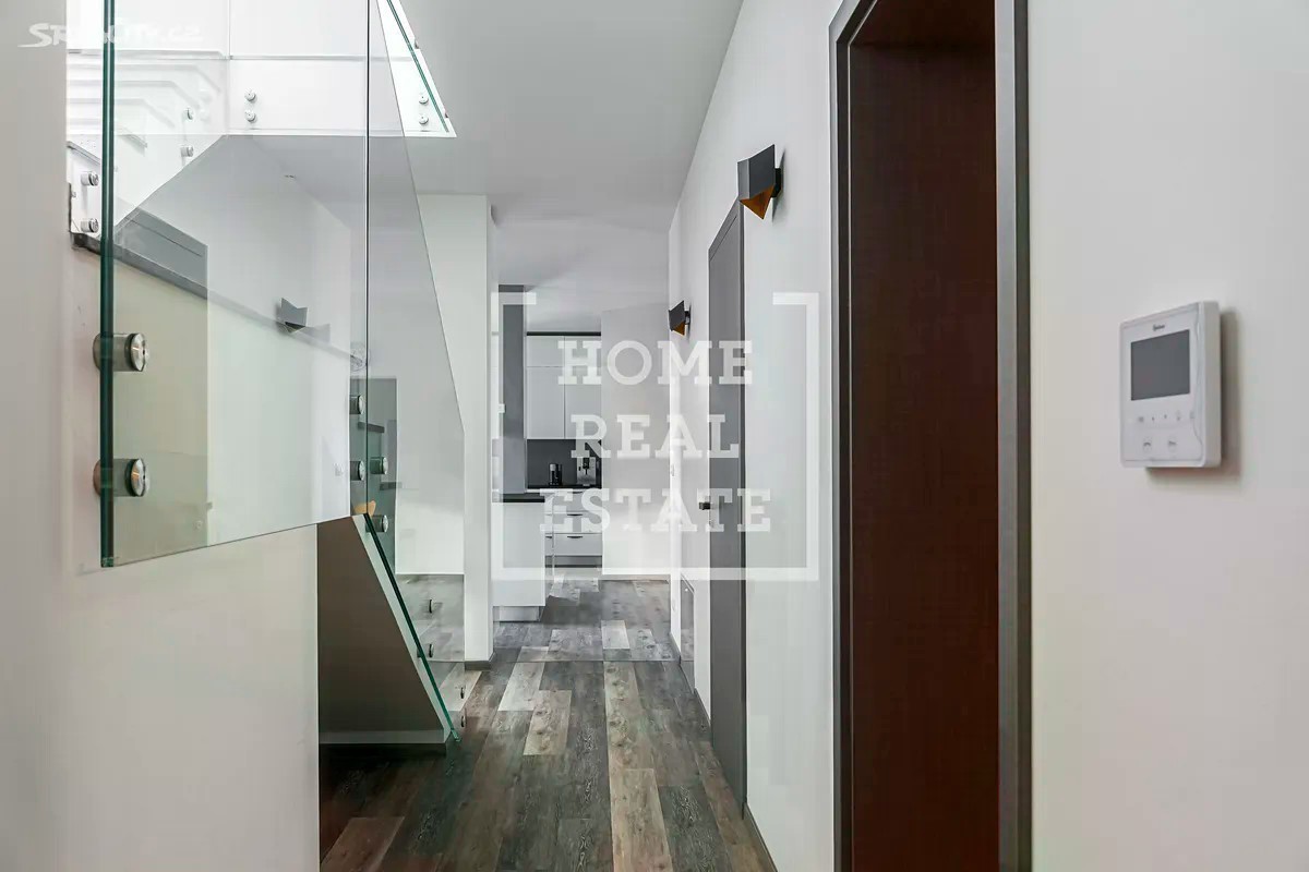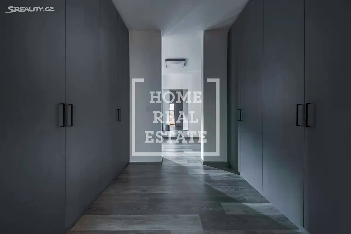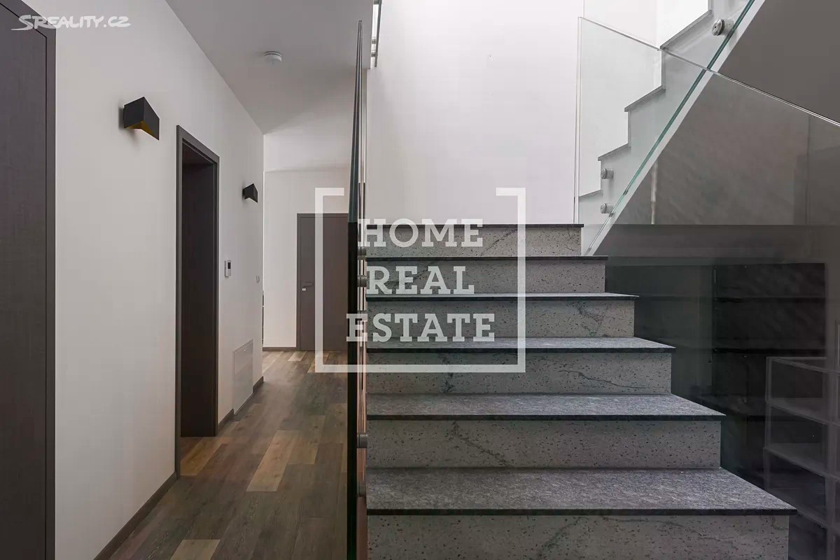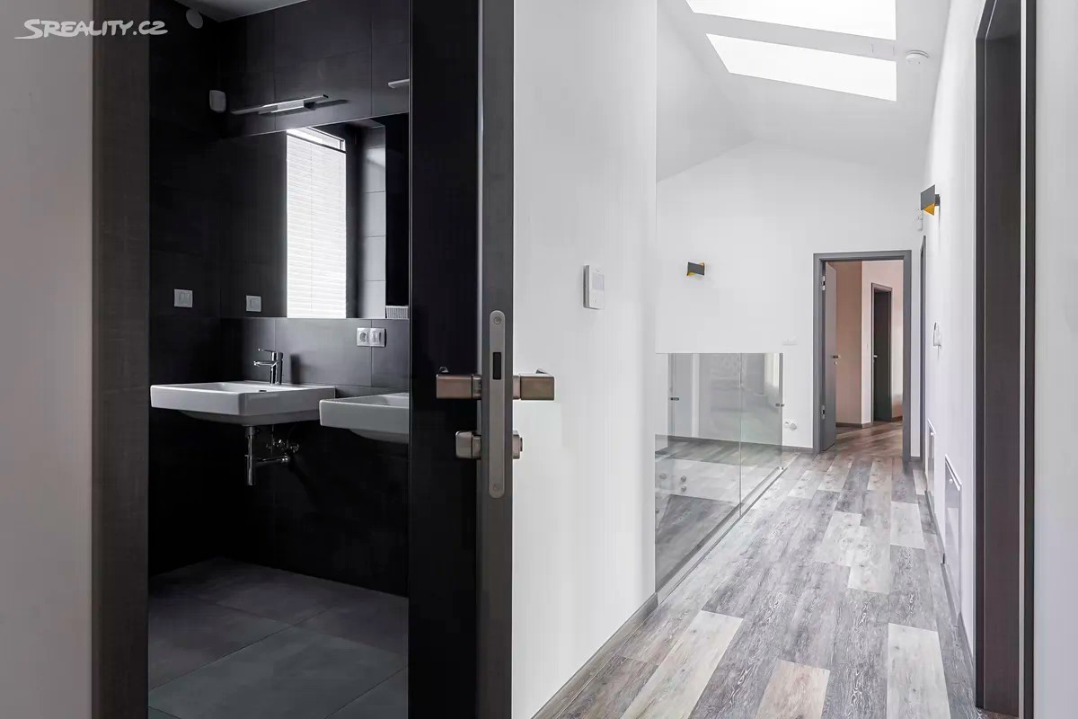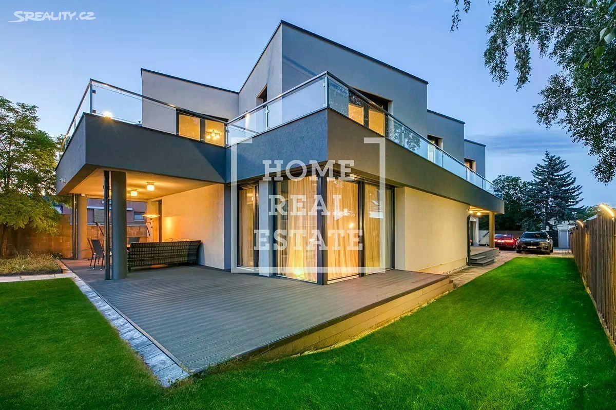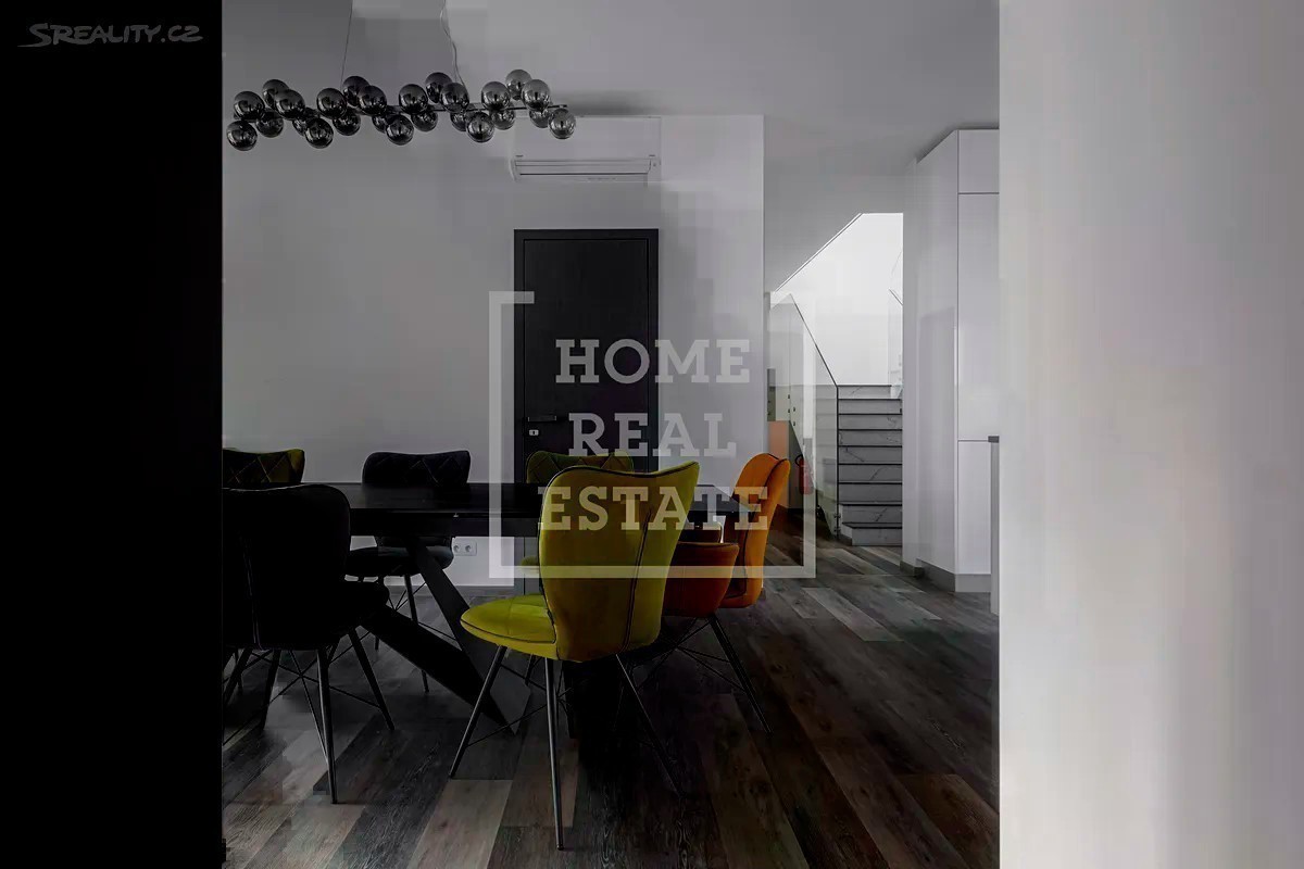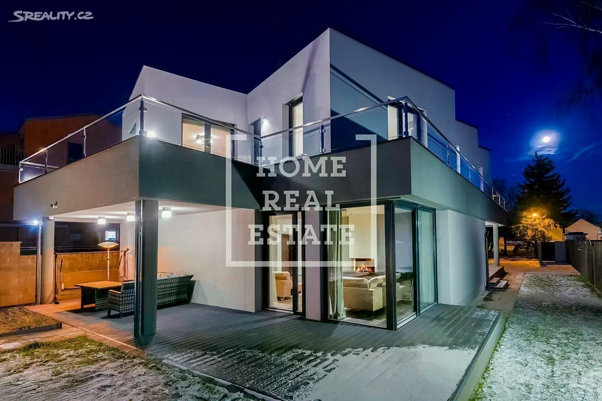 Společnost Home Real Estate exkluzivně nabízí k prodeji samostatný rodinný dům o dispozici 9+kk s užitnou plochou 347 m2, který se nachází na pozemku o rozloze 1068 m2. Tento luxusní dům kombinuje moderní design, prvotřídní technologie a klidné prostředí, přičemž byl navržen s důrazem na komfort a harmonii dle principů feng shui. Dům je rozdělen na dvě podlaží s promyšleným uspořádáním, které poskytuje maximální komfort a funkčnost. Prostorný obývací pokoj s plynovým krbem renomované holandské značky KAL-FIRE je zónově oddělen od jídelny a designové kuchyně, která je vybavena nejmodernějšími spotřebiči a disponuje samostatnou suchou spižírnou. Toto řešení přináší vyšší komfort a klid, zejména pro větší rodiny. Z obývací části je přímý vstup na zastřešenou terasu, která je orientována do klidného vnitrobloku a nabízí ideální místo pro relaxaci. Hlavní ložnice disponuje vlastní šatnou a koupelnou, zatímco další tři velkorysé ložnice mají dostatek přirozeného světla, vlastní šatny, koupelny v nadstandardním provedení a terasy. Součástí domu je také pracovna s výhledem do zahrady, úklidová místnost, technická místnost a prostorná garáž pro dva vozy. Dominantním prvkem interiéru je elegantní schodiště s proskleným zábradlím, které umocňuje pocit vzdušnosti a moderního designu. Pozemek nabízí naprosté soukromí a široké možnosti relaxace. Upravená zahrada s automatickým zavlažovacím systémem poskytuje klidné zázemí pro odpočinek, zatímco zastřešená terasa je vybavena zónou pro grilování a praktickým skladovacím prostorem pro zahradní nábytek. Součástí pozemku je také dětské hřiště, které zajišťuje bezpečné hraní pro děti. Pro milovníky wellness je připravena samostatná moderní sauna se sprchou a relaxační klimatizovanou místností, která umožňuje regeneraci a odpočinek přímo v pohodlí domova. Dům je vybaven podlahovým vytápěním a klimatizací Toshiba. Dřevěná okna VEKRA s izolačním trojsklem, hliníkové bezpečnostní rolety s elektrickým pohonem na všech oknech, centrální systém ovládání domu a bezpečnostní systém s kamerovým dohledem přispívají k bezpečnosti i efektivnímu hospodaření s energií. Interiér je vybaven prémiovými materiály, včetně vinylových podlah s dodatečnou kročejovou izolací z korku, keramických obkladů Villeroy & Boch, sanity Grohe, Laufen Pro a Huppe a vnitřních designových bezfalcových dveří VEKRA se zvýšeným akustickým tlumením. O efektivní vytápění se stará plynový kondenzační kotel Vaillant, který se vyznačuje úsporným provozem. Garáž je vybavena tepelně izolovanými vraty Hörmann, která zajistí bezpečné a komfortní parkování. Dům byl zkolaudován v prosinci 2020 a je postaven z kvalitního obvodového zdiva Porotherm (36,5 cm) s mezipokojovými příčkami 14 cm AKU, což zajišťuje výborné akustické vlastnosti a tepelnou izolaci. Energetickou úspornost domu výrazně zlepšuje zateplovací systém ISOVER Twinner. Veškeré terasy a balkony jsou vyrobeny z bezúdržbového dřevoplastového prkna.