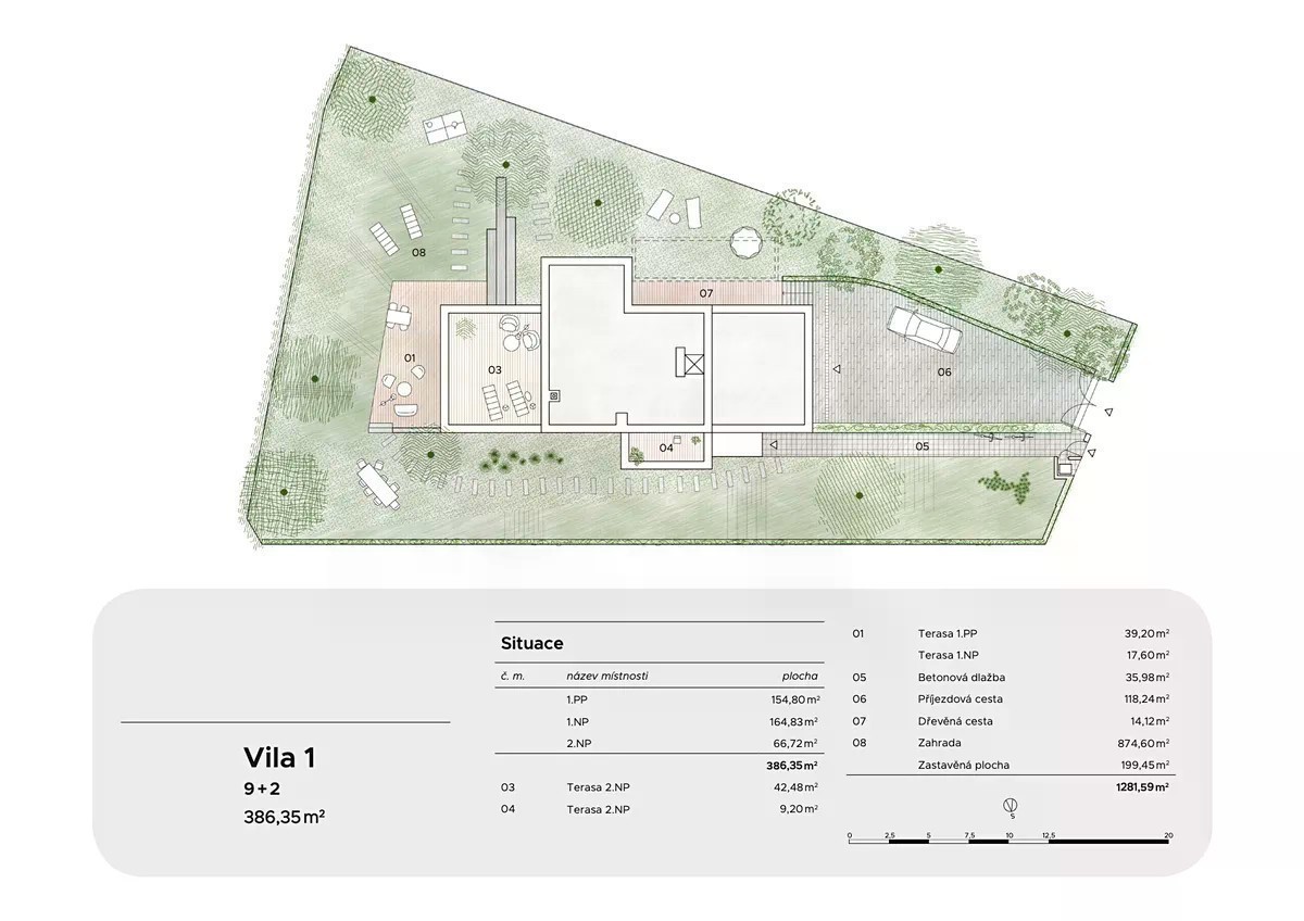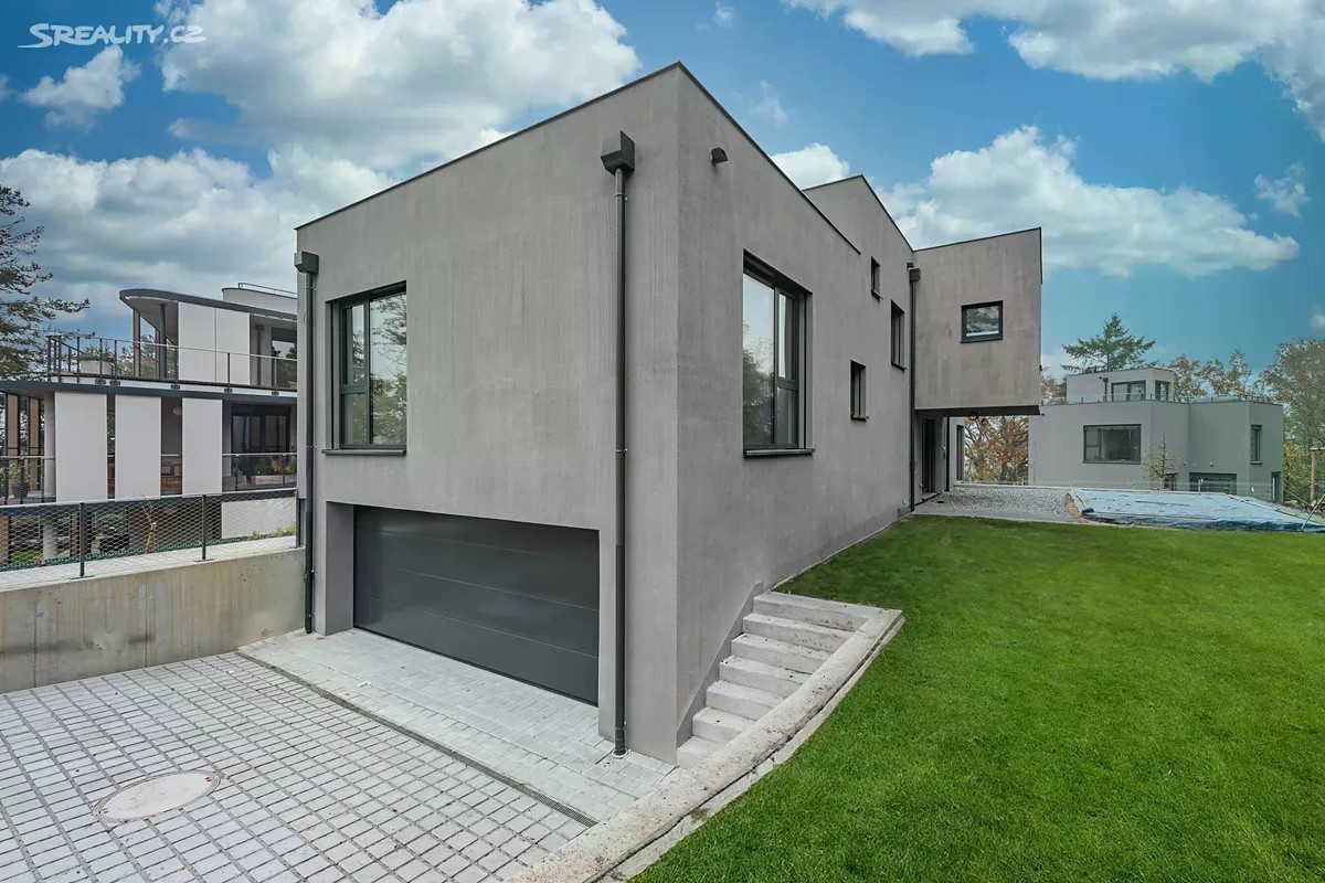 Exkluzivní poslední vila k prodeji v prestižním projektu Na Hvězdárně. Velkoryse navržená nová vila se zahradou, vířivkou, saunou a nerezovým bazénem je součástí špičkového projektu Na Hvězdárně, jehož exkluzivitu umocňuje výjimečná lokalita v oblíbené pražské čtvrti Velká Chuchle. Tato nadčasová vila o jednom podzemním a dvou nadzemních podlažích s dispozicí 7+kk je architektonickým skvostem. Unikátně zasazená do členité zahrady nabízí dokonalé soukromí, velkorysé prostory a maximální kvalitu všech použitých prvků a materiálů. Vila je dokončená ve stavu shell&core. Dokončení nezahrnuje interiérové dveře, podlahy, vybavení koupelen a dřevěné prvky. Součástí vily je prostorná garáž, terasy s celkovou plochou 98 m2, nerezový venkovní bazén a vířivka. Obytná část prvního podzemního podlaží je propojena s garáží a tvoří ji ateliér s kuchyňským koutem a vstupem na terasu, ložnice rovnež propojena s terasou a en-suite koupelnou, šatna, dvě komory, samostatná toaleta a chodba se schodištěm. Na vstupní úrovni se nachází otevřený prostorný obývací prostor s kuchyní, jídelním prostorem a terasou s nerezovým bazénem Inox, dále 2 ložnice, koupelna, toaleta, technická místnost, zádveří a chodba se schodištěm. Schodiště dále pokračuje do druhého podlaží, které tvoří hlavní ložnice s šatnou a terasou vybavenou vířivkou Villeroy&Boch, koupelna, dětská ložnice s druhou koupelnou a chodba. Tento jedinečný dům se nachází v klidné pražské části Velká Chuchle. Klid a soukromí se zde kombinuje s výbornou dostupností centra města autem, městskou hromadnou dopravou i vlakem ze stanice Praha-Velká Chuchle. Okolí disponuje plnou občanskou vybaveností, nachází se zde mateřská i základní škola, zdravotnická zařízení, pošta, úřady a řada obchodů a restaurací. V okolí jsou široké možnosti pro sportovní a volnočasové aktivity. Vila leží nad chuchelským závodištěm, nedaleko je pražský Ski Park a v okolí se rozprostírá řada přírodních rezervací s turistickými stezkami, ideálními pro procházky nebo cyklistiku. Uvedená prodejní cena je uvedena bez DPH ve výši 21%.