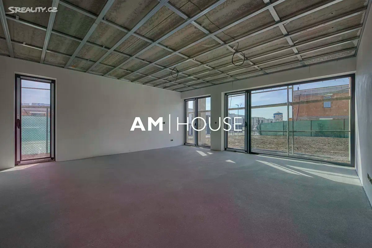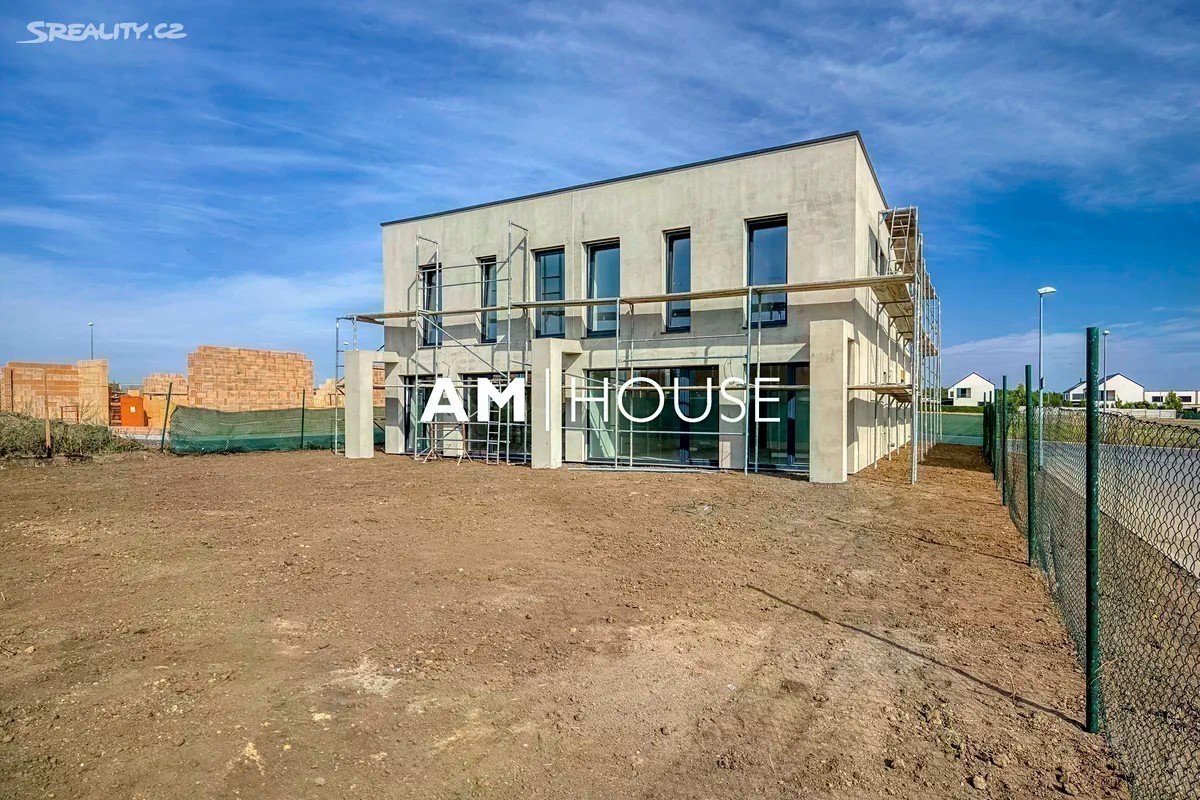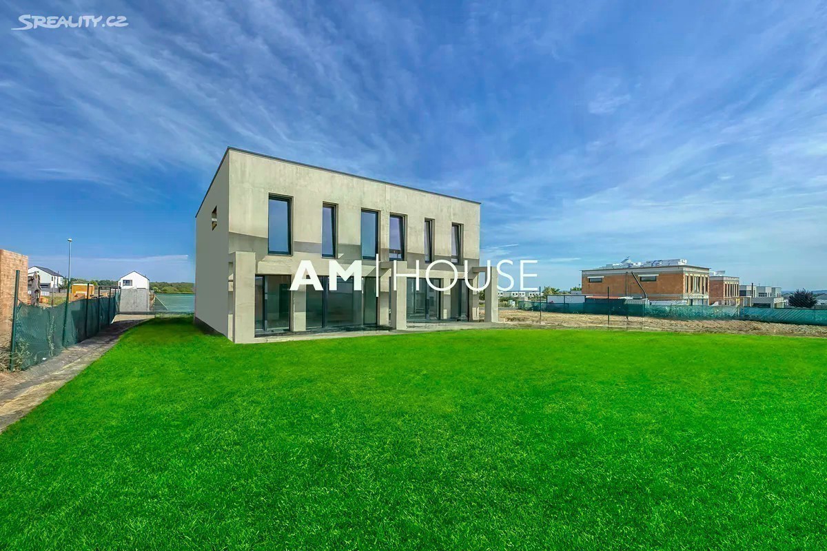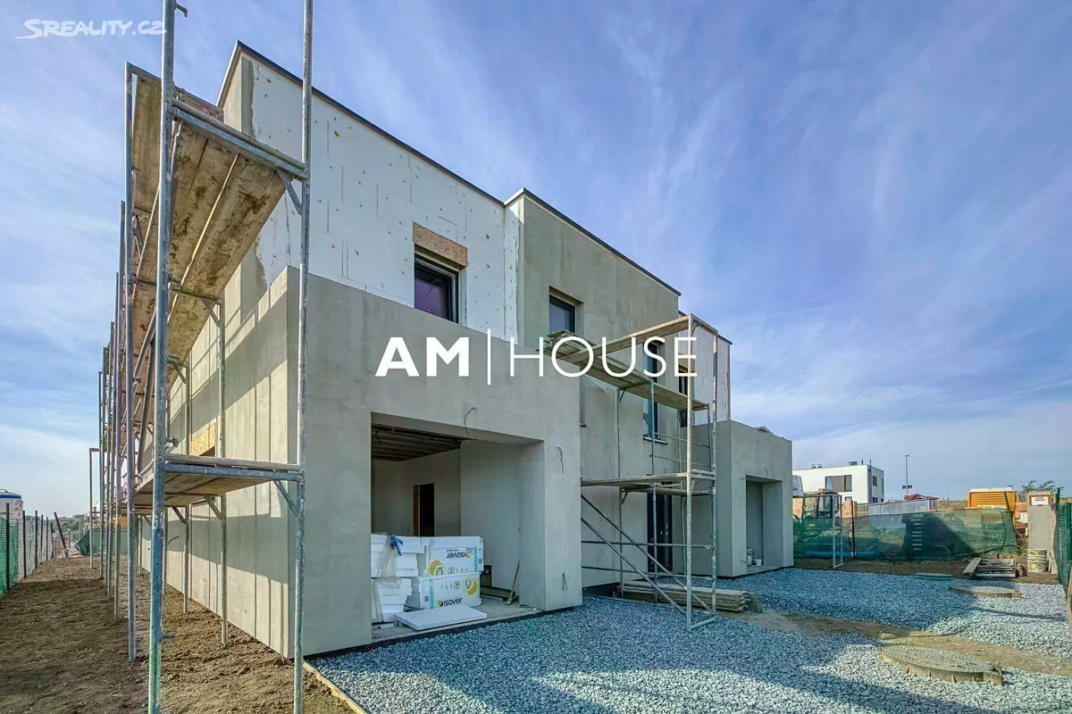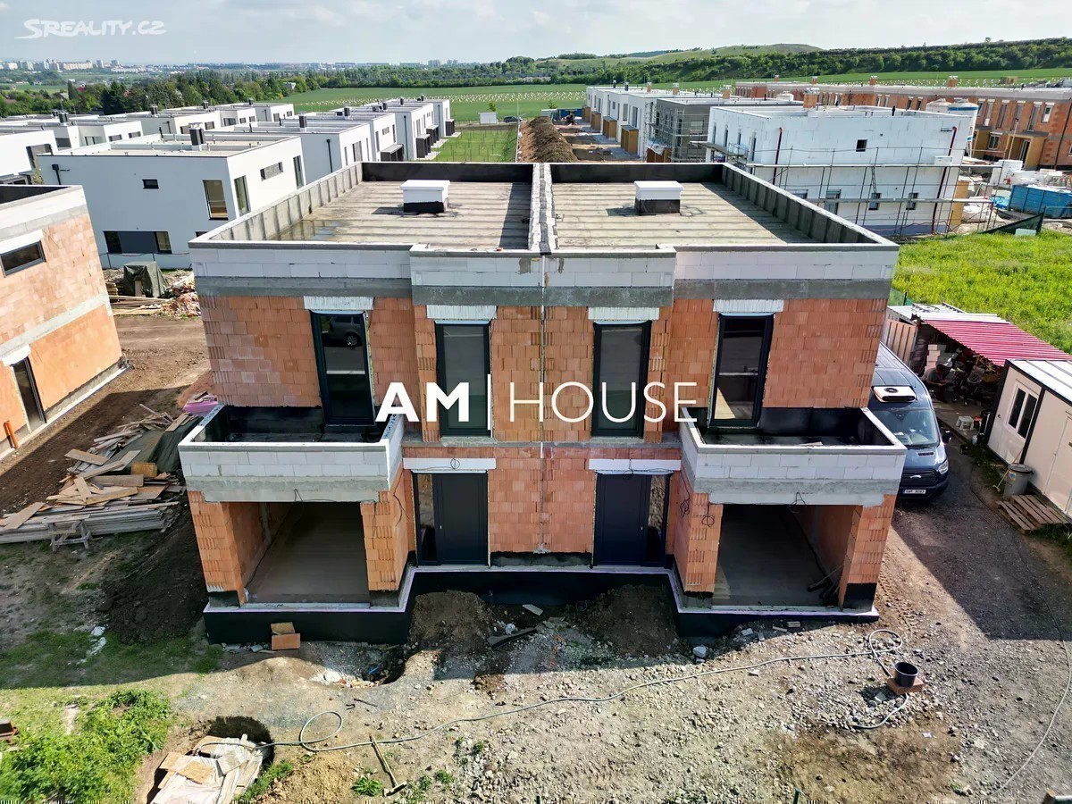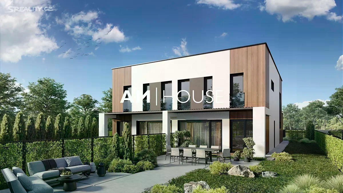 Společnost „Am House“ si dovoluje nabídnout k prodeji rodinný dům 4+kk o celkové ploše 153,5 m2, na unikátním pozemku 383 m2, který se nachází v Praha-Březiněves. Předmětem prodeje je polovina dvojdomu. Každý dům má garáž a 2x venkovní parkovací stání. V přízemí za vstupem do domu je prostorná chodba (8,6 m2), dále je zde koupelna se sprchovým koutem a s WC, z chodby vejdete do velkorysého obývacího pokoje s přípravou pro kuchyňský kout o velikosti 32,87 m2. Z obývacího pokoje a kuchyně dostanete do zahrady. Ve 2NP domu je větší ložnice o rozměru 17,44 m2 s vlastní koupelnou se sprchovým koutem a s WC, a další 2 pokoje 13 a 15 m2. Současně jsou koupelna s WC a technická místnost. V ceně domu je plynový kotel s podlahovým vytápěním, Izolační trojskla, vstupní a interiérové dveře, zařizovací předměty koupelen, dlažby, obklady a podlahy všech místností. Z inženýrských sítí je připojen obecní vodovod, kanalizace a elektřina. V obci je základní občanská vybavenost - MŠ, restaurace, nákupní centrum, koupaliště, sportoviště. Ostatní vybavenost je ve 3 km vzdálených Ďáblicích. V nedalekých Letňanech, vzdálených pouhých 5 minut jízdy, se pak nachází OC Letňany, multikino, sportovní areál se zimní halou a aquacentrem a také stanice metra C. Ještě blíž jsou pak možnosti nakupování v Globusu Čakovice. Pro cestu do centra metropole lze využít také nedaleké stanice metra Ládví, Střížkov nebo Letňany. Veškeré vizualizace jsou pouze ilustrativní a nemusí v detailu odpovídat skutečné realizaci projektu a jeho okolí. Pro více informací ohledně nemovitostí nebo domluvení prohlídky domu nás neváhejte kontaktovat. Rádi se Vám budeme věnovat.