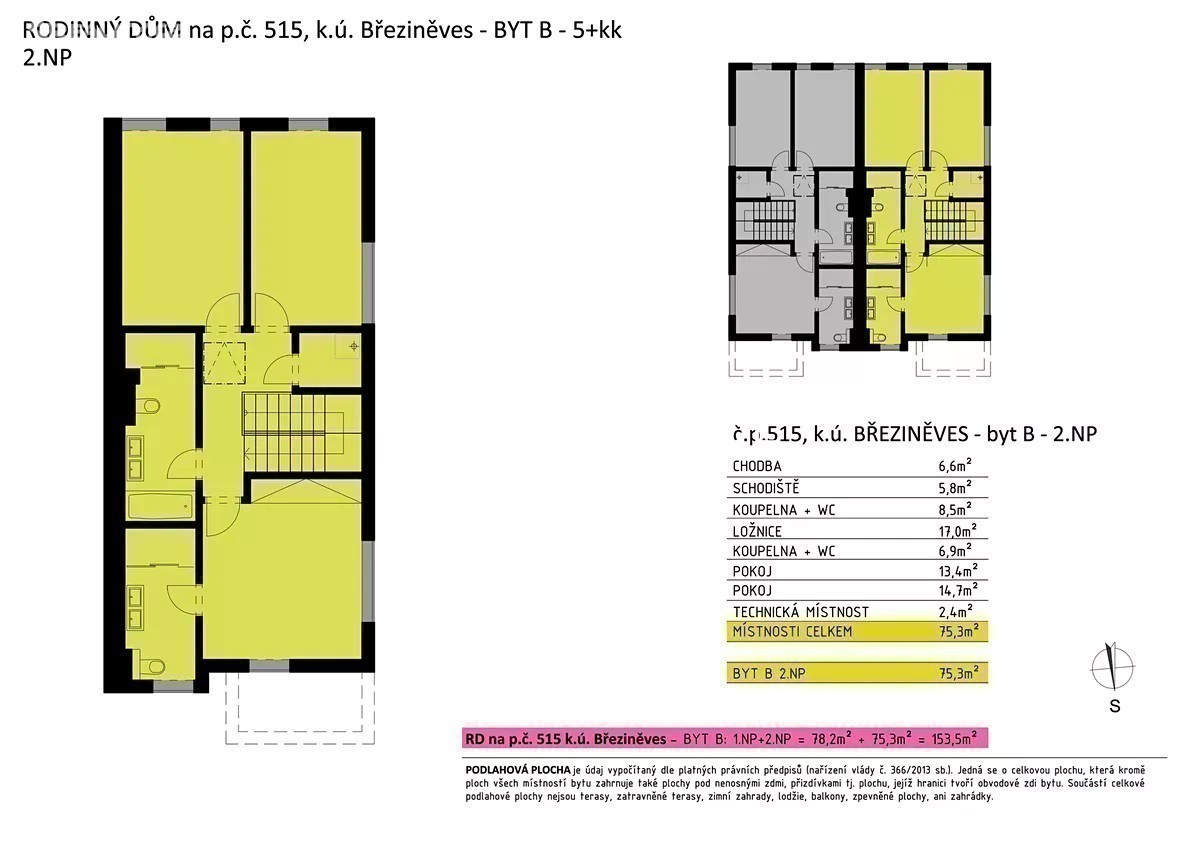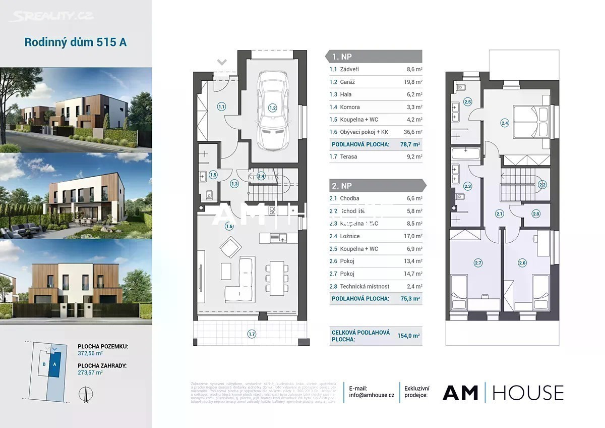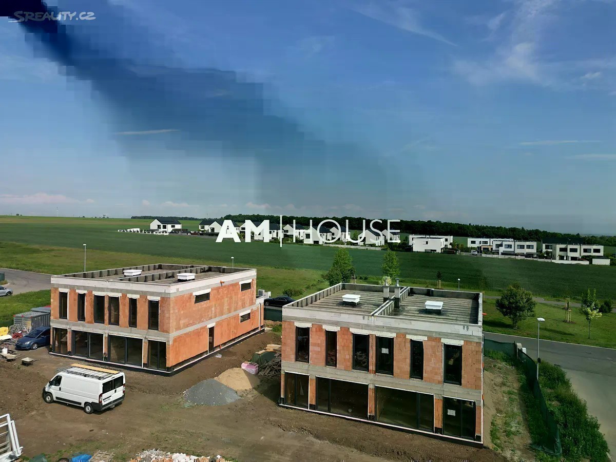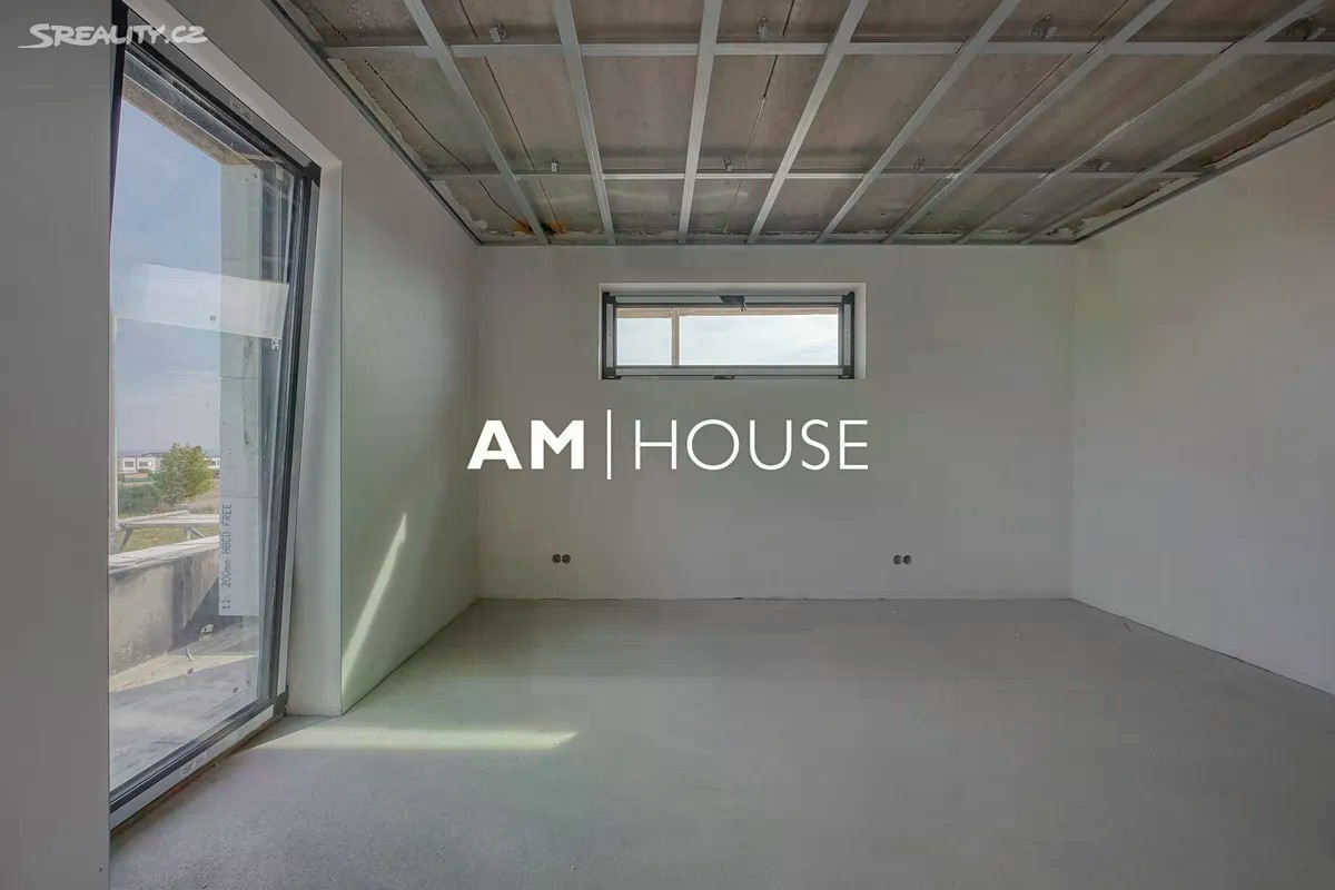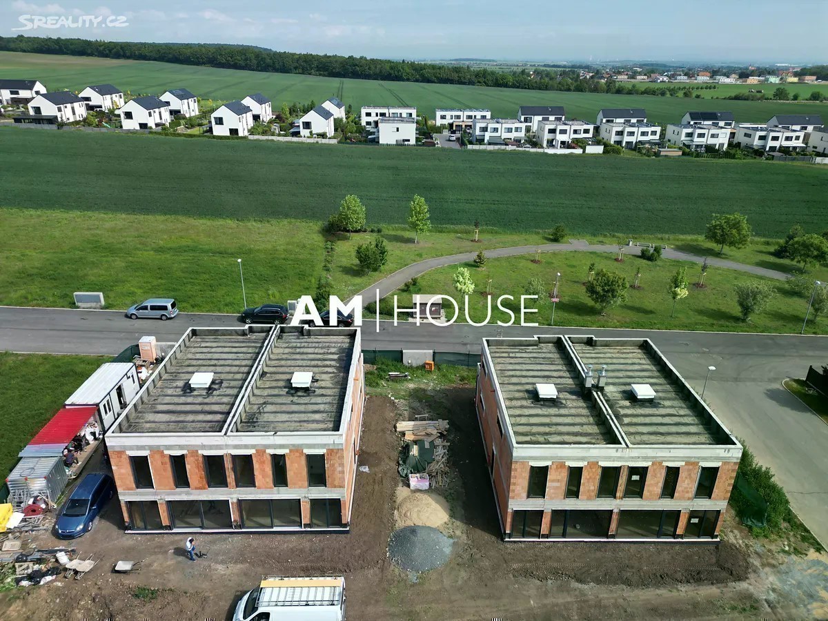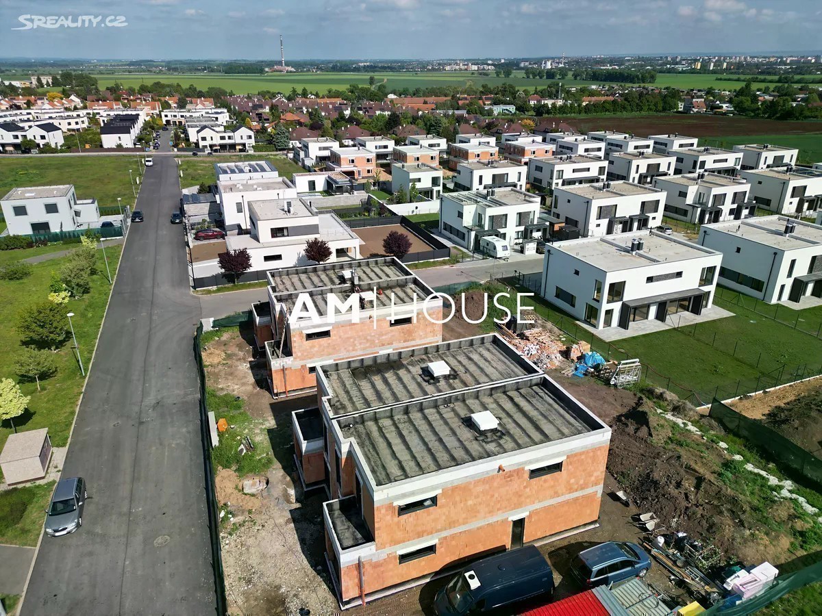 Společnost „Am House“ si dovoluje nabídnout k prodeji rodinný dům 4+kk o celkové ploše 153,5 m2, na unikátním pozemku 383 m2, který se nachází v Praha-Březiněves. Předmětem prodeje je polovina dvojdomu. Každý dům má garáž a 2x venkovní parkovací stání. V přízemí za vstupem do domu je prostorná chodba (8,6 m2), dále je zde koupelna se sprchovým koutem a s WC, z chodby vejdete do velkorysého obývacího pokoje s přípravou pro kuchyňský kout o velikosti 32,87 m2. Z obývacího pokoje a kuchyně dostanete do zahrady. Ve 2NP domu je větší ložnice o rozměru 17,44 m2 s vlastní koupelnou se sprchovým koutem a s WC, a další 2 pokoje 13 a 15 m2. Současně jsou koupelna s WC a technická místnost. V ceně domu je plynový kotel s podlahovým vytápěním, Izolační trojskla, vstupní a interiérové dveře, zařizovací předměty koupelen, dlažby, obklady a podlahy všech místností. Z inženýrských sítí je připojen obecní vodovod, kanalizace a elektřina. V obci je základní občanská vybavenost - MŠ, restaurace, nákupní centrum, koupaliště, sportoviště. Ostatní vybavenost je ve 3 km vzdálených Ďáblicích. V nedalekých Letňanech, vzdálených pouhých 5 minut jízdy, se pak nachází OC Letňany, multikino, sportovní areál se zimní halou a aquacentrem a také stanice metra C. Ještě blíž jsou pak možnosti nakupování v Globusu Čakovice. Pro cestu do centra metropole lze využít také nedaleké stanice metra Ládví, Střížkov nebo Letňany. Veškeré vizualizace jsou pouze ilustrativní a nemusí v detailu odpovídat skutečné realizaci projektu a jeho okolí. Pro více informací ohledně nemovitostí nebo domluvení prohlídky domu nás neváhejte kontaktovat. Rádi se Vám budeme věnovat.