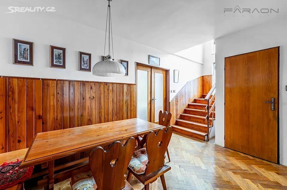 REZERVACE. Prodej krajního řadového rodinného domu 5+1+kk v mimořádně žádané a lukrativní lokalitě na Praze 6 - Dejvice (Baba) o celkové užitné ploše 247 m2 a pozemku 461 m2 s příjemnou rezidenční atmosférou, množstvím zeleně a skvělou dopravní dostupností. Třípatrový krajní řadový dům je obklopen ze dvou stran zahradou a je z něj vstup do garáže přímo navazující na rodinný dům, vhodnou úpravou je možné dům využívat i jako vícegenerační. Dispozice rodinného domu zahrnuje tři podlaží, která jsou propojena samostatným schodištěm. Přízemní prostor (113 m2) tvoří velký obývací pokoj s přímým vstupem na terasu a zahradu, pracovna, garáž, kotelna, chodba, 3x sklep, koupelna s toaletou. 1.podlaží (66 m2), ve kterém je hlavní vchod do domu, zahrnuje prostor obývacího pokoje, kuchyň, chodbu, komoru, prádelnu, toaletu. 2.podlaží (68 m2) - dvě ložnice, obývací pokoj s kuchyňským koutem a jídelnou, chodba, koupelna, toaleta, zasklená lodžie. Rodinný dům je součástí atraktivní a žádané vilové čtvrti v Praze na Babě jen pár kroků od krásné přírodní rezervace Divoká Šárka. Rezidenční lokalita s kompletními službami na dosah ruky nabízí nespočet příležitostí zejména sportovních, rekreačních a společenských (v blízkosti několik mateřských a základních škol, supermarket, restaurace), stejně jako výbornou dopravní obslužnost a dostupnost do centra města. V blízké pěší dostupnosti se nachází barokní kostel svatého Matěje. pozemek 461 m2, zastavěná plocha 89 m2, užitná plocha domu 200 m2, terasa a lodžie 22 m2, garáž 25 m2. Energetická náročnost budovy: G (nebyla sdělena vlastníkem nemovitosti)