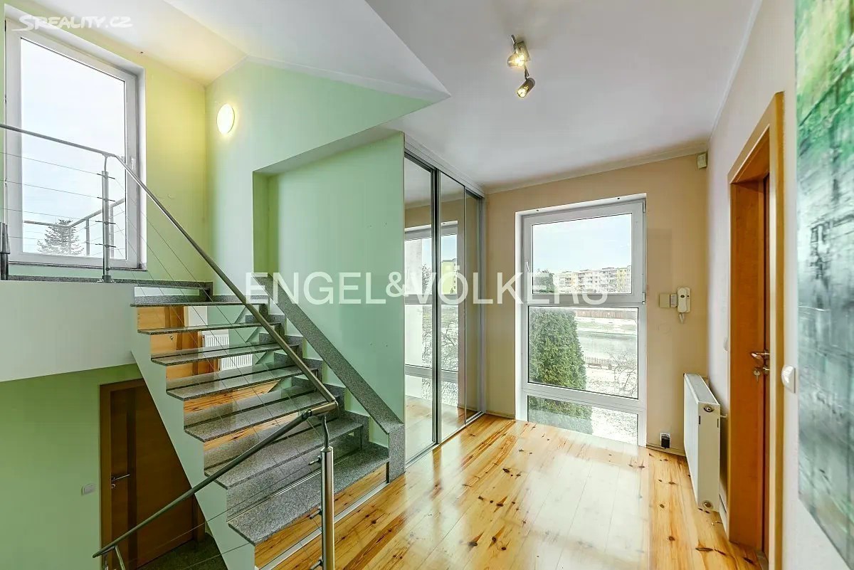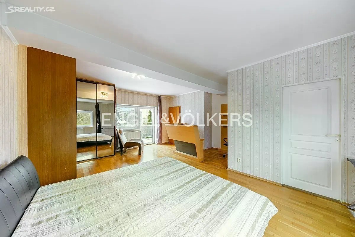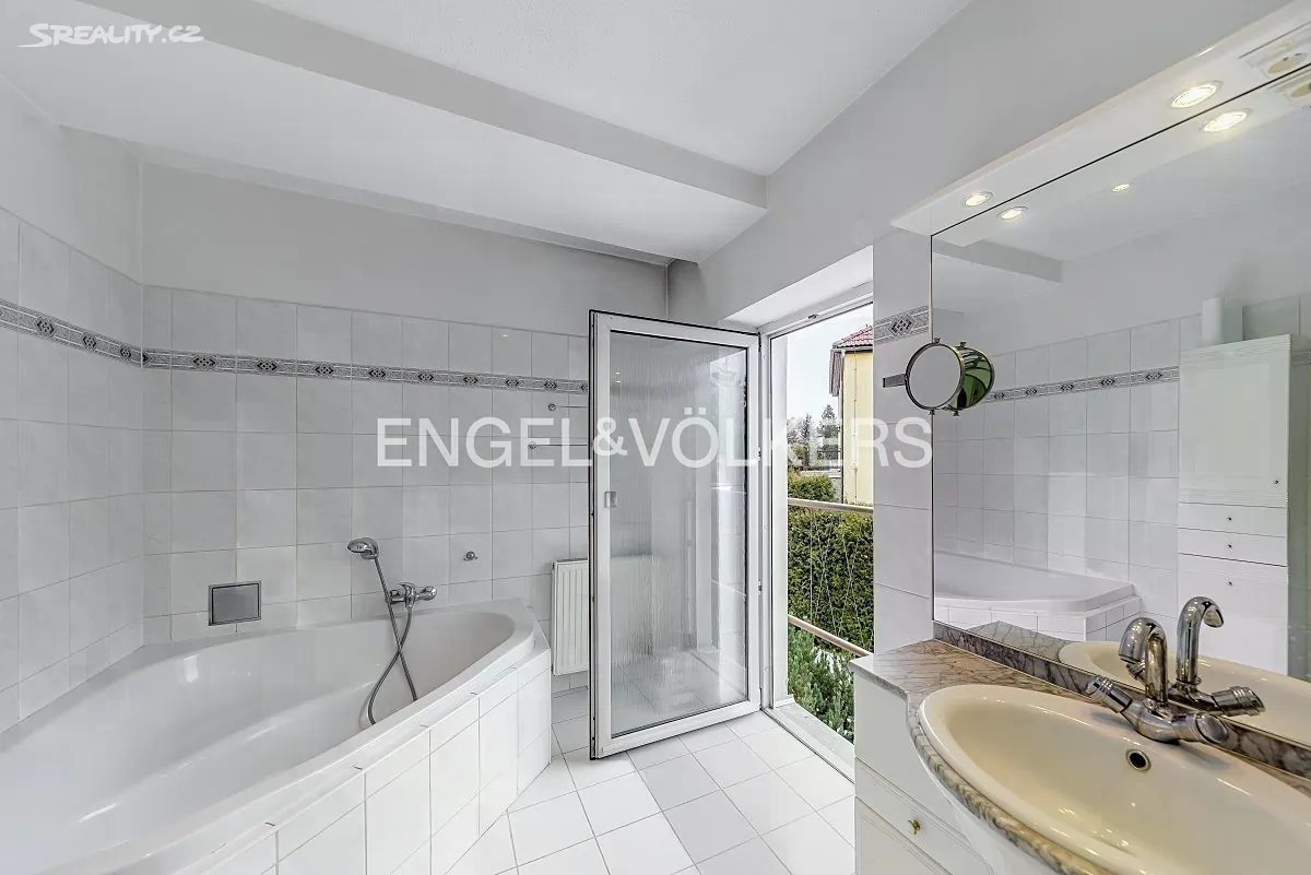 Samostatně stojící rodinný dům s pozemkem o rozloze 615 m2 se nachází v klidné ulici s krásným výhledem na park a vodní plochu biotopu Lhotka. Velkorysá dispozice 6+1 a užitná plocha 311 m2 nabízí komfortní bydlení pro rodinu nebo reprezentativní zázemí pro firemní sídlo. Dům disponuje garáží pro dvě auta v suterénu s přímým vstupem do interiéru a dalšími dvěma parkovacími místy na pozemku. Jednotlivá mezipatra propojuje elegantní žulové schodiště, díky kterému je dům prakticky členěn a poskytuje dostatek soukromí pro každého člena domácnosti. Tento promyšlený rozvrh zároveň činí nemovitost ideální i pro dvougenerační bydlení. Každé podlaží má vlastní koupelnu a samostatnou toaletu, přičemž hlavní ložnice disponuje navíc svou soukromou koupelnou. K relaxaci slouží tři prostorné balkony a střešní terasa s panoramatickým výhledem do okolí. Obývací pokoj s krbem a samostatná kuchyň s jídelnou mají přímý vstup na zahradu. Suterén nabízí dostatek úložných a skladových prostor. Interiér je příjemně světlý díky velkým oknům a orientaci na všechny světové strany. Standardy vybavení zahrnují dřevěné a plovoucí podlahy, dlažbu a plastová okna. Dům je vybaven zabezpečovacím systémem a vytápění zajišťuje plynový kotel. V nejbližším okolí se nachází množství parků a lesů, které nabízejí široké možnosti pro sport i relaxaci. Rodiny s dětmi ocení také blízkost prestižní školy Prague British International School, která patří mezi nejvyhledávanější vzdělávací instituce v Praze.
