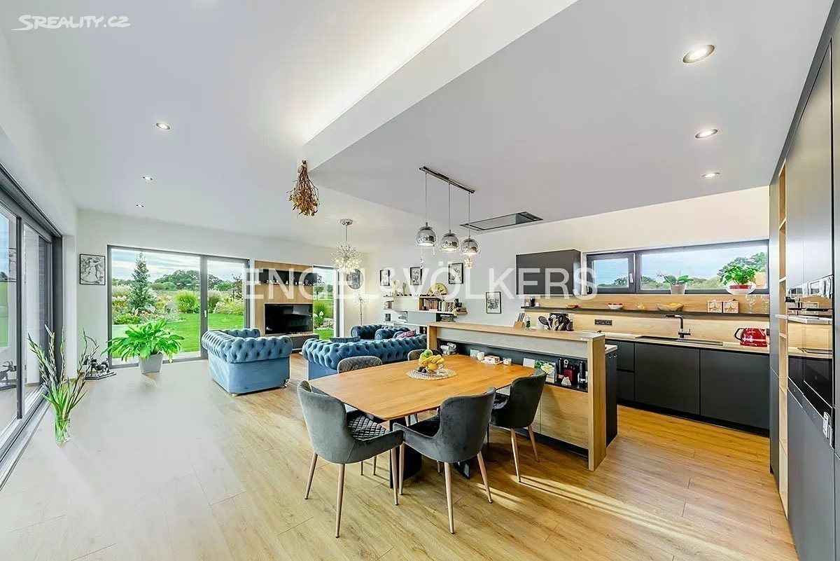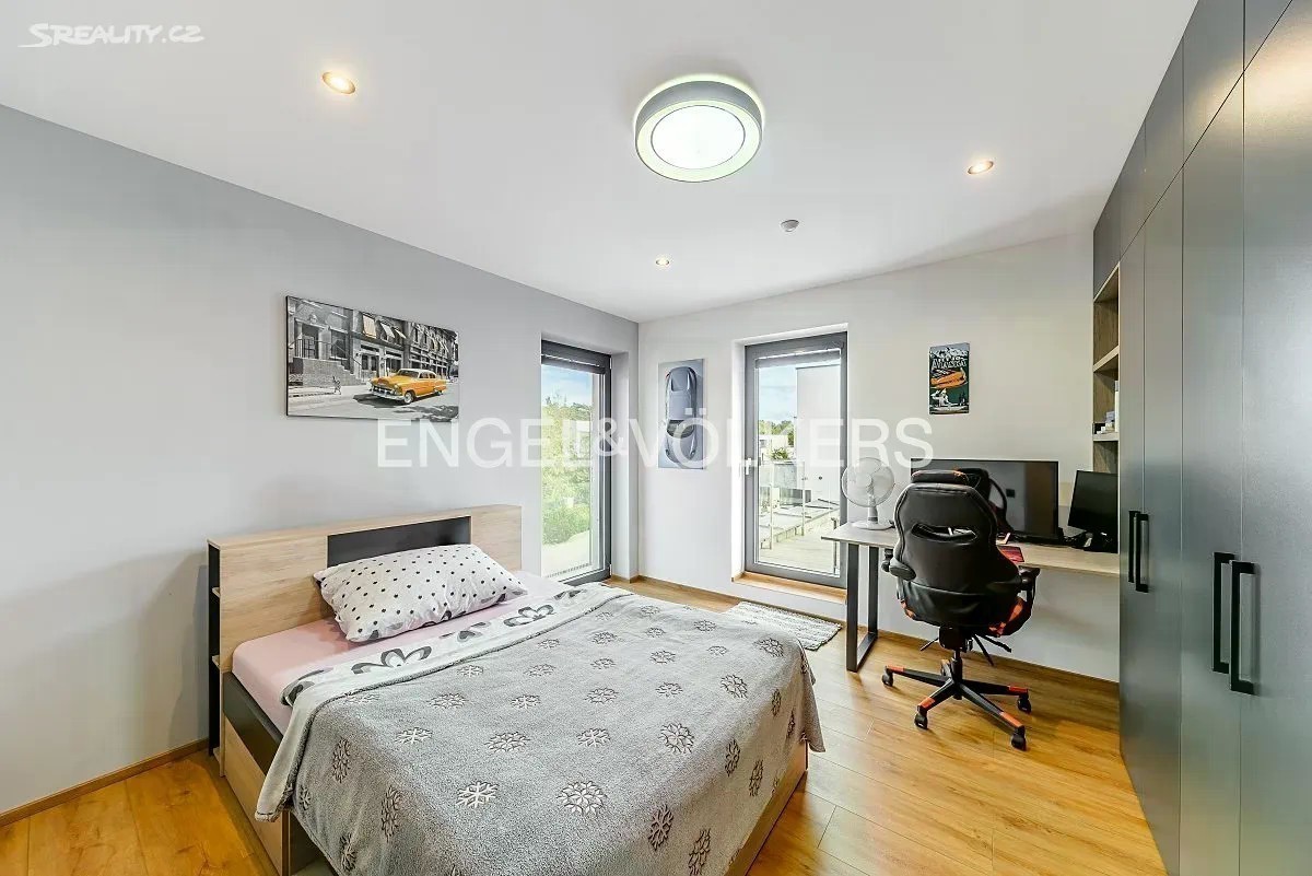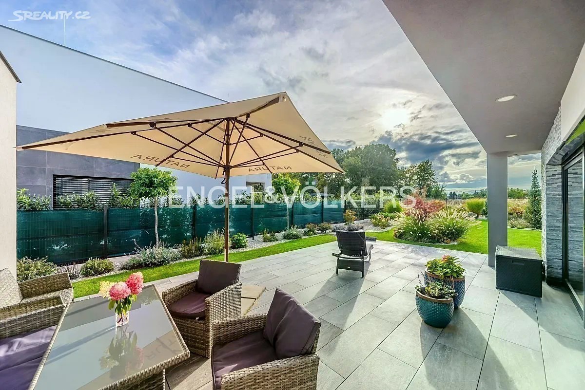 Hledáte moderní a komfortní bydlení v klidné lokalitě, které nabídne nejen dostatek prostoru, ale i špičkové vybavení? Máme pro vás jedinečnou příležitost pořídit si novostavbu rodinné vily z roku 2022 v prestižní čtvrti Újezd u Průhonic. Tento nádherný dům s dispozicí 5+kk se pyšní vnitřní užitnou plochou 195 m2 a nachází se na pozemku o celkové rozloze 723 m2, z čehož 567 m2 tvoří udržovaná zahrada vybavená automatickým zavlažovacím systémem a automatickou sekačkou, což vám zajistí minimální starost s její údržbou. Vila je promyšleně rozdělena do dvou podlaží. Přízemí je navrženo pro pohodlný každodenní život a zahrnuje prostorný a světlý obývací pokoj, propojený s moderně vybavenou kuchyní, odkud je přímý vstup na zahradu. Dále zde najdete pokoj pro hosty s vlastní koupelnou, praktickou šatnu, technickou místnost, garáž pro jedno auto a skladovou místnost vhodnou například pro sportovní vybavení, jako jsou kola nebo lyže. Druhé podlaží je vyhrazeno pro klid a odpočinek. Nachází se zde dvě ložnice, které mohou sloužit jako dětské pokoje nebo pracovna, a tyto místnosti sdílejí jednu prostornou koupelnu. Hlavní ložnice je samostatná a je přístupná přes šatnu, přičemž disponuje vlastní koupelnou, což zajišťuje maximální komfort a soukromí. Jeden z pokojů má navíc přístup na terasu, která se nachází nad garáží a nabízí ideální místo pro relaxaci. Kromě výborně navržené dispozice a kvalitních materiálů, jako jsou vinylové podlahy, dlažba, hliníková okna s trojskly a venkovní rolety, se vila pyšní i moderními technologiemi. Topení zajišťuje plynový kondenzační kotel s podlahovým vytápěním, což výrazně přispívá k úspornému provozu a pohodlí v celém domě. Všechen vestavěný nábytek byl vyroben na míru, což zajišťuje jeho vysokou kvalitu a funkčnost. Tato novostavba rodinné vily je ideální volbou pro ty, kteří hledají nadstandardní bydlení v moderním stylu, s dostatkem prostoru a všemi vymoženostmi moderní doby. Průkaz energetické náročnosti budovy (PENB) byl vyhotoven s klasifikací B. Vzhledem k tomu, že aktuálně nemáme k dispozici oficiální štítek PENB, uvádíme dle zákonné povinnosti třídu G.