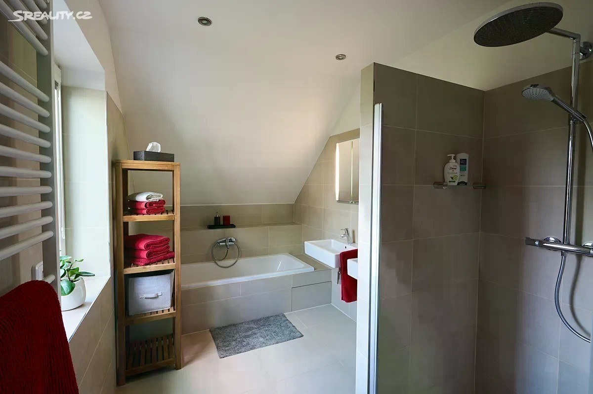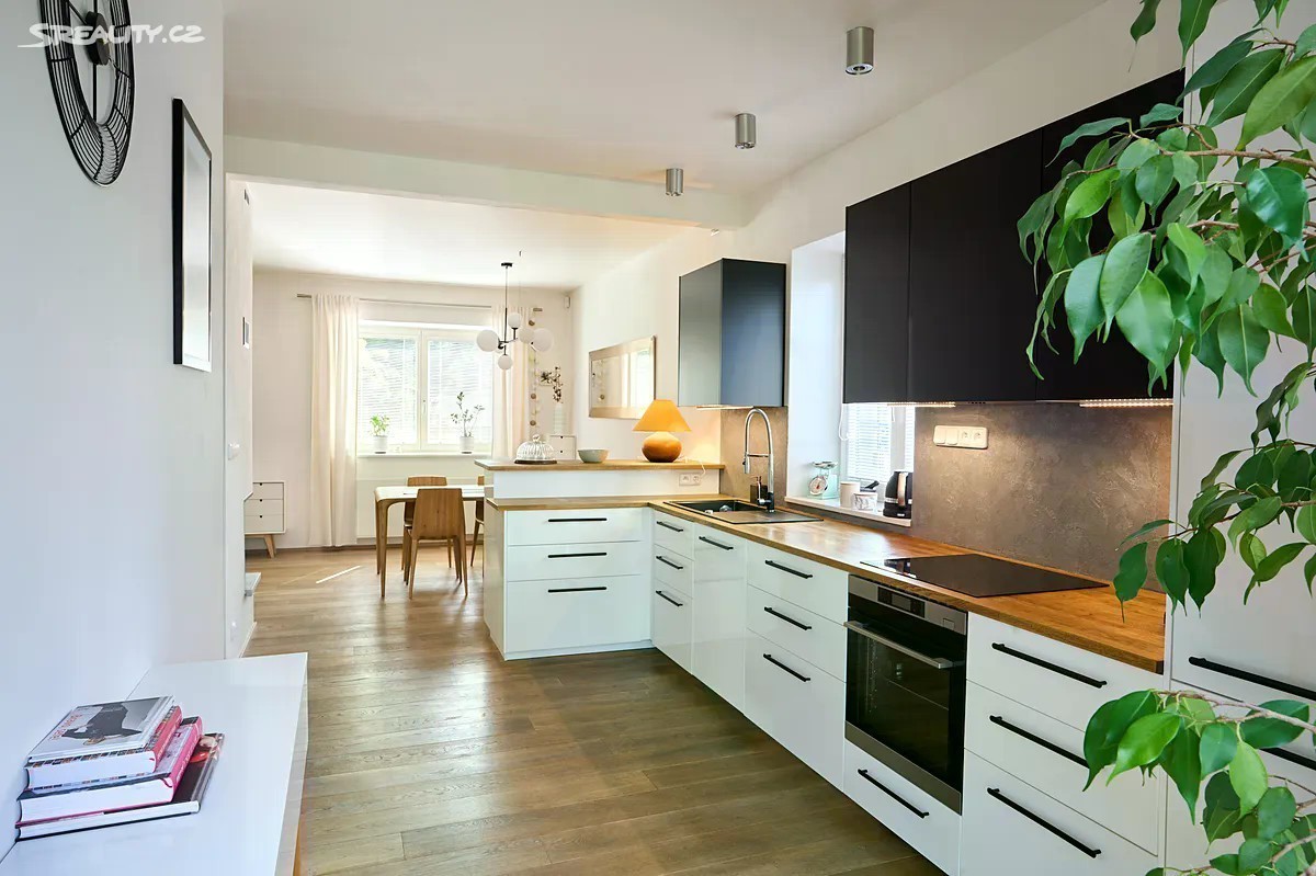 Nabízíme k prodeji výjimečný rodinný dům o dispozici 5+1 v oblíbené městské části Hostivař v Praze 10. Dům je obklopen veškerou občanskou vybaveností i dopravní infrastrukturou (tramvaj 5 min., vlak 10 min.), ale také vzrostlou zelení, což obyvatelům domu poskytuje potřebné soukromí. Dům disponuje dvěma nadzemními a jedním podzemním podlažím a úložným podkrovím s možností půdní vestavby. V přízemí se nachází obývací pokoj s kuchyní, koupelna se sprchovým koutem a toaletou a pokoj, který lze využít jako pracovnu nebo hostinský pokoj. V zádveří je prostorná komora. Obývací pokoj s trojstranně proskleným krbem navazuje na terasu vybavenou sedací soupravou a velkým jídelním stolem. V prvním patře se nachází 3 ložnice se zabudovanými skříněmi, koupelna s vanou a sprchovým koutem, prádelna s WC. Suterén s okny je vybaven saunou, sprchou a WC. Dále je k dispozici komora např. na skladování potravin a technické zázemí. Dům prošel kompletní rekonstrukcí tzv. “na cihlu” a finální úpravy byly dokončeny v roce 2023. Dům je zateplen, má nové dispozice v souladu s aktuálními potřebami pohodlného bydlení, nové omítky, rozvody, vytápění kondenzačním kotlem. Etážové topení je kombinované s podlahovým topením, v obývacím pokoji je výkonný krb, kterým lze vytopit celý dům. EZS, požární hlásiče, dálkové ovládání brány. Dřevěná eurookna s trojitým sklem, dřevěné podlahy a dlažba v zádveří a v koupelnách. Úložné prostory poskytuje komora v zádveří, dále velká komora ve sklepě. K ukládání oblečení jsou k dispozici vestavné skříně ve všech pokojích. Dům je kompletně vybaven kvalitními spotřebiči (AEG, siemens), designovým masivním nábytkem (např. situs, kiteen, domestav) a nábytkem na míru a zařizovacími předměty (duravit, hüppe, hansgrohe, aj.). Dům je připraven k okamžitému nastěhování a plnohodnotnému užívání. Na architektem navržené zahradě můžete nerušeně relaxovat na zastřešené terase, zařízené dřevěným nábytkem, vhodné pro společné chvíle s rodinou nebo na zahradní párty. Pobyt na zahradě zpříjemňují květinové záhony, vzrostlé okrasné stromy i mnoho ovocných stromů a keřů. Na zahradě jsou hrací prvky pro děti, domeček, skluzavka, aj. Na pozemku jsou k dispozici dva zahradní domky na zahradní techniku a na kola. Parkovací stání na pozemku. Cca 300 m od domu se nachází zastávka tramvaje č. 22, 26. Nedaleko je také vlaková zastávka Nádraží Hostivař, v centru jste vlakem za 14 min. V blízkosti domu je kompletní občanská vybavenost. Přes cestu státní i soukromá ZŠ, velká a oblíbená MŠ cca 700 m od domu. Pár metrů od domu je nové dětské hřiště s přilehlou restaurací. Velmi oblíbená restaurace a pivovar Hostivar 1,2 km. Blízko domu obchody Albert a Norma. Nákupní centrum Vivo s kinem, posilovnou, saunovým světem 1,4 km (5 min. autem). Ideální k dlouhým procházkám je zde lesopark s přehradou, písčitou pláží a přírodním koupalištěm. Sportovní a kulturní vyžití nabízí pro děti i dospělé např. nedaleký TJ Sokol. V případě zájmu o prohlídku mne neváhejte kontaktovat.