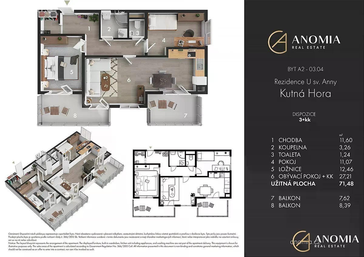 Hledáte moderní bydlení v klidném prostředí, které zároveň nabízí skvělou dostupnost a kompletní občanskou vybavenost? Nebo přemýšlíte o vhodném investičním záměru? Pak vás jistě zaujme možnost pořídit si nový byt v rámci již třetí etapy úspěšného projektu Rezidenční čtvrť U sv. Anny v Kutné Hoře, jejíž výstavba začne již v tomto roce! Bytové domy leží na jižním svahu, jen pár kroků od lesa, což této lokalitě dodává jedinečnost, kterou jen tak někde nenajdete. Bytová jednotka s projektovým označením 03.04 o dispozici 3+KK se nachází ve 3. nadzemním podlaží bytového domu BDA2. Dům bude postaven jako energeticky úsporný s důrazem na použití kvalitních materiálů, které zajistí vysoký standard bydlení. Součástí je také zvuková izolace, která poskytne maximální pocit soukromí a klidu pro všechny obyvatele. Byt je ideální volbou pro rodiny i jednotlivce, kteří ocení jeho promyšlené dispozice a orientaci na jihovýchod, díky níž je plný denního světla. K bytu náleží dva prostorné balkony o celkové ploše 16 m2, které jsou jako stvořené pro ranní kávu, pěstování květin či večerní posezení s rodinou a přáteli. Součástí bytu je také sklepní kóje, která poskytuje dostatek úložného prostoru. Pokud potřebujete parkovací stání, můžete si ho dokoupit za cenu 290 000 Kč. Rezidenční čtvrť U sv. Anny se nachází v klidné části Kutné Hory, přímo u lesa, což potěší milovníky přírody a relaxace na čerstvém vzduchu. Lokalita se pyšní nejen blízkostí historického centra města, které patří na seznam UNESCO, ale také výbornou dopravní dostupností. Kutná Hora má přímé vlakové spojení s Prahou, kam se pohodlně dostanete za cca 50 minut. Do sousedního Kolína, který je významným dopravním uzlem, dojedete během pouhých 10 minut. Kromě lákavé možnosti vlastního bydlení se jedná i o výbornou investiční příležitost. Díky atraktivitě lokality, vysoké poptávce po nájemním bydlení a blízkosti Prahy i Kolína je tento byt vhodný také jako zajištění stabilního a dlouhodobého výnosu. Oblast nabízí také kompletní občanskou vybavenost, a tak máte vše potřebné doslova na dosah ruky - od obchodů a služeb až po možnosti aktivního odpočinku. O své klienty se staráme po celou dobu a to od výběru nemovitosti, přes zajištění financování a klientské změny, až po předání klíčů. Pro více informací, či nabídku dalších bytů v rámci tohoto projektu nás neváhejte kontaktovat.