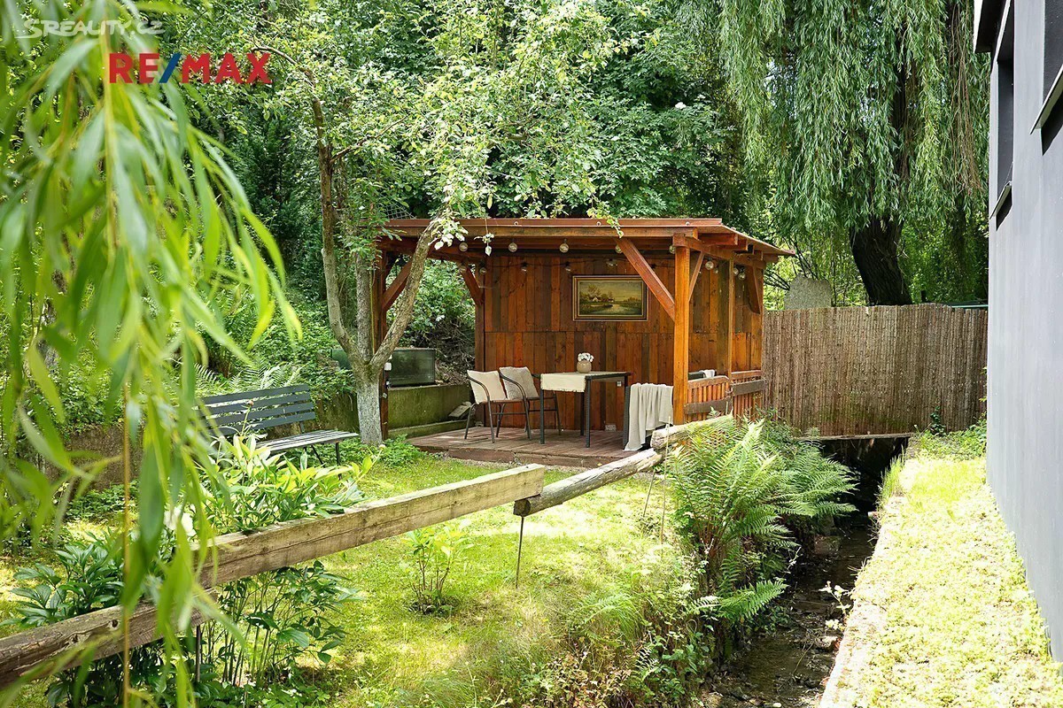 Exkluzivně Vám představujeme unikátní nabídku: moderní patrový dům z roku 2021, který se nachází v naprostém klidu přírody mezi Slivencem a Velkou Chuchlí - a přitom jen několik minut jízdy od supermarketů, MHD i městského života. Když k tomu připočtete kaskádovitou zahradu s pergolou a potok Vrutici protékající přímo pozemkem, je jasné, že tohle není běžná nemovitost. Tohle je místo s duší! Díky příjemnému mikroklimatu a přítomnosti potoka je zde po celý rok příjemně. Co dům nabízí: Nadčasová novostavba z roku 2021 ve výborném technickém stavu Třípodlažní řešení s možností vícegeneračního bydlení - ve spodním patře se nachází samostatná klubovna s vlastním vstupem, ideální pro přestavbu na byt, kancelář nebo ateliér Ve dvou horních patrech se rozkládá hlavní obytná část s obývacím pokojem, kuchyní, ložnicemi a koupelnou Světlý interiér, moderní vybavení, krásné výhledy do okolní zeleně Exteriér a pozemek: Kaskádovitě upravená zahrada, která vytváří soukromé terasy pro relaxaci i pěstování zeleniny či ovoce Pergola ideální pro letní posezení nebo grilování s přáteli, na pozemku je i udírna Potok Vrutice, přirozený levostranný přítok Vltavy, protéká přímo pozemkem - zurčící voda, kámen a zeleň vytváří neopakovatelnou atmosféru Lokalita navazuje na přírodní rezervaci Homolka, blízké lesy a louky navozují dojem, že jste daleko od města, ačkoliv jste stále v Praze Dům se nachází v lokalitě Višňovka, původní chatové osadě s výjimečným geniem loci - dnes zde vznikají domy s respektem k okolní přírodě, přitom jen pár minut autem od Lidlu a Hornbachu ve Velké Chuchli či Kauflandu na Barrandově. Velmi dobrá je i dostupnost MHD a rychlé spojení do centra. Tento dům je ideální volbou pro ty, kteří chtějí kombinaci přírody, soukromí a moderního komfortu. Skvělý pro rodiny, více generací pod jednou střechou i všechny, kdo hledají harmonii mezi přírodou a městem. Dům i okolní prostředí si Vás získá - těšíme se na prohlídku!
