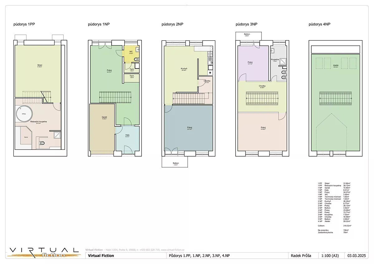 Řadový dům s dispozicí 7+1 se nachází v klidné oblasti nedaleko metra Rajská zahrada. Tento zděný dům s jedním podzemním a čtyřmi nadzemními podlažími. Pozemek má celkem 156 m², z toho zastavěná plocha činí cca 78 m² a zahrada 78 m², podlahová plocha domu je 317 m² a užitková plocha místností cca 250 m², využití domu je variabilní, po instalaci kuchyňských linek v patrech lze dům užívat jako vícegenerační se společným vchodem, nebo rozdělit na několik bytových jednotek. V domě je centrální schodiště. Velká garáž se sekčními vraty s elektrickým pohonem na dálkové ovládání. Menší zahrada. V celém domě jsou nová plastová okna v nejvyšším standardu s trojsklem. Od 2NP 4NP jsou pokoje osazeny čtyřmi novými klimatizačními jednotkami Daikin. Suterén (1PP): místnost sloužící doposud jako sklad (32m²) a prostorné wellness s vířivkou, saunou a toaletou (28m²). Přízemí (1NP): garáž 16m², předsíň, pokoj (34m) odkud je vstup na menší zahradu s tůjemi a dvě technické místnosti s kotli. 1. patro (2NP): místnost s kuchyní (26m²) a pokoj (28m²) se vstupem na menší balkon. 2. patro (3NP): ložnice 14m², z chodby je vstup do koupelny se sprchou a toaletou, další pokoj 24m² s balkonem. 3. patro (4NP): ateliérový prostor (59m²). Dům byl průběžně udržován a je ve velmi dobrém stavu, je napojen na všechny inženýrské sítě včetně plynu. Vytápění a ohřev TUV je řešeno kondenzačním kotlem. Nízká spotřeba energií třída B/C. Tato nemovitost má výbornou dopravní dostupnost 5 min. chůzí na Metro Rajská zahrada, 4 min. chůze na vlakovou stanici Praha nádraží Rajská zahrada (do centra Prahy 15 min.). V dojezdu 5 min. autem na 3 dálnice D8, D10, D11 a na pražský okruh. Pouze 5 min. autem do Centra Černý most a celou nákupní zónu (Hornbach, Ikea, XXX Lutz, Sconto a další). Dalším spojem je vlak, kterým se během několika minut dostanete do centra Prahy.