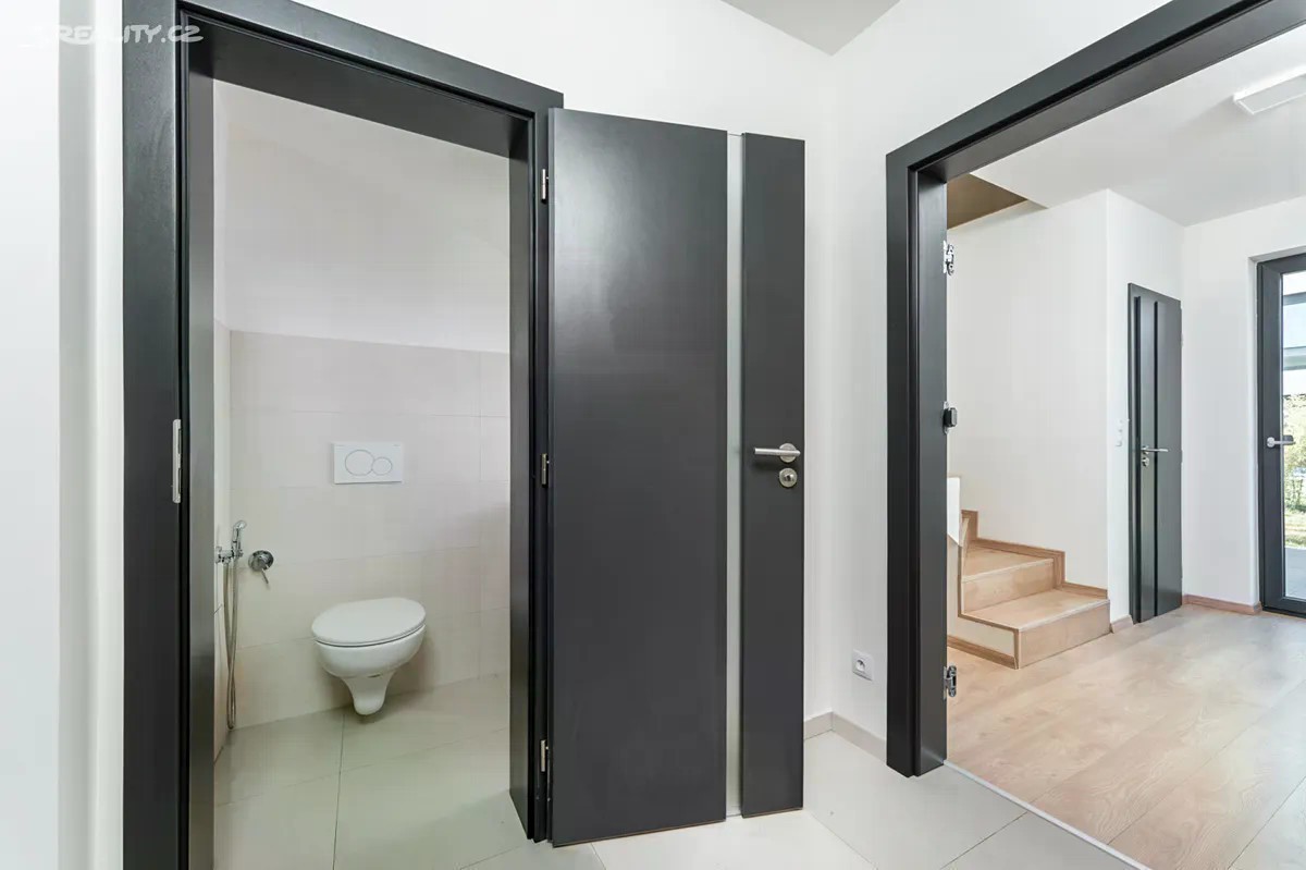 Jedinečná nabídka prodej Rodinného domu - Praha 5, Lipence, Josefa Houdka 902 cena na dotaz. V případě projevení vážného zájmu o tuto nemovitost je cena k jednání přímo s majitelem nemovitosti. Případné financování hypotéčním úvěrem je zajištěno. Nabízíme Vám prodej poloviny luxusního rodinného dvojdomu ČP 902 Lipence. Rodinný dům o dvou bytových jednotkách je umístěn v rezidenčním komorním projektu novostavby postavené v nejjižnějším okraji Prahy 5, v ulici Josefa Houdka. V blízkosti přírody v pohodové a klidné lokalitě. Nabízená bytová jednotka se samostatným vstupem do domu číslo 906/1 je umístěna v 1. a 2. nadzemním podlaží rodinného domu s dispozicemi 4+kk. Celková výměra bytu dle nařízení vlády 366/2013 Sb. činí 119,20 m2. V 1. NP se nachází vstupní chodba, WC, sprcha, schodiště, úložný prostor pod schodištěm, vstup do rozlehlého obývacího prostoru s vybavenou kuchyňskou linkou se všemi spotřebiči značky Elektrolux - vestavěná lednice, vestavěný mrazák, indukční varná deska, trouba, mikrovlnná trouba, obývací prostor je velmi světlý - výstup na terasu a malou zahrádku 2 posuvné prosklené stěny opatřené venkovními žaluziemi el. ovládanými z místnosti, na druhou stranu opět prosklené posuvné dveře z možností vstupu ven. Ve 2.NP se nachází chodba se třemi samostatnými ložnicemi všechna okna jsou opět opatřena venkovními žaluziemi, koupelna s vanou, umyvadlem, druhým záchodem, oba záchody jsou opatřeny hygienickou sprškou. K výlučnému užívání náleží terasa a zahrada o celkové ploše 108,6m2 a 2 venkovní parkovací stání. Po dohodě s vámi jsme připraveni zajistit prohlídku nemovitosti. Stavební informace: - rod. dům je cihelný, z jednovrstvého tepelně izolačního zdiva - strop nad přízemím a schodiště do patra - monolitická žb deska - střecha pultová dřevěné konstrukce s krytinou z folie Dům je vytápěn tepelným čerpadlem doplněno elektrokotlem, podlahové vytápění v 1. i 2. NP, napojení na vodovodní řád, odvod splašková tlaková kanalizace, dešťová voda odvedena do trativodu na pozemku, systémy rozvodu a příjmu satelitního televizního signálu a rozhlasového signálu včetně antén, zařízení pro bezdrátový příjem dat a datové rozvody, oplocení schránka Energetický štítek budovy B. Kolaudace 2024 Lokalita: Městská část Praha 5-Lipence nabízí těsné sepětí s přírodou. Rozkládá se na území nedaleko řeky Berounky, v sousedství dalších malebných okrajových čtvrtí Prahy jako jsou Zbraslav, Radotín a Černošice. Jde o oázu zdravého života. Najdete zde pohodovou atmosféru jako na vesnici, přitom veškerou městskou občanskou vybavenost budete mít na dosah. Samotné Lipence tvoří bránu do rekreační oblasti Kazín u Berounky. Jen pár minut pěšky nebo minutu jízdy autem se nalézá supermarket Albert a další soubor obchodů, vč. benzínky. Stejně tak pár minut pěšky je to k základní škole v Černošické ulici, Mateřská škole je v ulici K samoobsluze, rovněž pošta je nedaleko. Jen pár minut jízdy autem je nejbližší zdravotní středisko. Sportovce potěší blízkost TJ Sokola Lipence, blízkost golfového hřiště. V okolí se nalézá celá řada stezek pro výlety na kole i pěší turistiku. Vynikající je zde i dopravní spojení s centrem města. V podstatě před domem se nalézá zastávka MHD. Dokonce zde funguje i noční linka. Do centra Prahy je to odsud autem 25 minut, pokud byste se vydali třeba za kulturou. Městskou hromadnou dopravou se za 25 minut dostanete na Smíchovské nádraží, což je velice příjemný dojezdový čas. K nájezdu na dálnici D4 na jih Čech se dostanete autem za cca 6 minut, stejně tak jako na Pražský okruh.