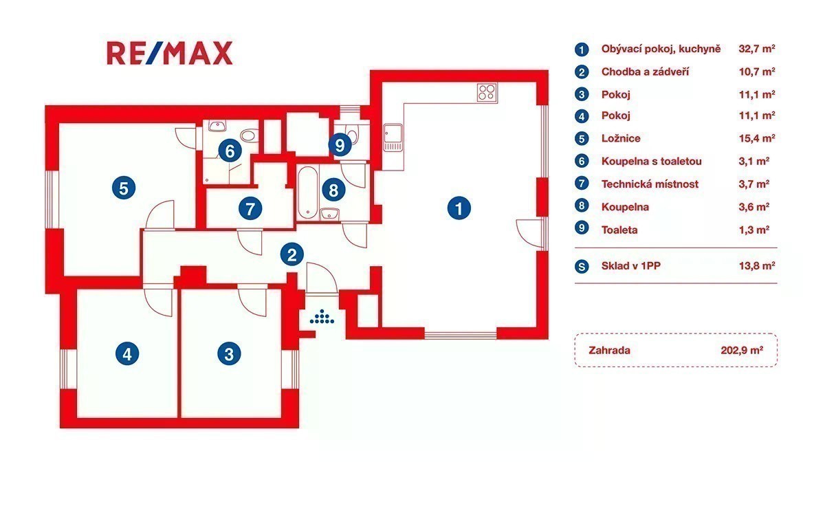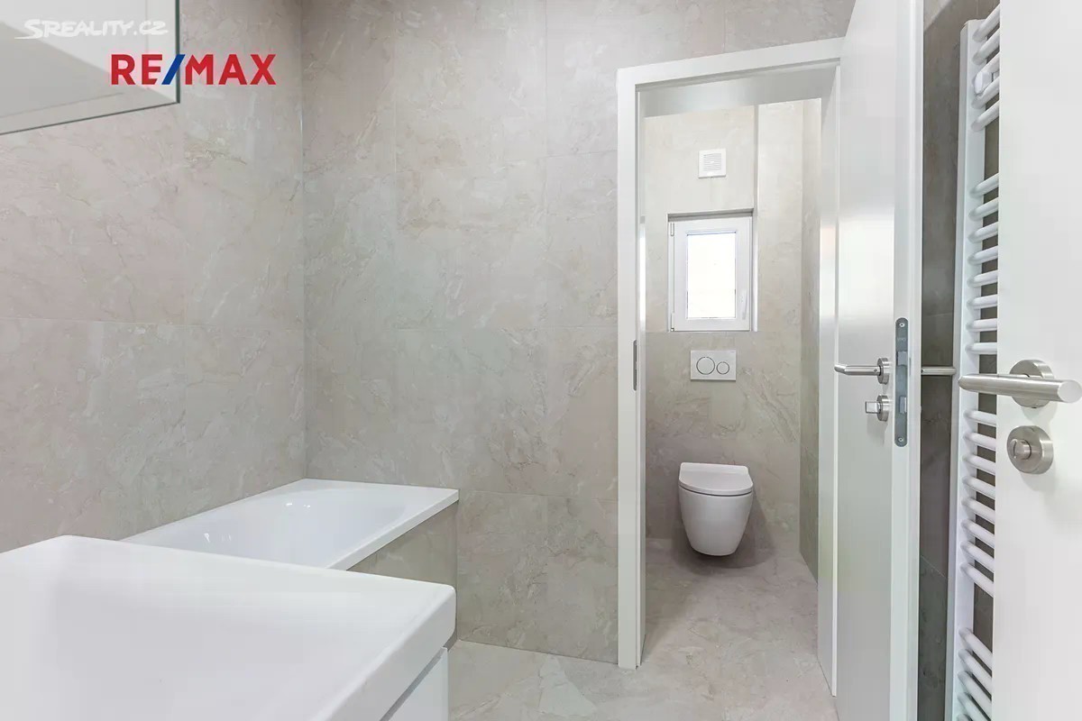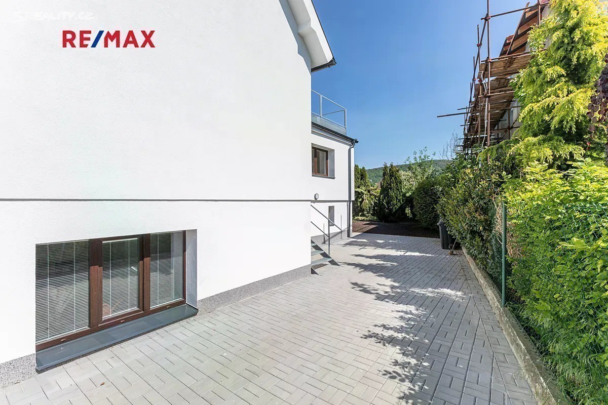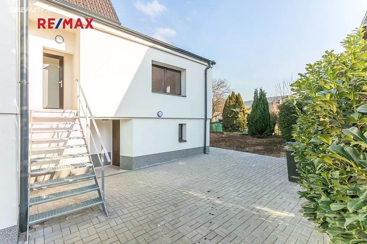 V Řevnicích, vyhledávané rezidenční oblasti nedaleko od jihozápadního okraje Prahy, v krásném údolí řeky Berounky, nabízíme nově zrekonstruovaný byt 4+kk s velkou zahradou. Byt se samostatným vstupem se nachází v kompletně zrekonstruovaném domě se třemi dalšími jednotkami. Jedná se o největší byt, který zabírá celé první podlaží budovy, má samostatný vstup přes společnou část pozemku, kde je pro tento byt vyhrazeno parkování (za elektrickou bránou) a také ve výhradním užívání zahradu o velikosti více než 200 m2 přístupnou i z obývacího pokoje. Dispozičně je byt řešen jako 4+kk, obývací pokoj s kuchyní značky Oresi, která je včetně spotřebičů součástí prodeje, je orientován do zahrady. Velká okna zde zajišťuji dostatek světla. Přes otevřenou chodbu s prostornou šatnou (s instalací pro pračku se sušičkou) a první koupelnou s oddělenou toaletou se pak dále dostaneme do soukromé části se dvěma dětskými pokoji a ložnicí, která je dostatečně velká, aby v ní bylo možné vybudovat šatnu či pracovní kout a disponuje samostatnou koupelnou se sprchou a WC. Součástí vybavení je mj. zvonek s kamerou, topení je ovládáno přes termostat. O vytápění celého domu se stará nový kvalitní plynový kotel, každý byt má samostatná měřidla na spotřebu všech médií. Kotelna je jediným vnitřním společným prostorem, který je sdílen s ostatními obyvateli domu. K bytu dále patří prostor v suterénu, který je možné využívat jako sklep, umístit do něj saunu nebo zde díky oknu vybudovat od bytu oddělenější kancelář. Na zahradě je připravena velká nádrž na dešťovou vodu ze střechy domu s přivedenou elektřinou, je možné vybudovat zavlažování. Na zpevněnou plochu vedle domu, která je již součástí zahrady, lze umístit zahradní domek a získat tak další skladovací prostor či ji využít jako podklad pro pergolu - tyto úpravy již budou na novém majiteli a jeho představách. Trávník na zahradě a případné další drobné úpravy mohou být provedeny, záležet bude i na období, ve kterém bude byt předán novému majiteli. Řevnice jsou oblíbenou lokalitou, pár desítek metrů od domu vede cyklostezka kolem Berounky od Prahy přes Karlštejn do Berouna. V místě je k dispozici škola, školka, spousta obchodů a dalších služeb. Z nedalekého nádraží jezdí vlak do Prahy na hlavní a Smíchovské nádraží ve špičce každých 15 minut, autem je to na Smíchov/Anděl cca 30 minut.