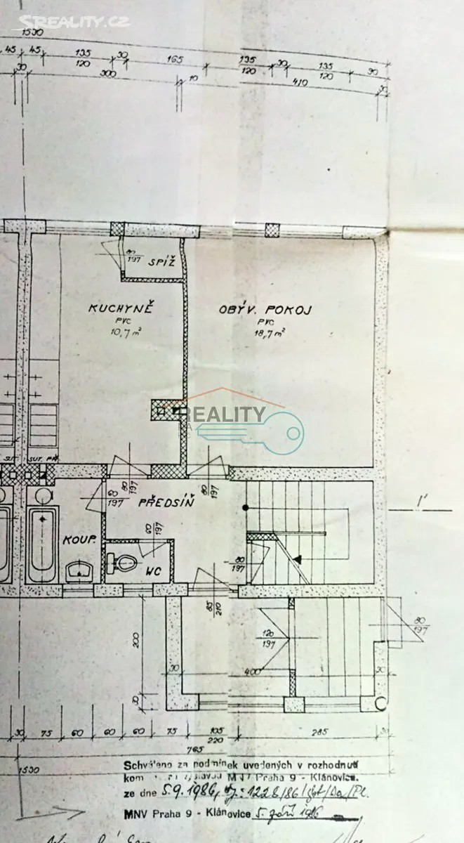 Prodej zděného RD 4+KK/terasa, 146m2, garáž, zahrada, parcela 986m2, Praha 9-Klánovice, ul. U trativodu. Dům je součástí dvojdomu, není podsklepen, má jen malý sklípek v suterénu domu. Ze 2/3 je zateplen a má elektroinstalaci v mědi, mimo schodiště. Dům je napojen na dálkový vodovod a kanalizaci. Na zahradě je postavena hospodářská budova, včetně garáže 73m2, skleník a kopaná studna, hluboká cca 15 - 17m (užitková voda). V přízemí domu je vstupní zádveří, předsíň, obývací pokoj společný s kuchyní (29,40m2), WC, koupelna s vanou a umyvadlem. V patře domu je předsíň, 3 samostatné pokoje (11,50m2, 14,50m2, 14m2) a terasa. Kuchyňská linka je vybavena el. sporákem, vestavěnou myčkou a kombinovaným plynovým kotlem (pořízen 12.2023), na vytápění domu a ohřev vody. V celém domě jsou plastová okna (trojsklo), 6 let stará s hliníkovými žaluziemi. Na podlaze je dlažba a PVC. K domu je stavební dokumentace na úpravu a rekonstrukci domu. Klánovice mají kompletní občanskou vybavenost, MŠ, ZŠ, SŠ, několik restaurací, koupaliště, poštu, úřad, knihovnu a obchody s potravinami. Dobrá dopravní dostupnost, autem do centra Prahy cca 35 min, na Pražský okruh cca 18min. Vlak Praha-Klánovice a MHD 30 min. do centra. V blízkosti je Klánovický les a Přírodní park Klánovice - Čihadla. V ceně je zahrnut právní servis a provize RK. V případě hypotéky poradíme, zajistíme.
