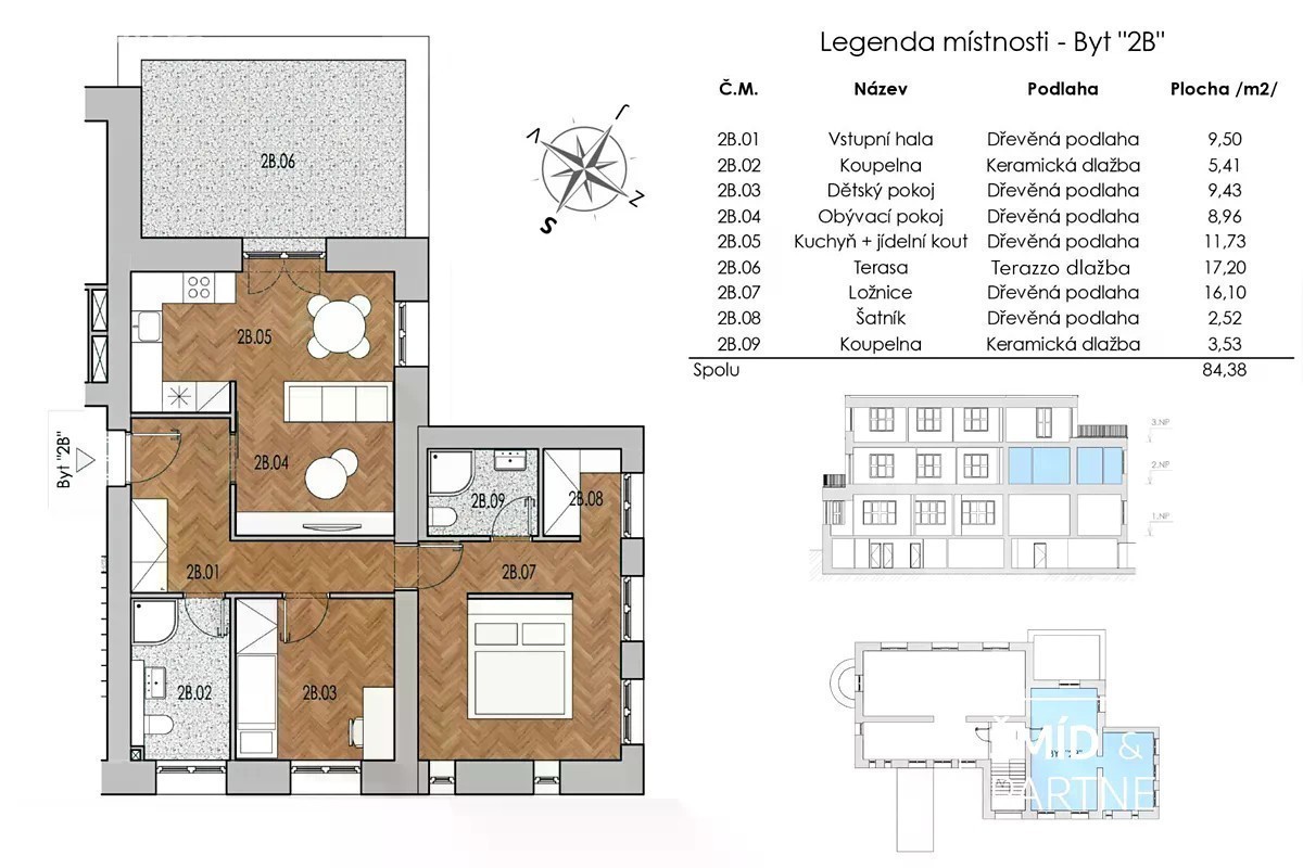 Dobrý den. Nabízím Vám krásný, nový byt o dispozici 3+kk. Byt má celkovou užitnou plochu 84,38 m2 a je na adrese Pavlovova 619. Nemovitost se nachází hned naproti parku. Z terasy o velikosti 17,2 m2 je příjemný výhled. Byt se nachází ve 2. NP funkcionalistické vily z 30. let 20. století, kde právě probíhá výstavba celkem 5 bytů o dispozici 1+kk až 4+kk. Vila je umístěna v uzavřené oplocené zahradě, kterou budou moci využívat všichni majitelé bytů. Pro nové obyvatele vily bude k dispozici 10 parkovacích míst, z toho 2 místa s nabíjením pro elektroauta. Jedno parkovací stání v hodnotě 500.000 je v ceně bytu. Při výstavbě jsou použity vysoce kvalitní materiály a je zde i řízené provětrávání. To vše umožní komfortní bydlení na výjimečném místě. Vytápění je zde teplovodní podlahové a jako zdroj tepla bylo použito tepelné čerpadlo. V bytě je příprava na klimatizaci. Jsou zde použita kvalitní okna s trojskly s protihlukovou úpravou. Samozřejmostí jsou venkovní elektrické rolety. Ke každému bytu náleží sklepní kóje. Dokončení prosinec 2025. Nemovitost je možné financovat hypotékou, kterou Vám rádi vyřídíme.