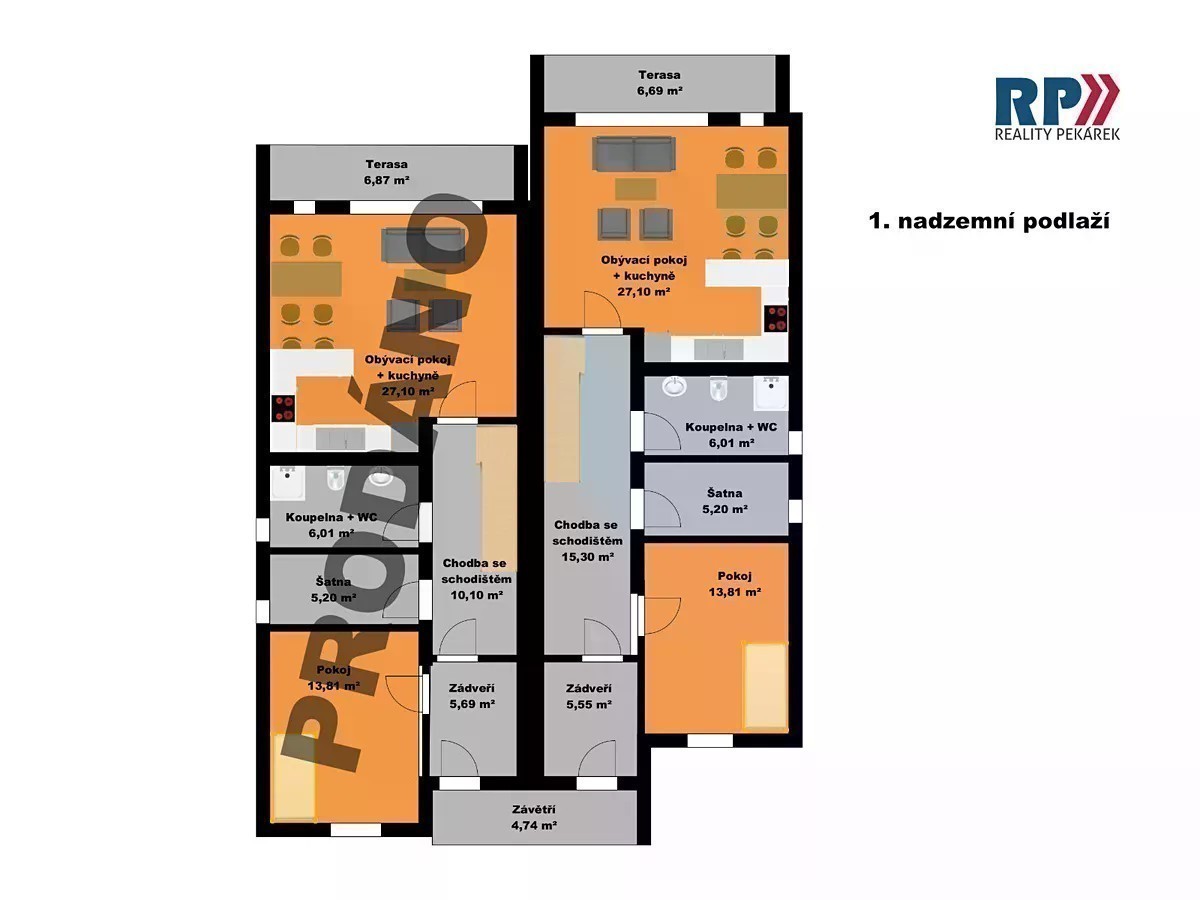 Exkluzivní prodej posledního z volných vilabytů s dispozicí 5+kk (podlahová plocha 146 m2 + terasa 6 m2 + 2 parkovací stání, pozemek celkem 260 m2) v projektu rodinného bydlení v ul. U Trativodu, Praha 9 - Klánovice. Inzerovaný vilabyt je označen písmenem B na situačním plánku v obrázkové části inzerce. Jsou zde rovněž uvedeny půdorysy obou podlaží + virtuální prohlídka matterport + přehled standardů použitých materiálů. Tepelné čerpadlo pro vytápění a ohřev TUV, dřevěné podlahy, špičková sanitární technika, kvalitní dlažby a obklady, dálkové ovládání vjezdové brány, pohodlné parkování, ale především vynikající lokalizace nemovitosti v blízkosti vlakového nádraží Praha-Klánovice činí tuto nabídku mimořádně atraktivní. Nemovitost byla zkolaudována v listopadu 2023. Klánovice patří mezi nejoblíbenější a nejžádanější lokality na východním okraji Prahy. V místě jsou veškeré služby, školy, školky, lékaři apod. Stanice MHD 100 m, vlakové spojení na Masarykovo i Hlavní nádraží v centru Prahy 19 minut. Klánovický les s množstvím turistických tras i cyklostezek v bezprostřední blízkosti, v okolí je rovněž několik golfových hřišť. Pro bližší informace volejte nebo pište makléři nabídky.