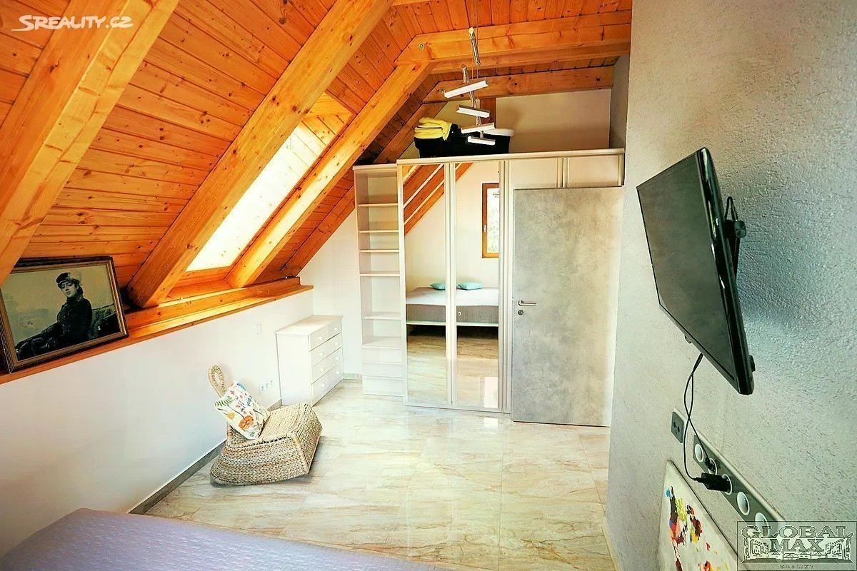Dovolujeme si vám nabídnout rodinný dům s krásnými výhledy do okolí na Praze 5, Zbraslav, ulice Za dálnicí. Dům je ve velmi dobrém stavu, jeho nová podoba vznikla rekonstrukcí původního přízemního domu a přistavěním dalšího patra (novostavba podkroví). Rekonstrukce přízemí proběhla v roce 2018 spočívající ve výměně oken, elektroinstalaci, většiny nových podlah, nové hydroizolace domu od základů, odvodnění a dále zateplení, nová fasáda včetně vybudování nové koupelny. V roce 2020-2022 proběhla novostavba podkroví. V domě byly použity kvalitní materiály, otevřené designové celodřevěné schodiště, luxusní okno přes velkou část stěny v obýváku v přízemí, okna plastová trojskla s rolety na elektrický pohon (před okny), nadstandardně řešené koupelny, kuchyňská linka s vestavěnými spotřebiči, indukční deskou, myčkou, atd. Dům zahrnuje tři terasy a jeden balkón. Dům je dispozičně rozdělen na cca 4+1 v přízemí s obývacím pokojem, pracovnou a dalšími dvěma pokoji, v podkroví dalšími 3 pokoji včetně prostorné haly nepočítaje koupelna zádveří. Celkově dispozičně jde zhruba o velikost 7+1. Dům je celo podsklepený s garáží, dílnou a dalšími úložnými prostory. Vytápění je řešeno ústředním topení s radiátory v přízemí a podlahovým topením v podkroví. Oba systémy vytápí kotel na pelety, možnost přepnout na elektriku. V domě alarm, kamerový systém. Na zahradě instalováno závlahové zařízení, vybudována zámková dlažba až objektu. Perfektní spojení autem na okruh a odtud do centra nebo dalších destinací. V těsné blízkosti Zbraslav, nedaleko od domu zastávka MHD. Zbraslav je známá svým osobitým kouzlem, pěknou přírodou a klidným prostředím, které je ideální pro rodinné bydlení nebo pro ty, kdo hledají útočiště blízko městského ruchu, ale přitom v dosahu centra Prahy. Oblast nabízí velmi dobrou občanskou vybavenost včetně škol, obchodů, restaurací a kaváren. Vzhledem k tomu, že v době zadání nebyl dodán průkaz energetické náročnosti budovy, uvádíme třídu energetické náročnosti G.