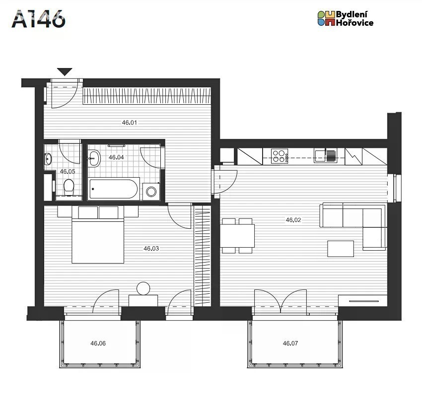 Nabízíme k prodeji byt 2+kk č. A146 o celkové ploše 93,18 m2 se sklepem. Byt se nachází ve 4. nadzemním podlaží domu 5. etapy budovy A2 projektu Bydlení Hořovice. Plocha sklepa je 9,07 m2. Nastěhování léto 2026. Představujeme projekt Bydlení Hořovice Bydlení Hořovice nabízí moderní byty v malebném středočeském Hořovicku, navržené pro komfortní a kvalitní bydlení mezi Prahou a Plzní. Vynikající lokalita Hořovice nabízí snadnou dostupnost do Prahy a Plzně po dálnici D5 i vlakem. Město je bohaté na historii, kulturní dědictví a nabízí kompletní občanskou vybavenost - nemocnice, školky, školy, obchody a služby. Moderní byty s prvotřídním vybavením Byty různých velikostí a dispozic jsou navrženy s důrazem na kvalitu a komfort. Nabízí kvalitní podlahy, elegantní interiérové vybavení, energetickou úspornost, prostorné balkony, parkování a možnost personalizace bytu. Příroda a volný čas Okolí Hořovic nabízí krásné přírodní scenérie, pěší turistiku, cykloturistiku a další volnočasové aktivity. Zhodnocení investice Bydlení Hořovice je výhodná investice díky kvalitní stavbě a atraktivní lokalitě, zajišťující stabilní a rostoucí hodnotu nemovitostí. Proč vybrat Bydlení Hořovice? Nabízí kombinaci klidu a výborné dostupnosti do velkých měst s vysokým standardem stavebních materiálů a vybavení.