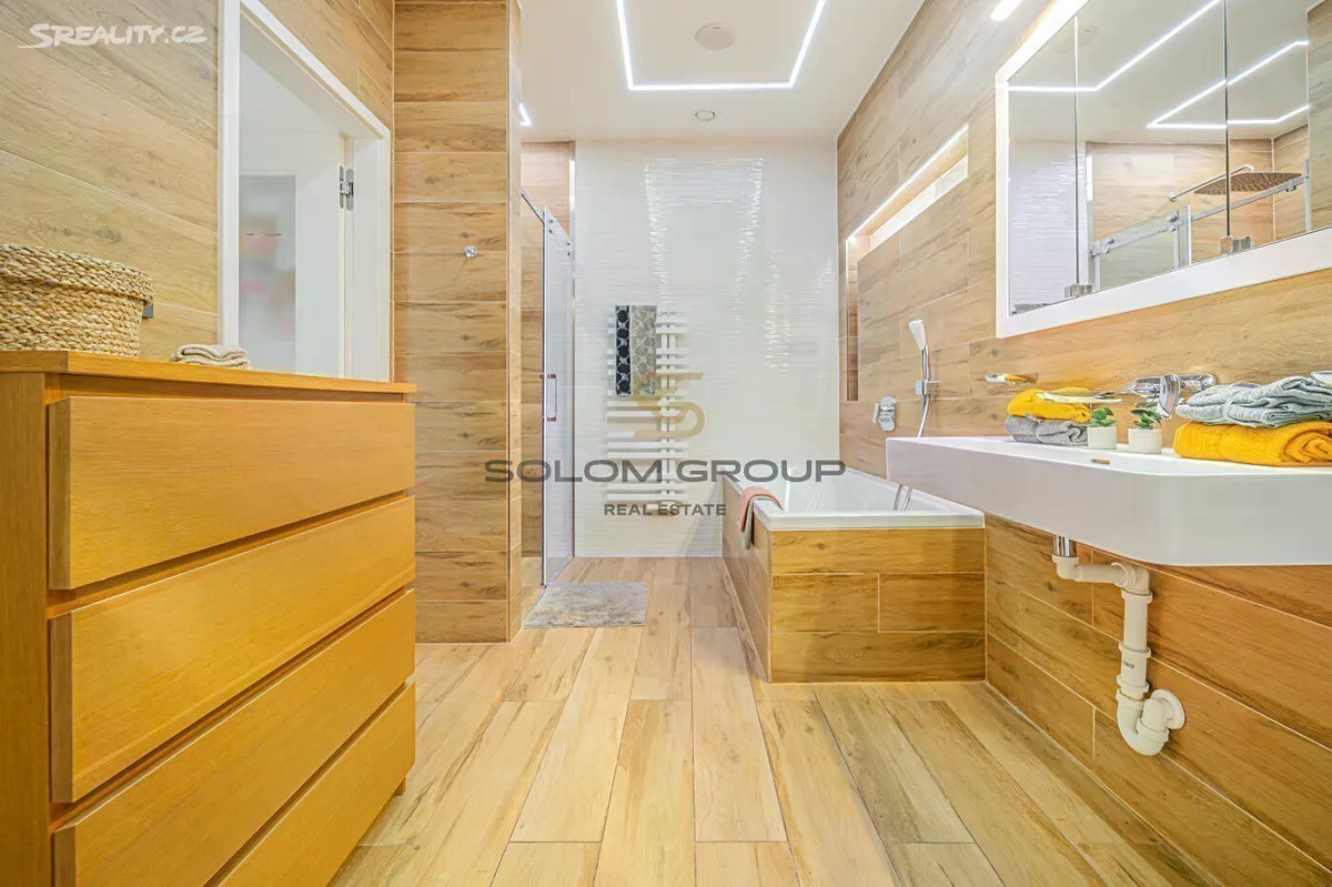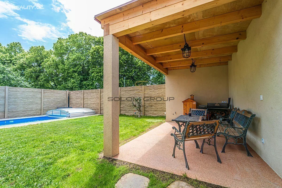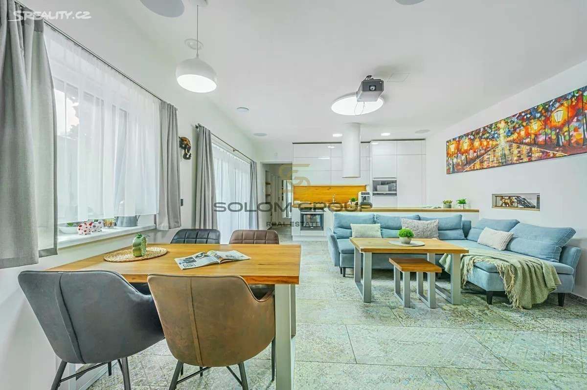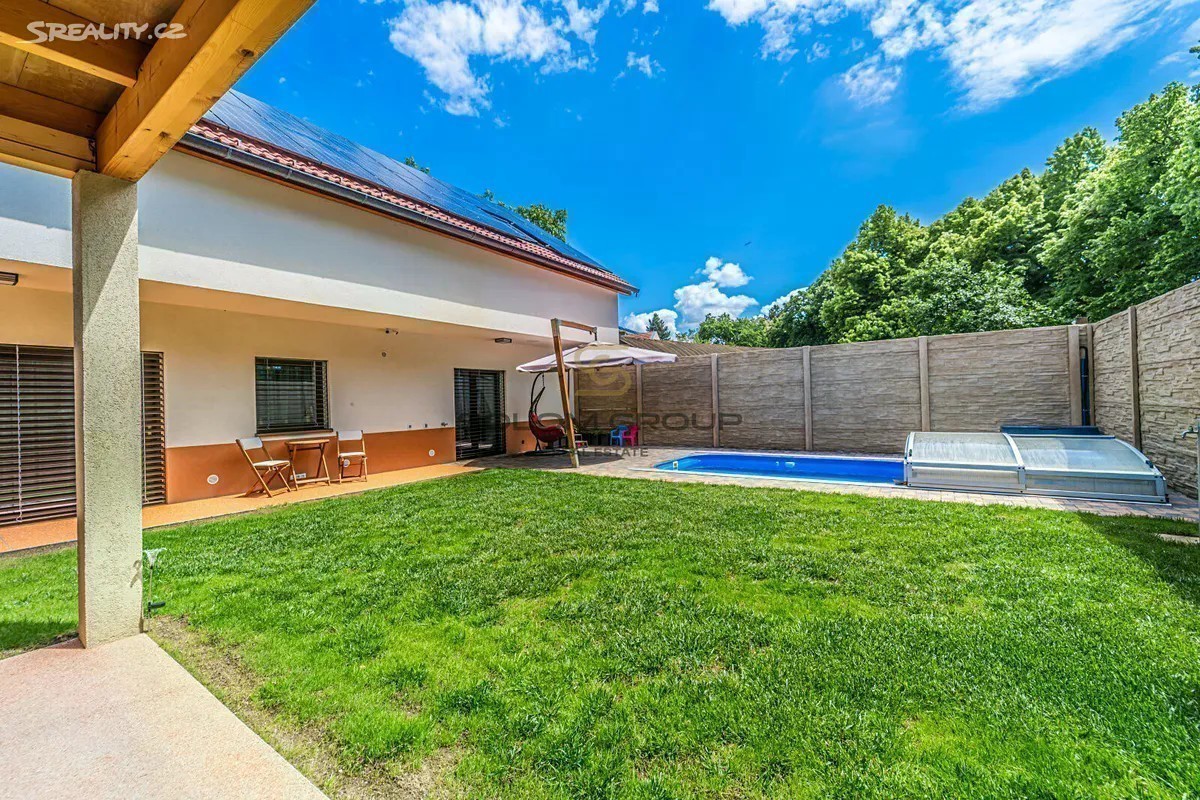 Prodej rodinného domu 4+kk/Garáž + 2x parkovací stání, který se nachází v Praze 10 - Uhříněves. Kolaudace domu v roce 2022. Přízemí domu: Kuchyňská linka vč. vestavěných spotřebičů zn. Siemens - lednice s mrazákem, horkovzdušná trouba, indukční varná deska, myčka, digestoř, mikrovlnná trouba, 1x pokoj s přístupem na zahradu, plastová okna, interiérové dveře, koupelna s vanou, sprchovým koutem a 1x WC, 1x pokoj s přístupem na zahradu, 1x šatna, projektor s promítacím plátnem + ozvučení, 1x komora, 1x samostatné WC, dlažba a lino. 1. patro domu: 2x pokoj, plastová okna, interiérové dveře, koupelna se sprchovým koutem a WC, dřevěná střešní okna, 1x šatna, dlažba a lino. Vytápění domu a ohřev vody zajištěno vlastním tepelným čerpadlem. Inženýrské sítě přivedeny - Městská voda, elektřina, kanalizace a fotovoltaika. V celém domě je rozvedena "chytrá domácnost" kamerový systém, světla na čidlo a bezpečnostní systém. Výborná dopravní dostupnost 15 min. metro C, zast. Háje nebo 5 min. chůzí vlaková zast. Uhříněves. K rodinnému domu přísluší pozemek o výměře 413 m², garáž na dálkové ovládání, zastřešená pergola s posezením, 2x parkovací stání na pozemku, zahradní domek, bazén se zastřešením a půdní prostor. Volné dle domluvy.