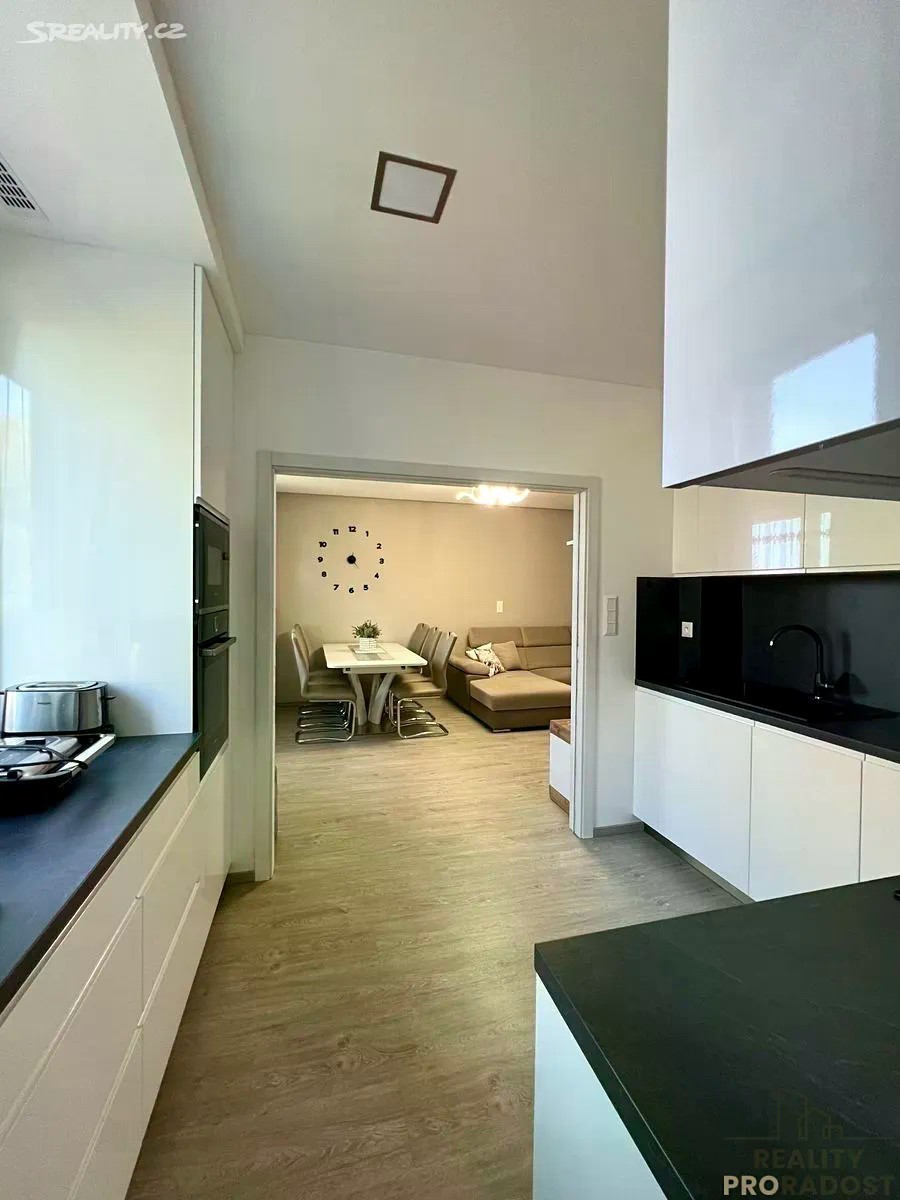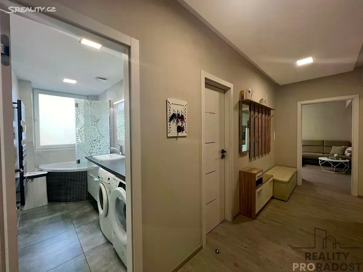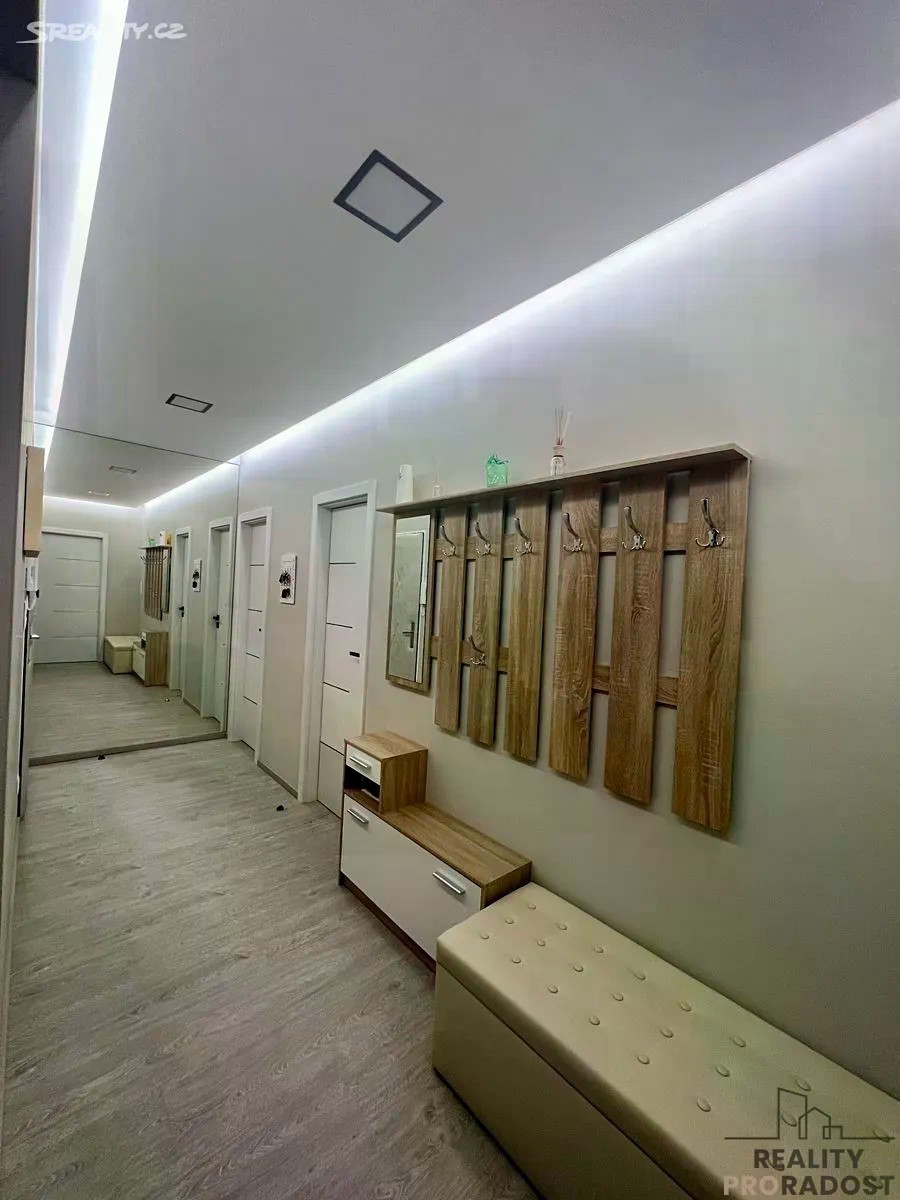 Prodej bytu 96,7 m², byt 3+1 + 2 balkony + garážové stání + sklep + kóje. Byt je po kompletní rekonstrukci včetně rozvodů elektřiny, topení a nových topných těles. Topení je zajištěno centrálně pomocí plynu. V bytě jsou kompletně vyměněny rozvody vody a topení. Dostatek úložného prostoru poskytuje šatna. Kuchyně je nově vyrobená truhlářem a vybavená vestavěnými spotřebiči s dostatkem úložného prostoru. Dispozici tvoří obývací pokoj 20,1 m² s balkonem a kuchyní 8,45 m², oddělenou skleněnými posuvnými dveřmi, komorou 1,2 m² ložnice 13,5 m², s balkonem, pokoj 17.66 m², koupelna 4,95 m² ma vanu, sprchu a také niku na pračku a sušičku, samostatné wc, šatna 4,7 m² a předsíň 7,36 m². Obývací pokoj je orientovaný do ulice, ložnice s balkonkem a pracovnou do klidného vnitrobloku se zahradov. V celém bytě jsou kompletně vyměněné vinylové podlahy, v koupelně a na toaletě je položená dlažba. Pokoje a chodba mají noční svícení s návěsným stropem. Dveře firmy Sapeli - moderní bezfalcové s hladkou linií dveří a zárubní, ze kterých nic nevyčnívá. K bytu náleží vyzděný prostorný zděný sklep 6,1 m² a kóje 3,1 m². Obyvatelé domu mohou parkovat ve dvoře, kde k bytu naleží venkovní parkovací stáni. Turisticky zajímavými oblastmi v okolí Jesenice je Průhonická obora u Zdiměřic a Osnice západně od Jesenice, dále Jílovský lesní komplex, který zasahuje až do údolí Botiče u Kocandy v Osnici. Od Prahy vede přes Průhonický park, Osnici a Horní Jirčany k Jílovému červeně značená pěší turistická trasa č. 0013, z centra Jesenice na ni navazuje žlutě značená trasa, která ji u Horních Jirčan kříží a pokračuje do Velkých Popovic. Značené cyklotrasy se vyhýbají území obce Jesenice a jejím vesnicím, sousedními obcemi vede na severní a západní straně Pražské kolo (A50) a na východní straně Greenway Praha-Vídeň (cyklotrasa č. 11). informace po telefonu *********