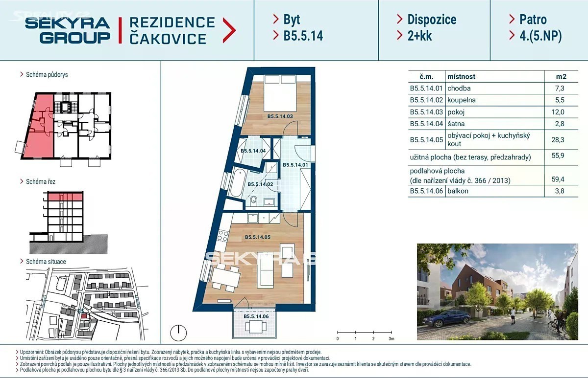 Dovolujeme si Vám nabídnout k prodeji byt 2+kk o výměře 53,2 m² s balkónem 3,8 m² v rezidenčním projektu Rezidence Čakovice. Klidné bydlení 9 obytných domů projektu Rezidence Čakovice poskytuje moderní byty s kvalitně nastavenými standardy bydlení o dispozicích od 1+kk až po 4+kk, součástí Rezidence Čakovice bude multifunkční dům se školkou, ordinacemi a ubytovacími jednotkami. Aby přirozeně zapadly do okolní zástavby, samotné domy jsou koncipovány jako tří až pětipodlažní. Řada bytů bude disponovat vlastní zahrádkou či balkonem. Samozřejmostí jsou parkovací místa a garáže. S původní zástavbou novou rezidenci propojí příjemné uličky lemované alejemi, které plynule navážou na stávající ulice. K oddychu a rekreaci obyvatel bude sloužit i přilehlý „zelený“ prostor s trávou a stromy, jenž bude realizován v rámci výstavby projektu. Čakovice mají dlouhou a barvitou historii. Suverénní městečko se stalo součástí Prahy v roce 1968, zachovalo si však svůj genius loci. Místní kulturní památkou je novorománský kostel sv. Remigia postavený podle plánů Karla Scheinera a zámek Čakovice, který se nachází v blízkosti čakovického cukrovaru, a mezi nimi se rozprostírá anglický park. V těsném sousedství budoucí Rezidence Čakovice je i potok, rybník nebo zámecký park, což jen podtrhuje komorní a příjemnou atmosféru bydlení.