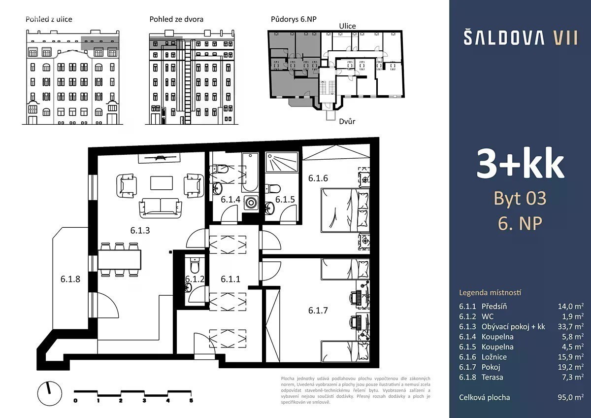 Půdní novostavba 3+kk o celkové ploše 105 m² včetně terasy 7 m², situovaná v ulici Šaldova 7 v atraktivní lokalitě pražského Karlína. Byt je součástí moderního rezidenčního projektu v pečlivě zrekonstruovaném historickém domě. Tato nemovitost je ideální pro ty, kteří hledají stylové a komfortní bydlení v těsné blízkosti centra Prahy, a zároveň ocení klidné prostředí a dostatek soukromí. Byty jsou navrženy s důrazem na vysoký standard a dlouhodobou kvalitu. Použité materiály vynikají svou odolností a nadčasovým designem. Standard vybavení zahrnuje: - masivní dřevěné podlahy a interiérové dveře - značkovou sanitární techniku - velkoformátovou kalibrovanou dlažbu a obklady - podlahové vytápění - přípravu na klimatizaci K bytu náleží také praktický sklep o výměře cca 2 m². Termín dokončení 2. kvartál 2026. Více informací na webu projektu saldova7