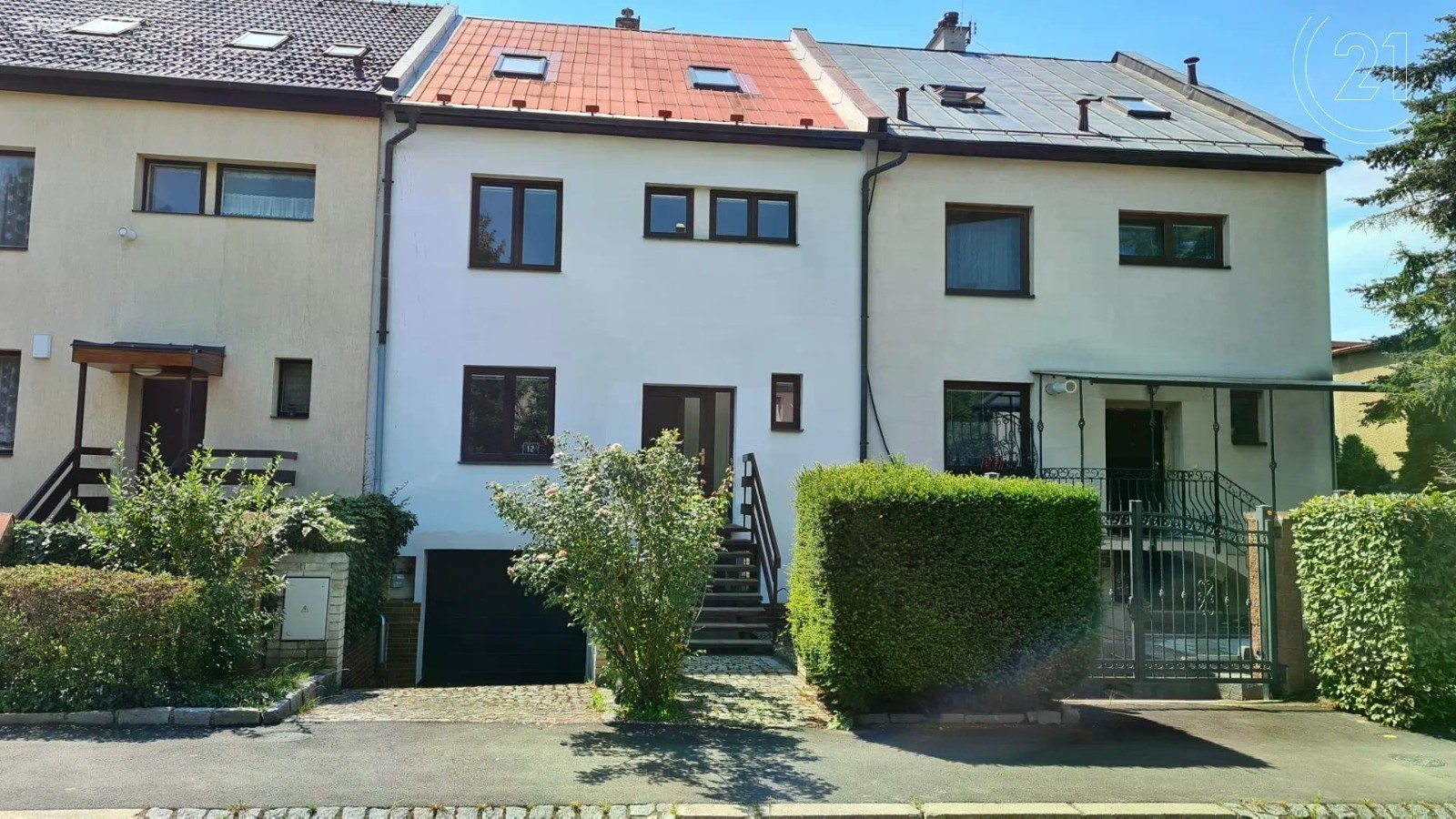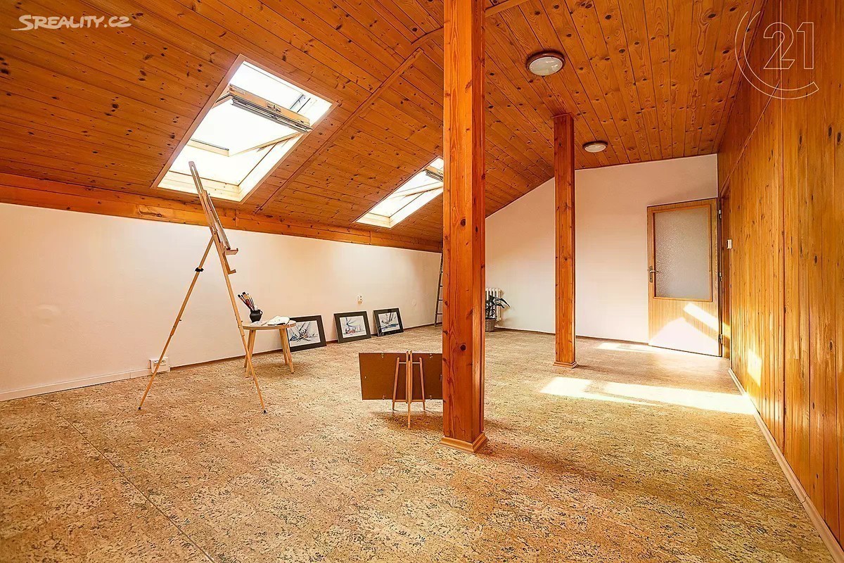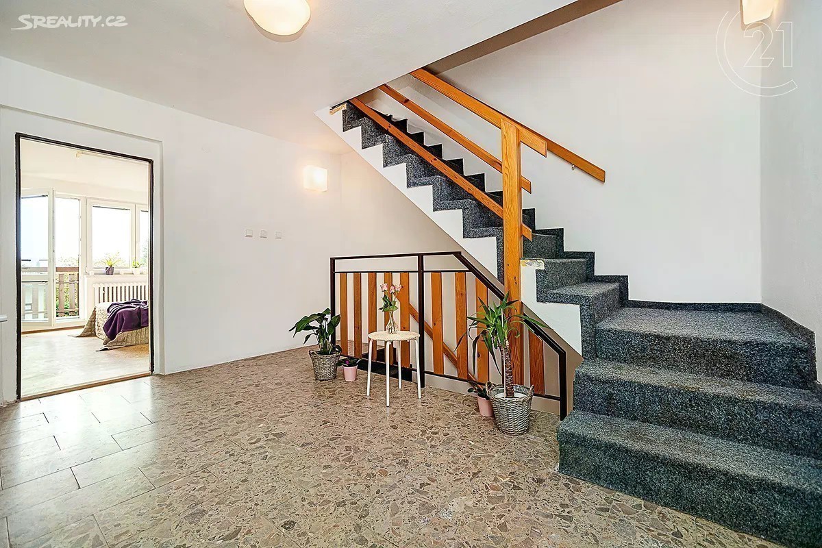 Exkluzivně nabízíme podsklepený čtyřpodlažní řadový rodinný dům s garáží a zahradou kolaudovaný v roce 1994 v klidné části Prahy Hostivaře. Dům byl po celo dobu pronajímán jako kanceláře/sídlo firmy a byl průběžně rekonstruován - v posledních letech např. nová okna, vstupní i interiérové dveře, dálkově ovládaná garážová vrata, plynový kotel a bojler, renovace topení, rozvod datové sítě, atp. Dům je napojen na veškeré inženýrské sítě (plyn, voda, 220/380, kanalizace). Dům se skládá ze čtyř podlaží a je částečně podsklepen (cca 13 m2): Suterén - 2 technické místnosti se vstupem na zahradu, prádelna/koupelna, hala (43 m2) + garáž (22 m2) 1. NP - zádveří, hala, obývací pokoj, místnost, WC, komory (68 m2) + lodžie (9 m2) 2. NP - 3 x místnost, koupelna, WC, hala (67 m2) + lodžie (9 m2) Podkroví - 3 x místnost, komora (69 m2). Půda - dodatečný úložný prostor. Orientace domu je sever (do ulice), jih (do zahrady). Ke rychlému spojení s centrem města (12 min na Hlavní nádraží) je možno využít nedaleký zcela nový přestupní terminál na Zahradním Městě, který umožňuje přestup z vlaků na lince PrahaBenešov na tramvaje a autobusy, které spojují Zahradní Město mimo jiné také se Spořilovem (9 min.), Jarovem (16 min.), Opatovem (19 min.) či Malešicemi a Vinohrady. BUS: 175 zastávka Sídliště Na groši (3 min. chůze od domu) a dále BUS OC Hostivař ********* Tram Na groši 22, 26, 97 (10 min. chůze). Lokalita je s velmi dobrou občanskou vybaveností - např. OC Hostivař, mateřské školky, základní a střední školy, ZUŠ, sportovní vyžití, Toulcův dvůr, koňské vyjížďky, obchody, restaurace a další služby.