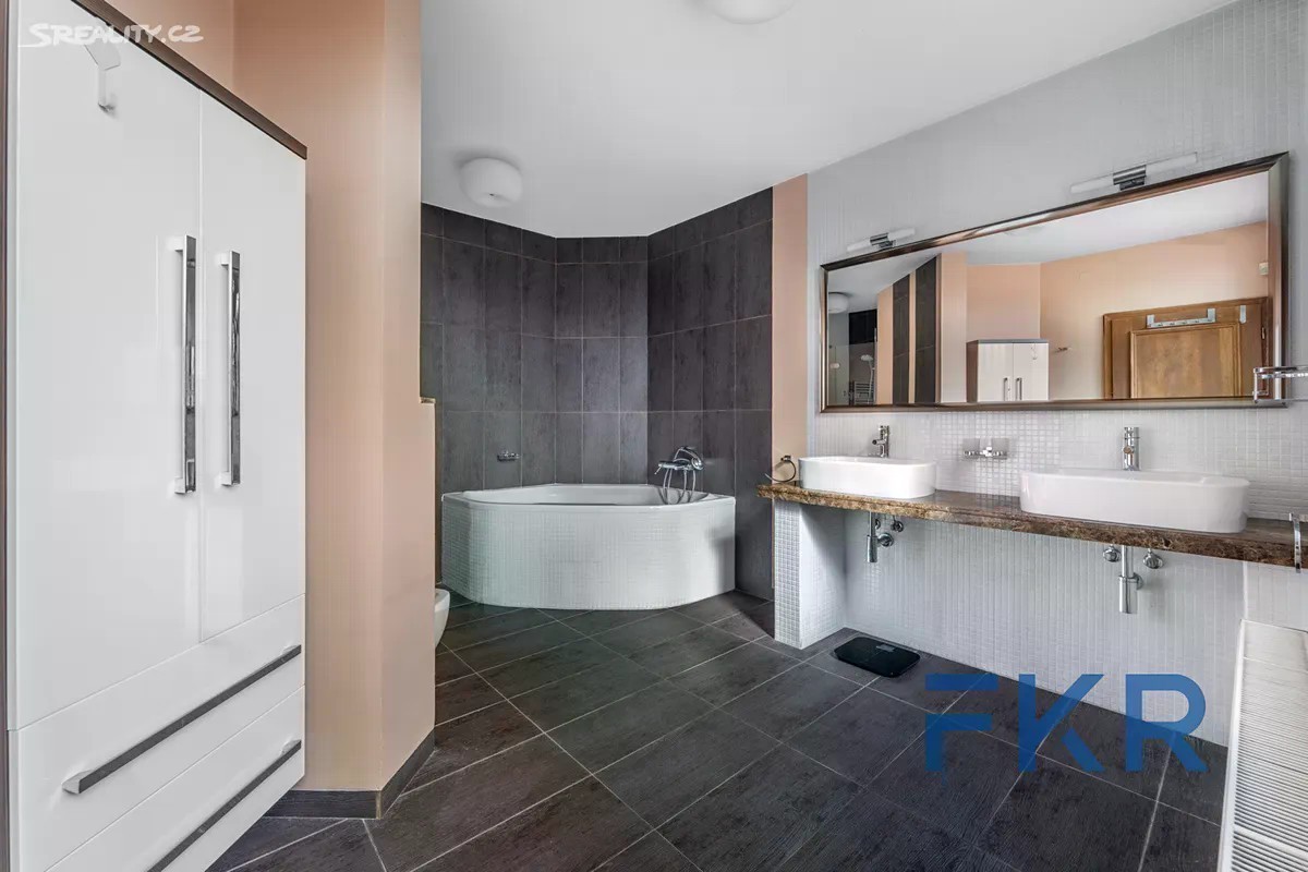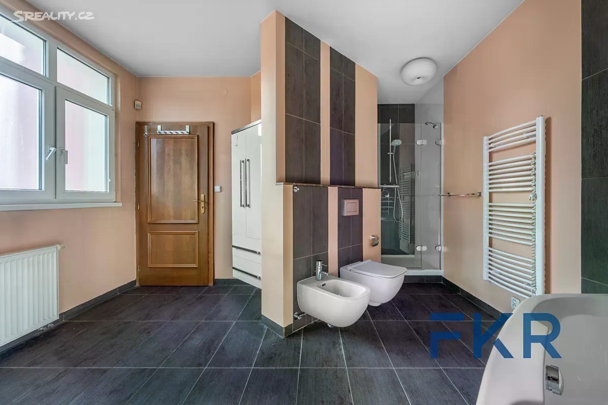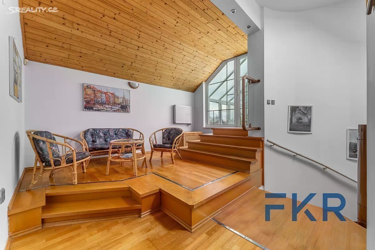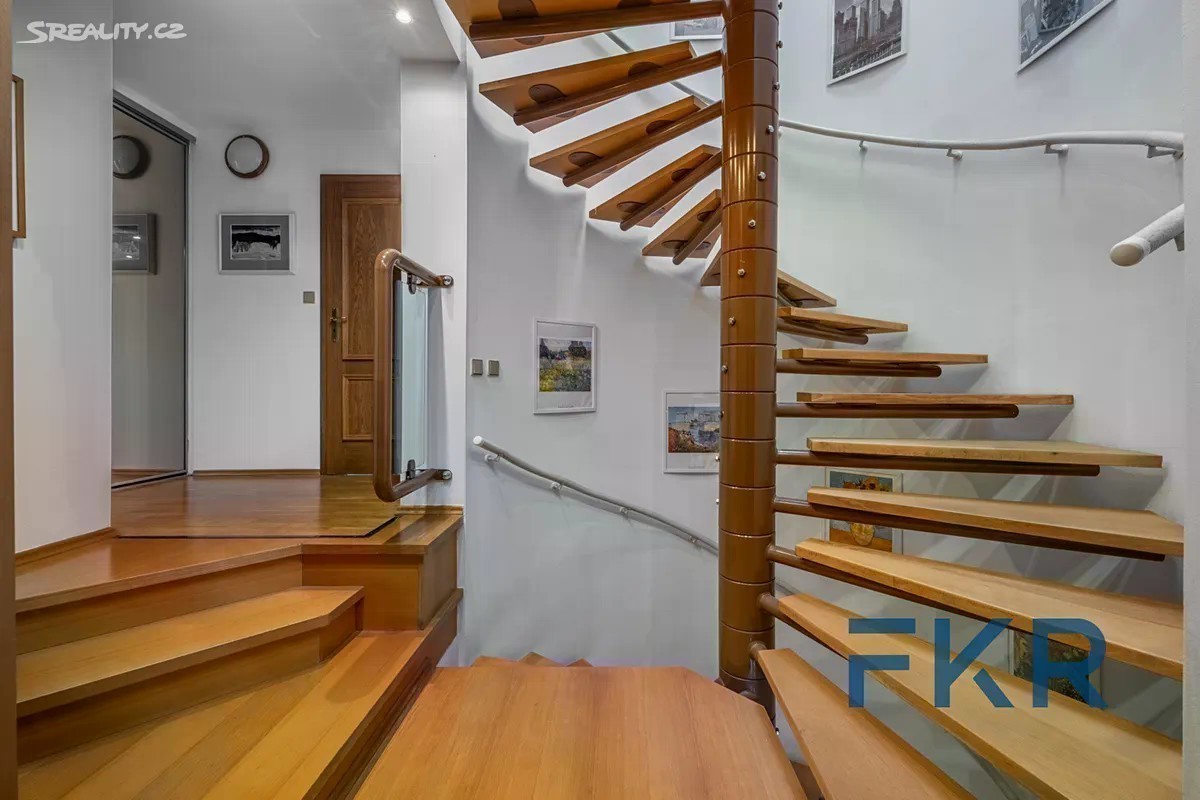 Představujeme poklidné bydlení, kde se budete cítit fajn. Třípodlažní rodinný dům se spoustou m², upravenou zahradou a západní orientací je situován v bezpečí a soukromí uzavřeného areálu. K přednostem této nemovitosti patří její praktická dispozice z dob, kdy se prostorem nešetřilo. Přízemí je rozděleno na vstupní část se zádveřím, odkud lze suchou nohou projít do garáže (35 m²). Vstup umožňuje uložení svršku v šatně a výhodu je i komora (celkem 11,5 m²). Hala se schodištěm propojuje obytnou část se vstupem do zahrady, jak ze samostatné kuchyně, tak obývací části, které vám dopřejí v součtu (66 m²). Přízemí zároveň disponuje i prádelnou, toaletou, sušárnou a technickou místností. Velkoformátová okna orientovaná do zahrady přispívají k příjemné světlosti interiéru. První podlaží nabízí tři neprůchozí pokoje přístupné z centrální chodby, velkou koupelnu se sprchou, vanou, bidetem, toaletou, dvoj umyvadlem a koupelnovým nábytkem. Nechybí samostatná toaleta, knihovna a vestavná šatna. Horní patro je ideální jako hostinská část, bydlení pro teenagery nebo zázemí pro home office. Nachází se zde ložnice s vlastní koupelnou (sprcha a toaleta) a centrální hala se vstupem do zimní zahrady. Zajímavou výhodou je přístup na zahradu (280 m²) zadním vchodem, což oceníte jak při zahradničení, tak pro případné hosty, kteří nemusí procházet domem. Na zahradě se nachází altán, zpevněná terasa navazující na kuchyni a možnost vstupu do hlavní obytné části. Nemovitost je v dobrém stavu s novou kuchyní a interiérem laděným do světlých tónů v kombinaci s parketovou podlahou. Výrazným prvkem je vnitřní točité schodiště. Součástí je také prostorná garáž a vlastní parkovací místo před domem. Příjemným benefitem jsou i pohodové sousedské vztahy a vysoká míra bezpečí. Technické informace včetně půdorysu a další detaily jsou k dispozici na webu nemovitosti.
